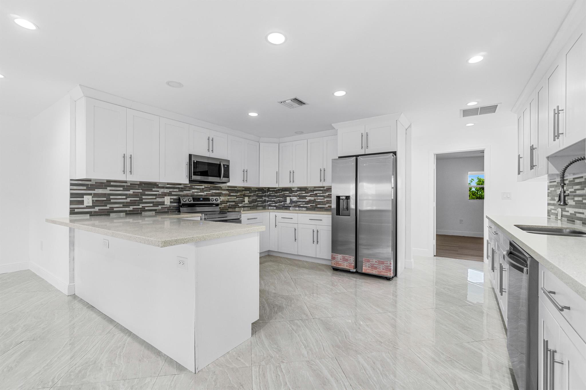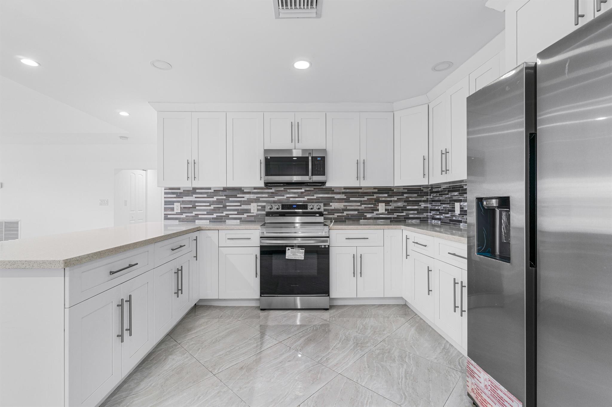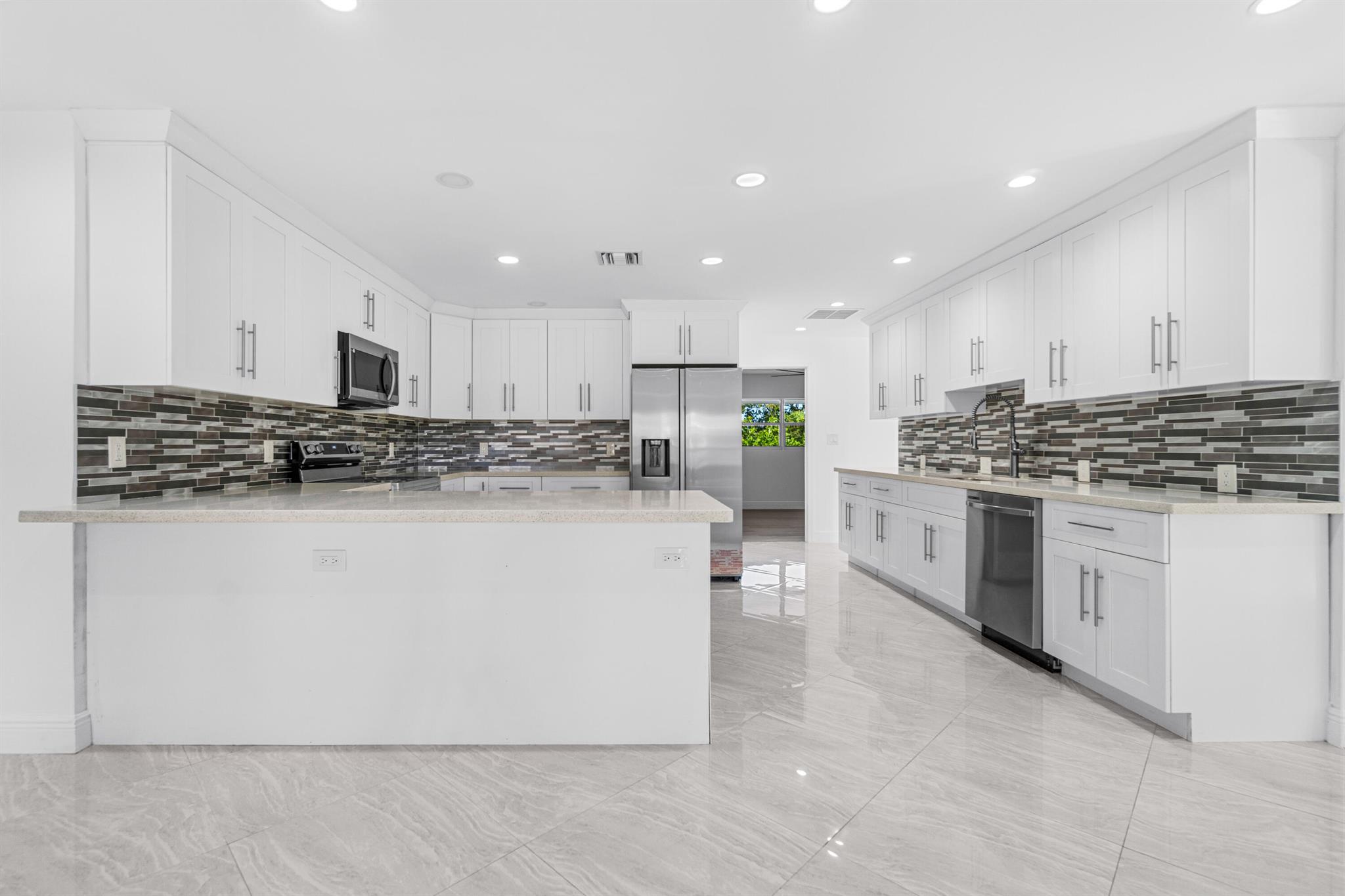 Welcome to this beautifully updated 4-bedroom, 3-bathroom home in the highly sought-after Presidential Estates, a prestigious guard-gated community offering tennis & pickleball courts. With a spacious 2-car garage and an expansive, fenced backyard, this residence is perfect for both relaxation and entertainment.Key Features:Private Pool: Enjoy your own serene retreat with a private pool in a generously-sized backyard, complete with outdoor kitchen.Modern Kitchen: Delight in a large, open eat-in kitchen featuring custom cabinetry, sleek quartz countertops, and top-of-the-line stainless steel appliances.Renovated Bathrooms: All bathrooms have been tastefully updated to meet contemporary standards.