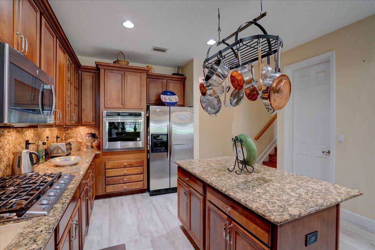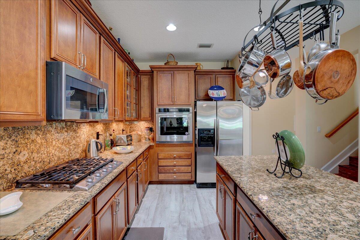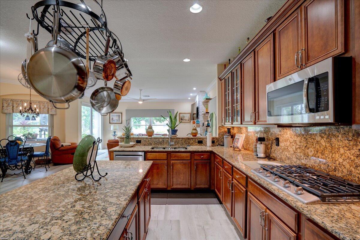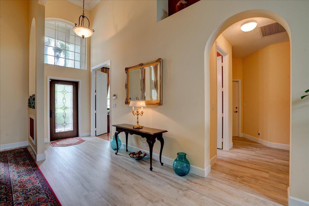 This gorgeous lakefront estate home within the gated community of Stonehaven is a must see. Immediately upon entry you will be in awe by the 20ft ceilings through the main areas of the first floor. The open grand wrought iron staircase has 2 entrances, leading to a huge landing loft area on the second floor. The kitchen is impressive, stainless steel appliances, solid wood cabinetry, granite countertops with a wet bar. The backyard is a paradise with mature fruit trees and plenty of space for entertaining. Did I mention NEW ROOF (8/24), New exterior paint, a 500 gallon Propane Underground tank supplying Whole house Standby Generac generator, Propane Gas stove, Smart sprinkler system supplied from the Lake and so many more Upgrades that cannot be listed. The low HOA fee includes Internet