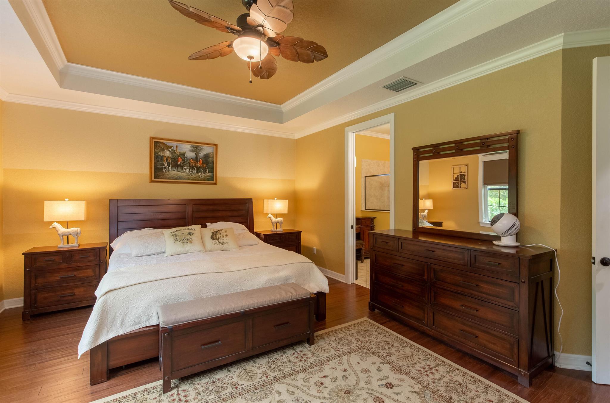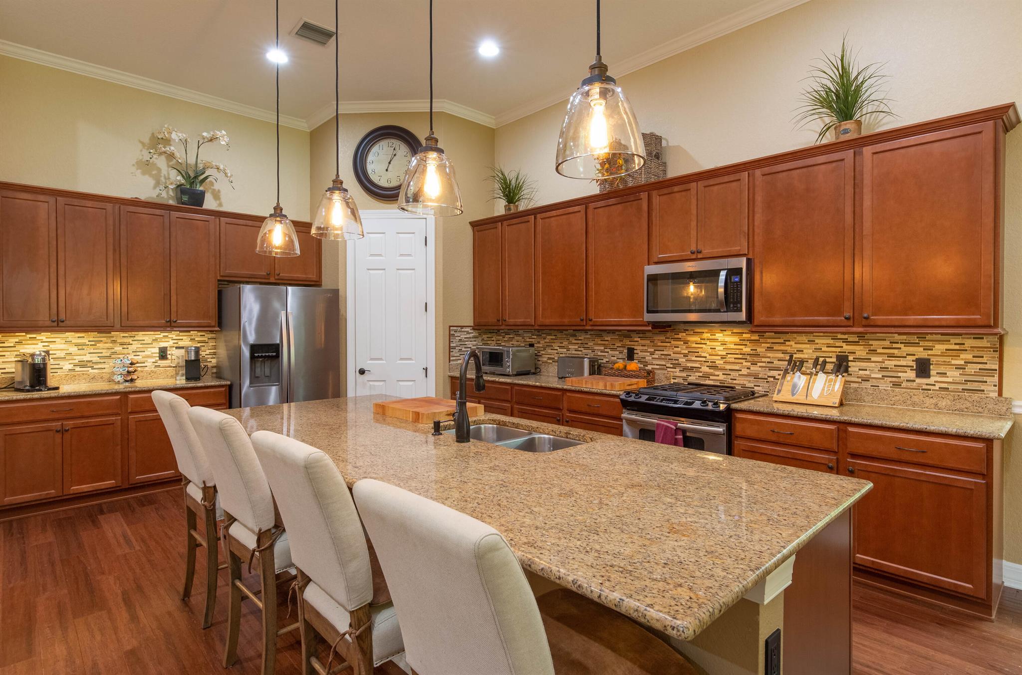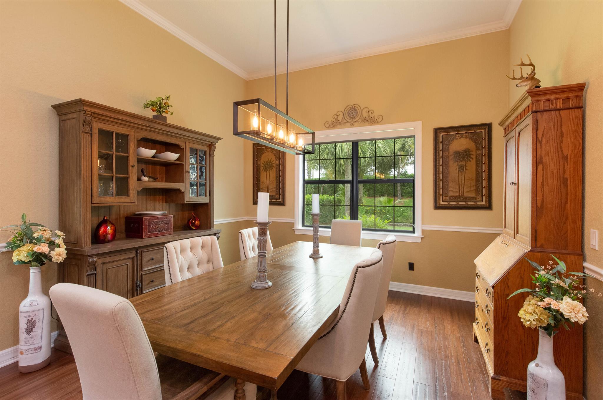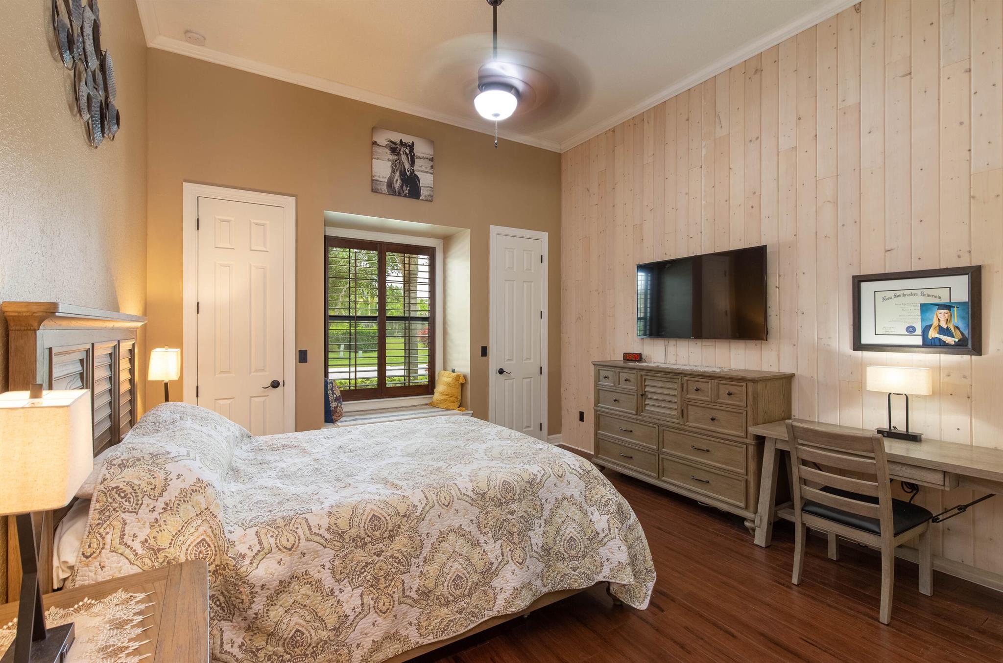 Discover this stunning home in one of Wellington’s most sought-after neighborhoods Castellina, featuring the highly popular Dartmouth model, now available for discerning buyers. Nestled on a serene lot surrounded by nature, this property offers a peaceful retreat.The home boasts a fantastic floor plan, welcoming you with a custom grand entrance unique to this model. Inside, you’ll find an office/den and an open living area with a custom-designed coffered ceiling. The open-concept kitchen is perfect for entertaining, equipped with granite countertops, a beautiful backsplash, upscale cabinets, stainless steel appliances, and a gas cooktop. The space overlooks a striking natural stone wall with an electric fireplace, adding to the home’s charm.
