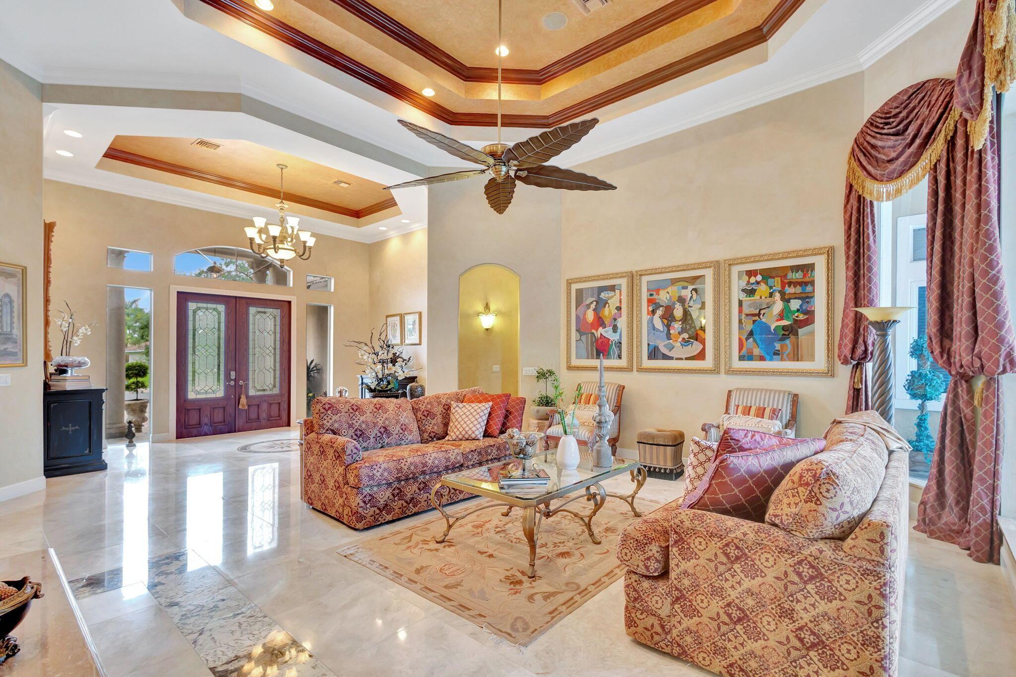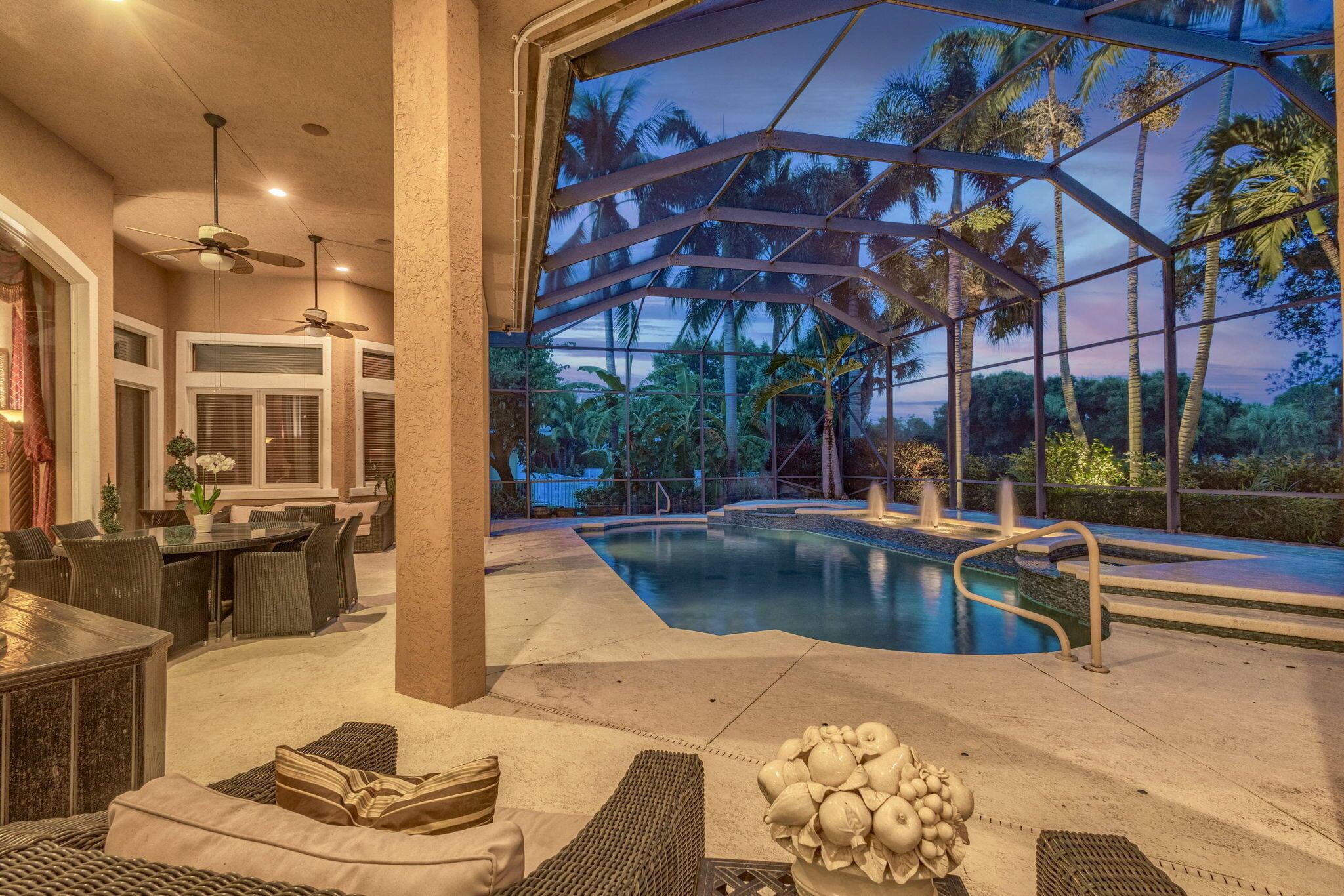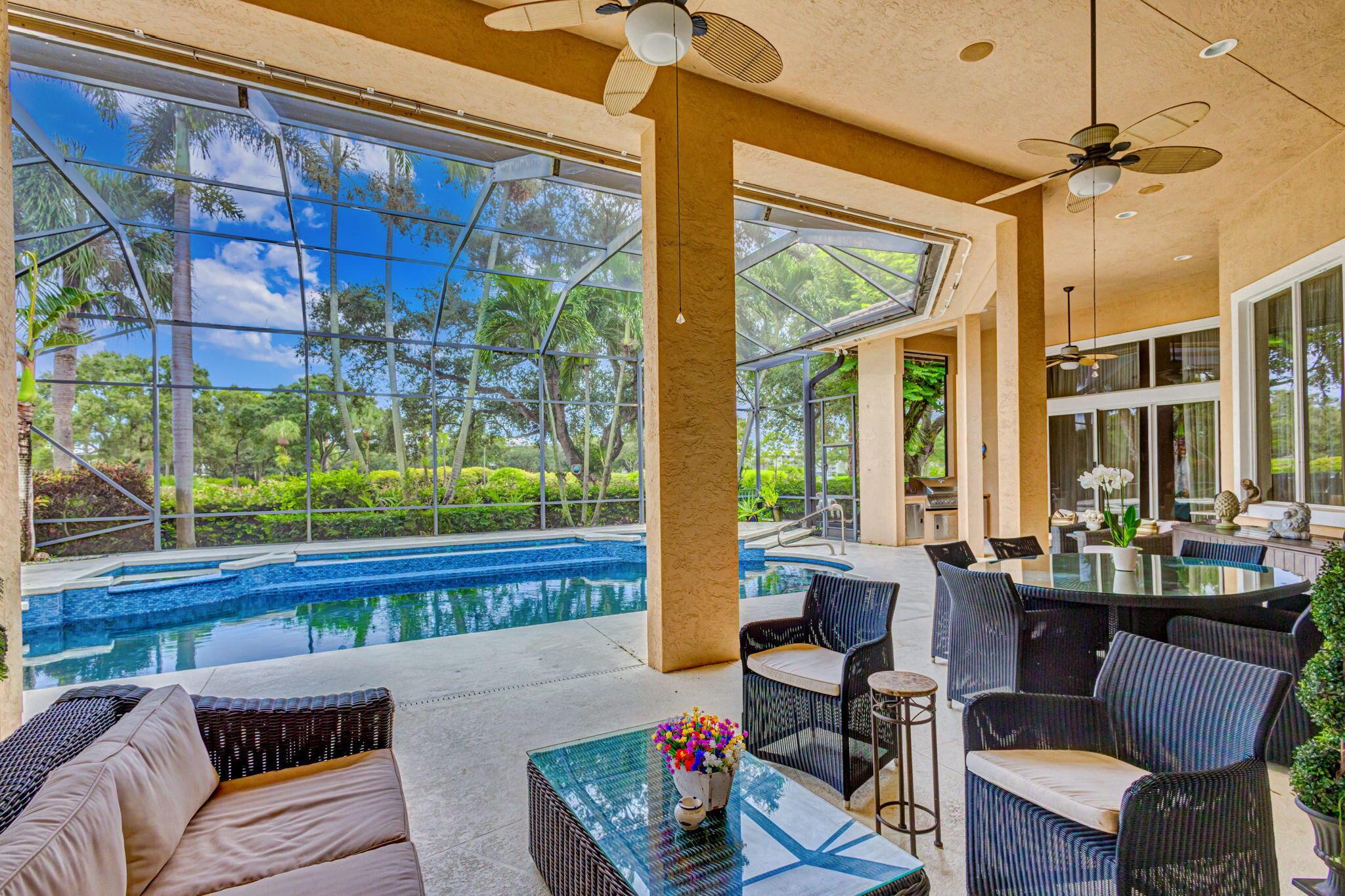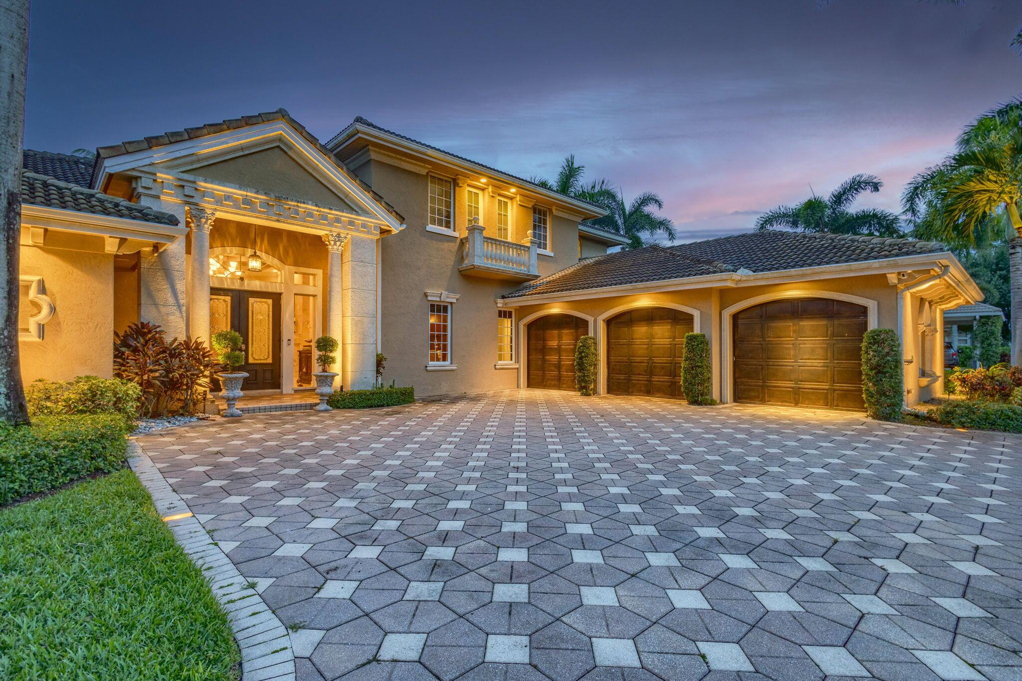 Exceptional estate pool home privately nestled on the 17th hole of Bear Lakes Country Club Lakes Golf Course! This sprawling residence features 5 bedrooms plus office and den/loft, 5 full bathrooms and 2 half baths, 3 car garage with circular driveway, formal living and dining rooms, family room, and summer kitchen. With 5,500 SF of living area, this picturesque home is meticulously maintained and sits on an expansive .42 acre golf course lot surrounded by lush tropical landscaped grounds. Impressive upon entry, this majestic home is adorned with soaring ceilings, beautiful marble flooring, crown molding, elegant built-in fireplace, formal dining room, and grand office with custom built-ins and obscure ”secret” room – perfect for wine room or storage of valuables.