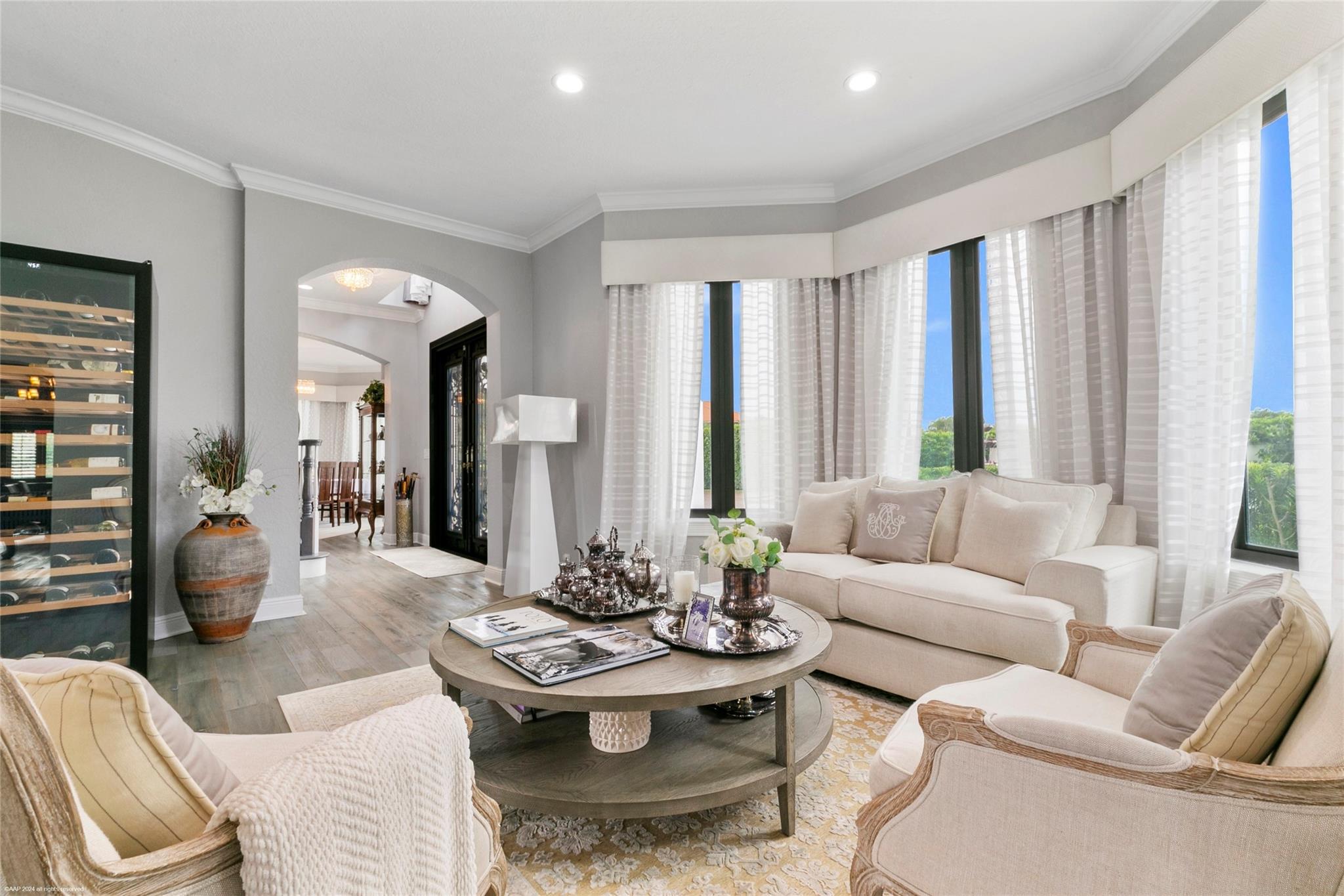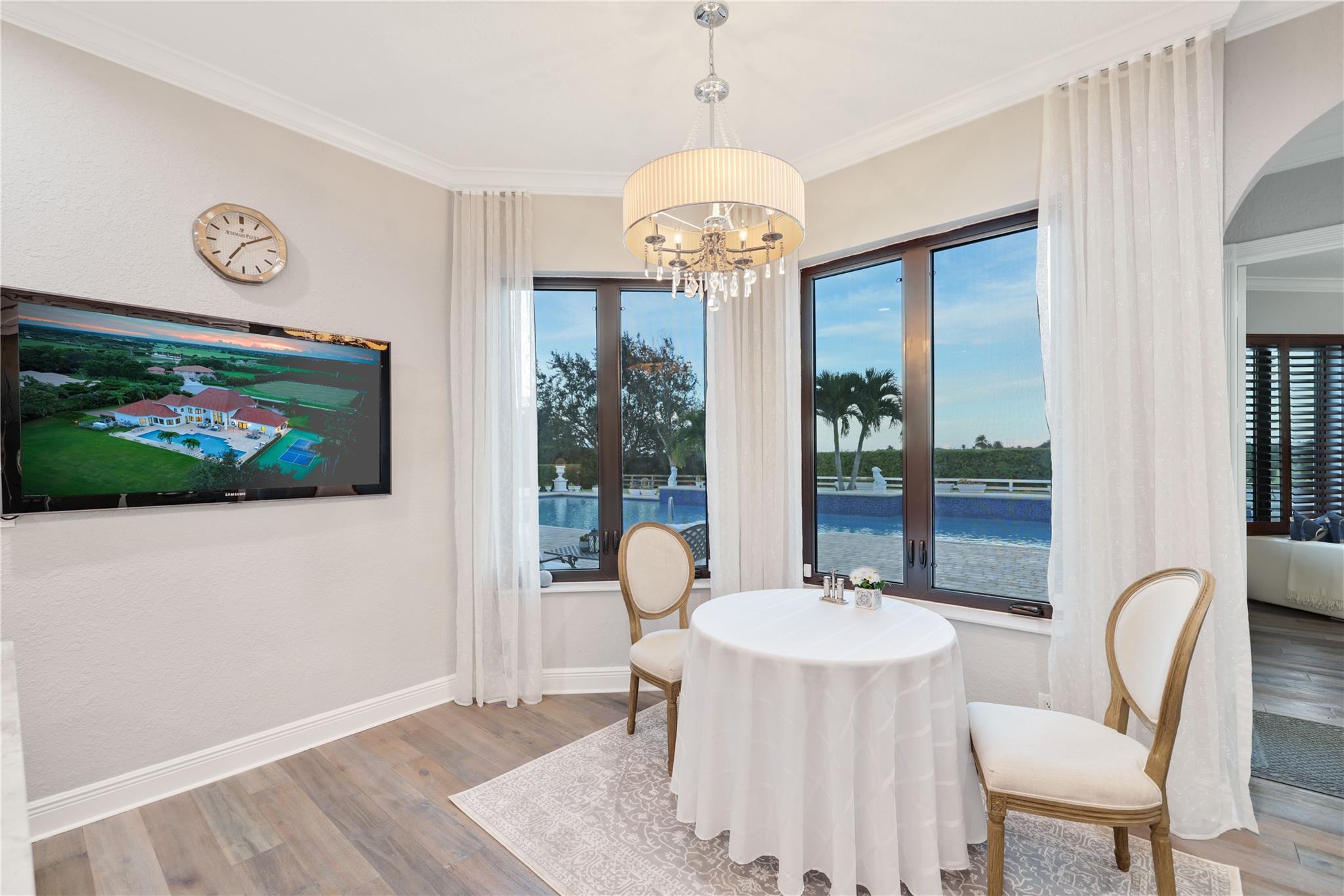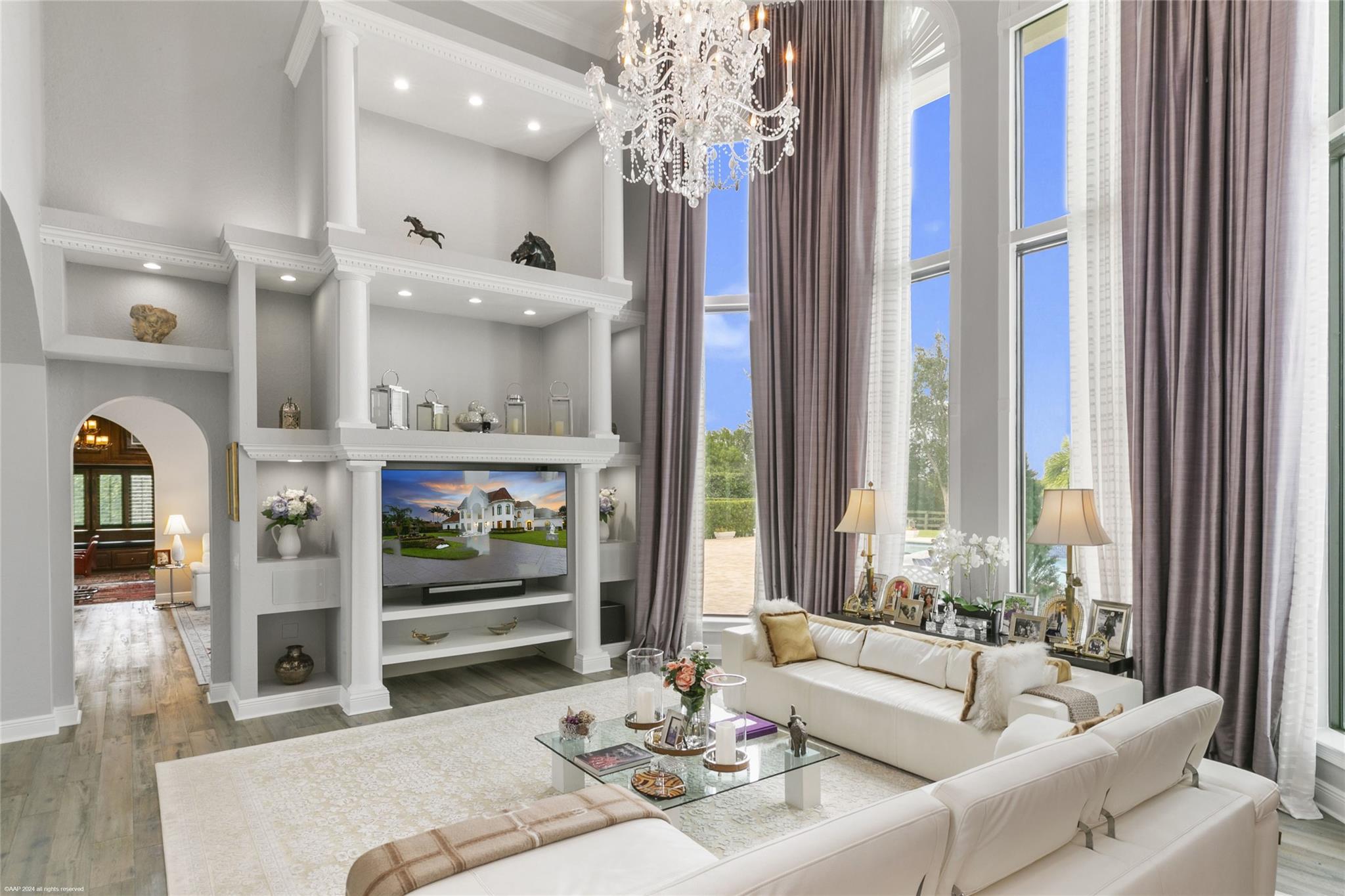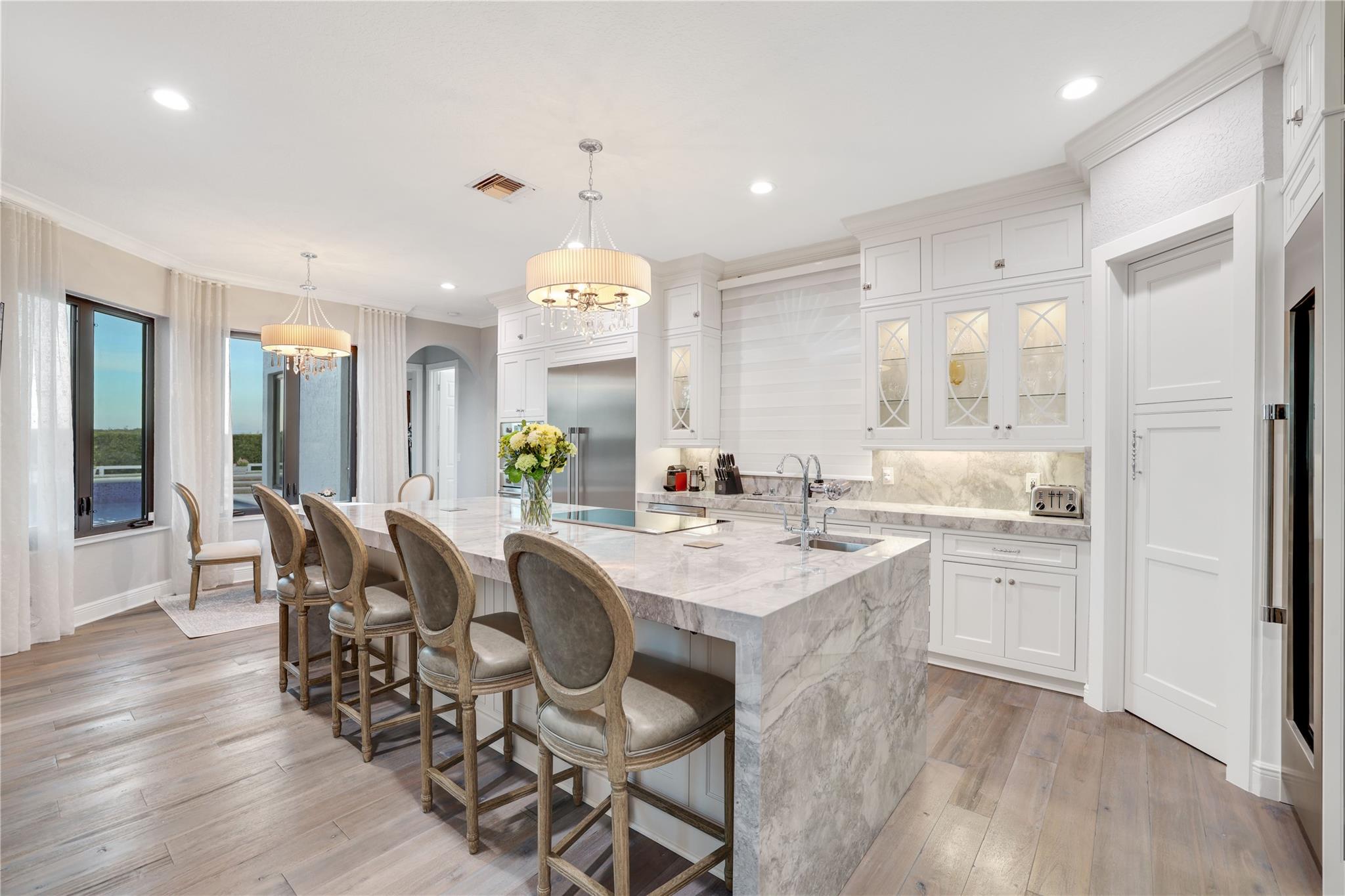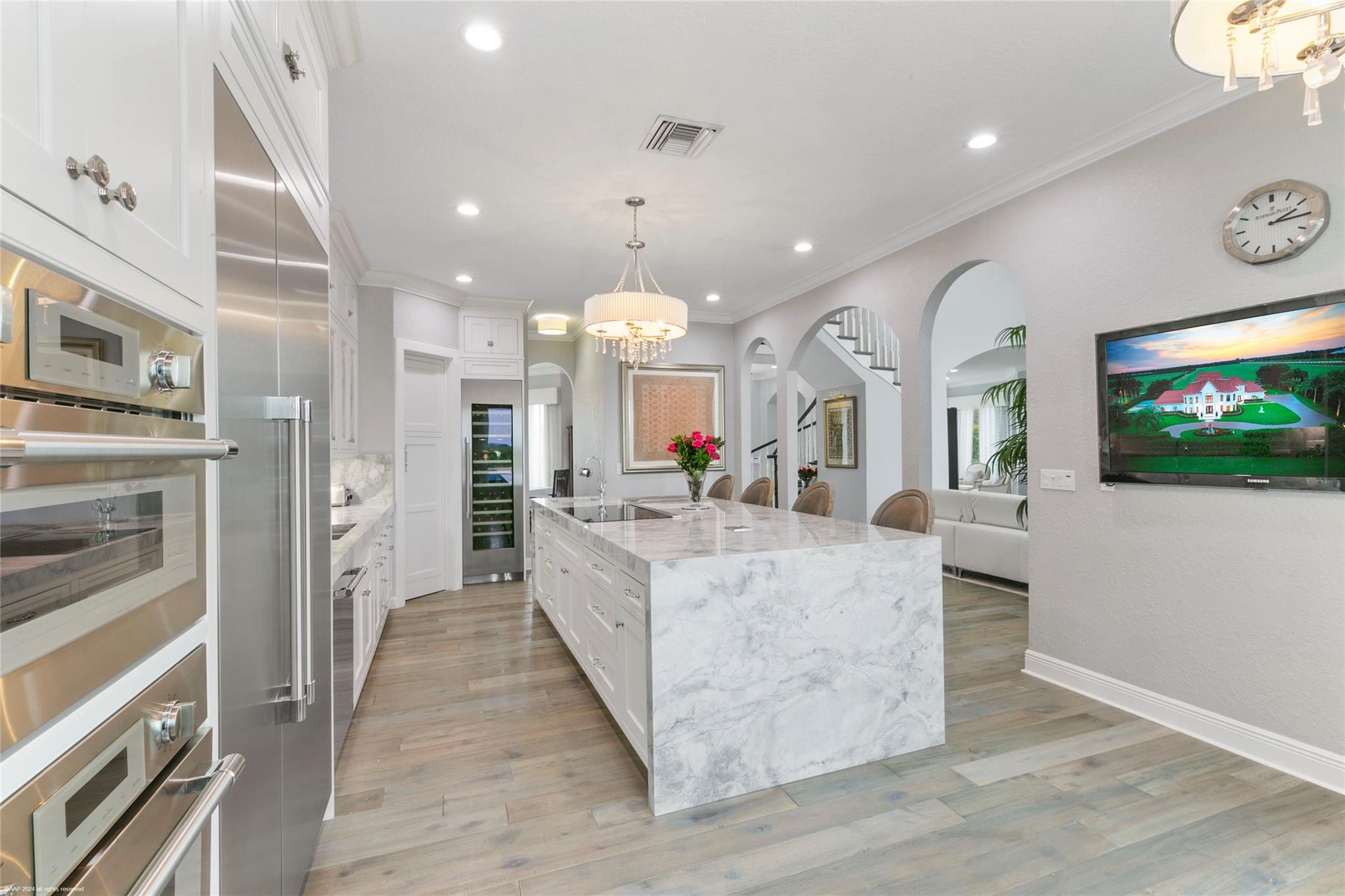 Open floor plan, 30 ft vaulted ceilings for endless views of Polo fields. OMEGA Kitchen, waterfall marble island, built in Thermador appliances. Features 4 bedrooms, 4.5 fully remodeled baths, and 5 car garage. Presidential wood paneled office with fireplace. Oversized saltwater heated pool. Fully paved 3500 sq ft. pool deck with seating for 20. Full Outdoor Kitchen, steel shed, full size Pickle Ball Court. Smart home, Audio Video System, Alarm, Sonos surround sound, and much more!