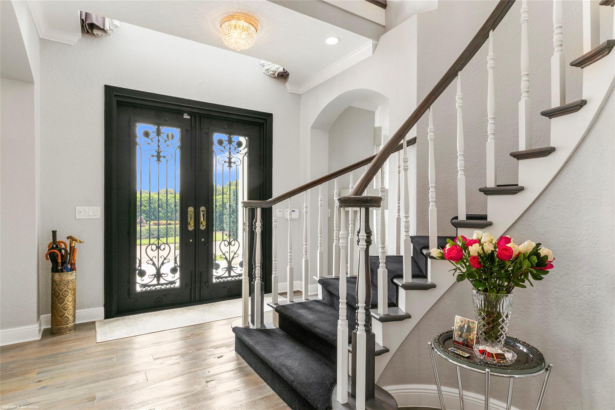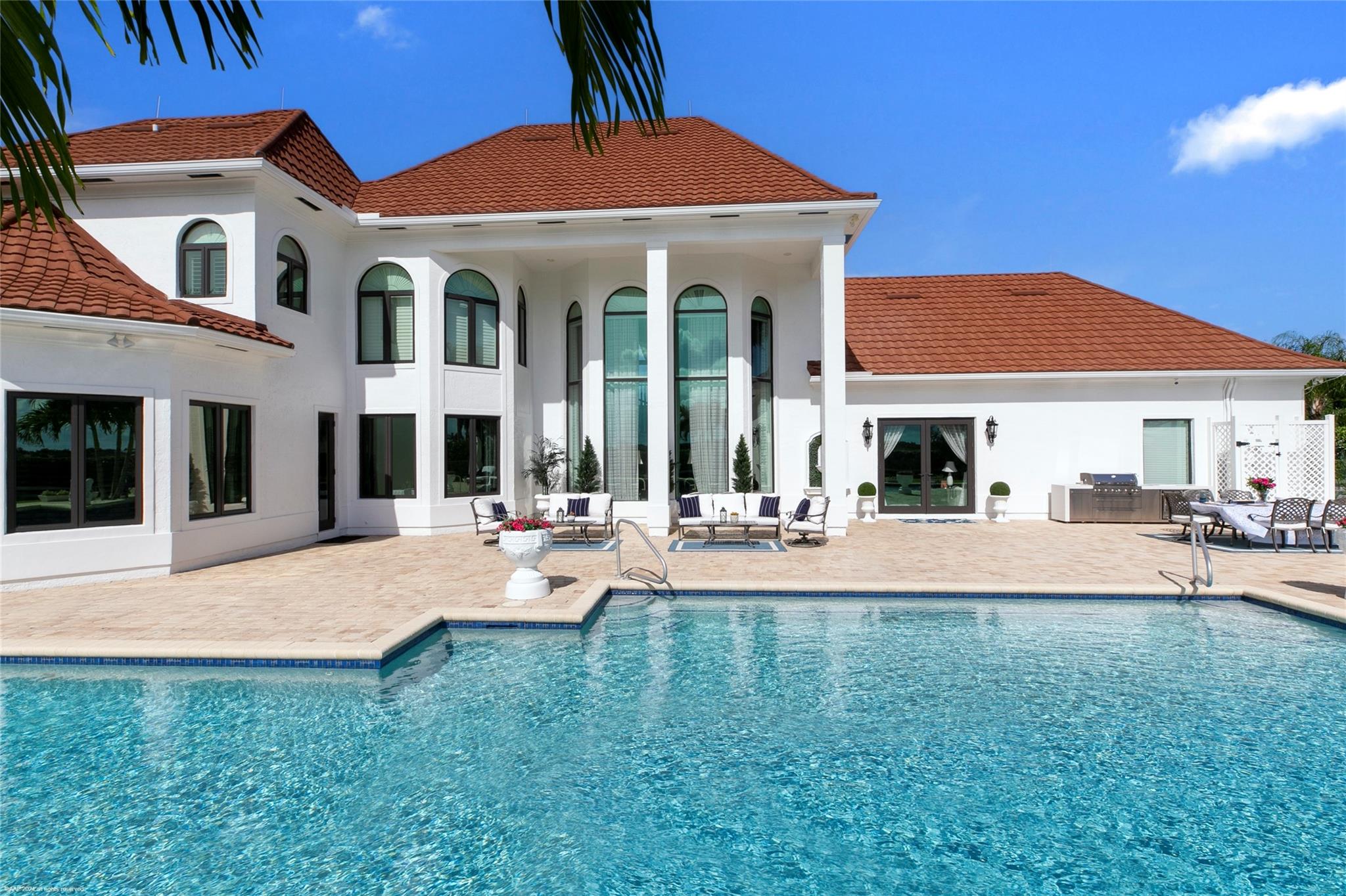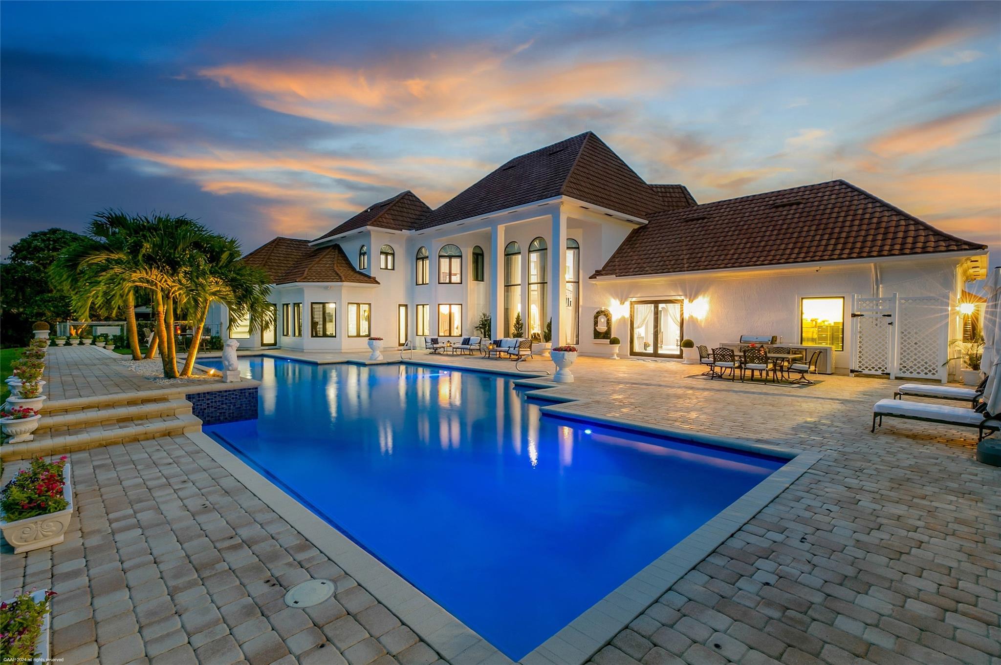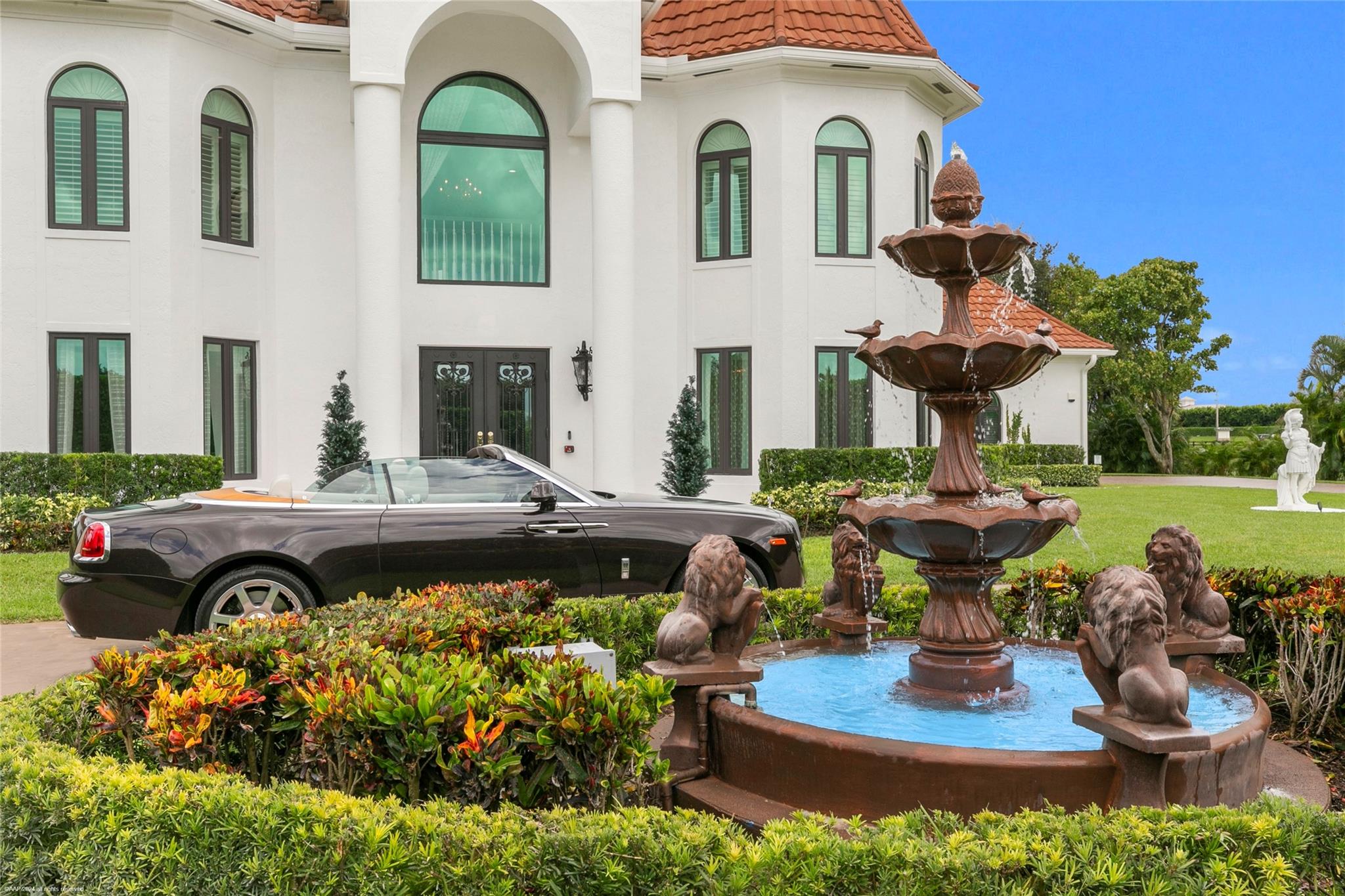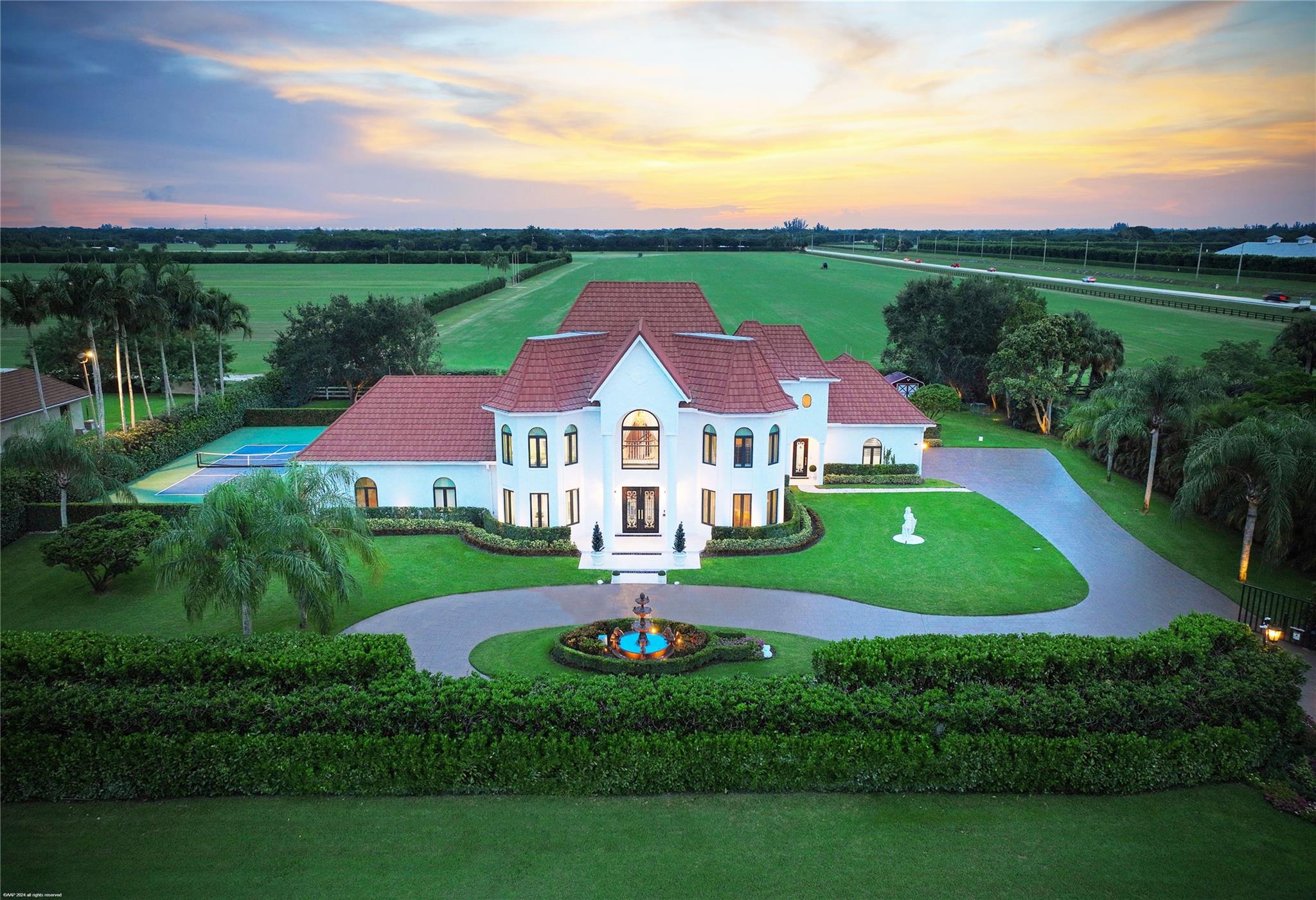 Luxurious French Tudor estate in Southfields, a short golf cart ride to equestrian venues. Completely renovated estate with 6,600 sq ft driveway with fountain. Grand entrance with pillars with white marble. New hurricane doors, windows, gutters and irrigation systems. Whole house Generac generator.