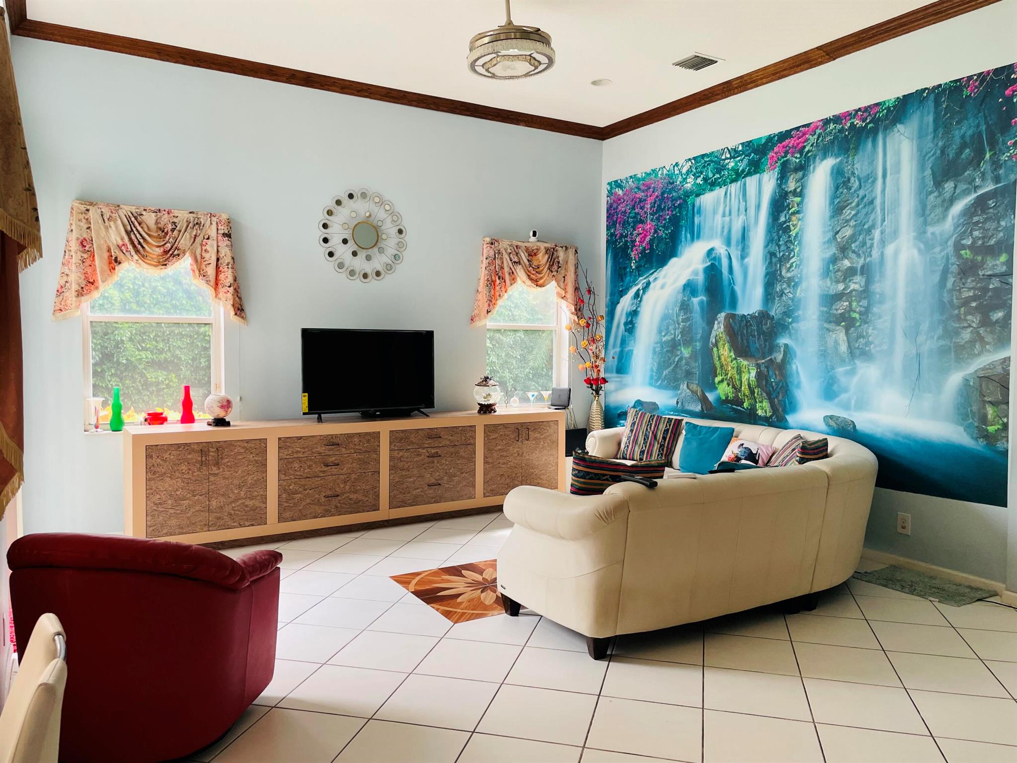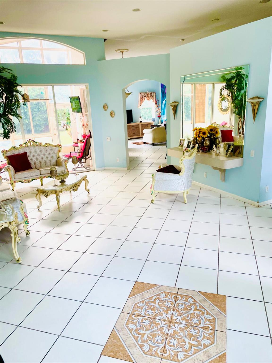 Very Large home with 3/2 plus office/BONUS Room. Large Home with some updates like new kitchen and guest bath, stainless steel appliances, big office space for your home business. Private dining area, his & hers walk in closets, tray ceilings, roman tub with separate shower, dual sinks and bedroom sitting area and tile floors throughout. Super low HOA fee- Pool, gym, billiards, cards, clubhouse with stage, tennis courts, pickleball and DOUBLE gated security.