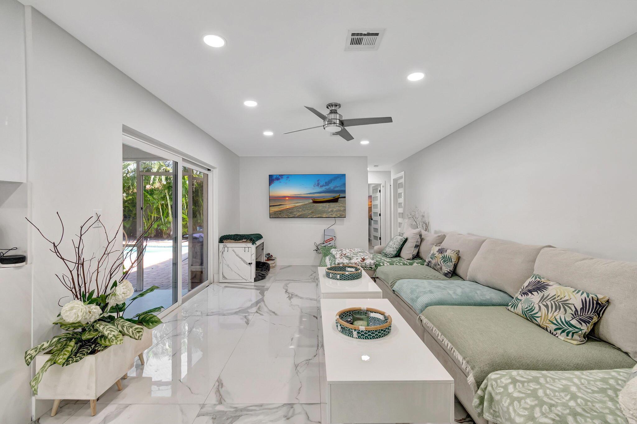 SELLER DECIDED TO RENT THE HOME!! Here’s a luxurious remodeled home in the heart of East Delray. Remodeled about a year and a half ago which includes new large porcelain tile floors throughout the living areas, new vinyl plank floors in the bedrooms, new kitchen cabinets, new marble countertops, new stainless steel appliances, island cooktop with seating, new bathrooms, freshly painted interior, plenty of new recess lighting, all impact windows and doors, secluded and private fenced backyard with a pool, 2 car garage with a huge brick paver circular driveway and NO HOA. You are close to Atlantic Ave. and the beach. Don’t miss this great opportunity. Information herein deemed reliable and subject to errors, omissions or changes without notice. All measurements are approximate.