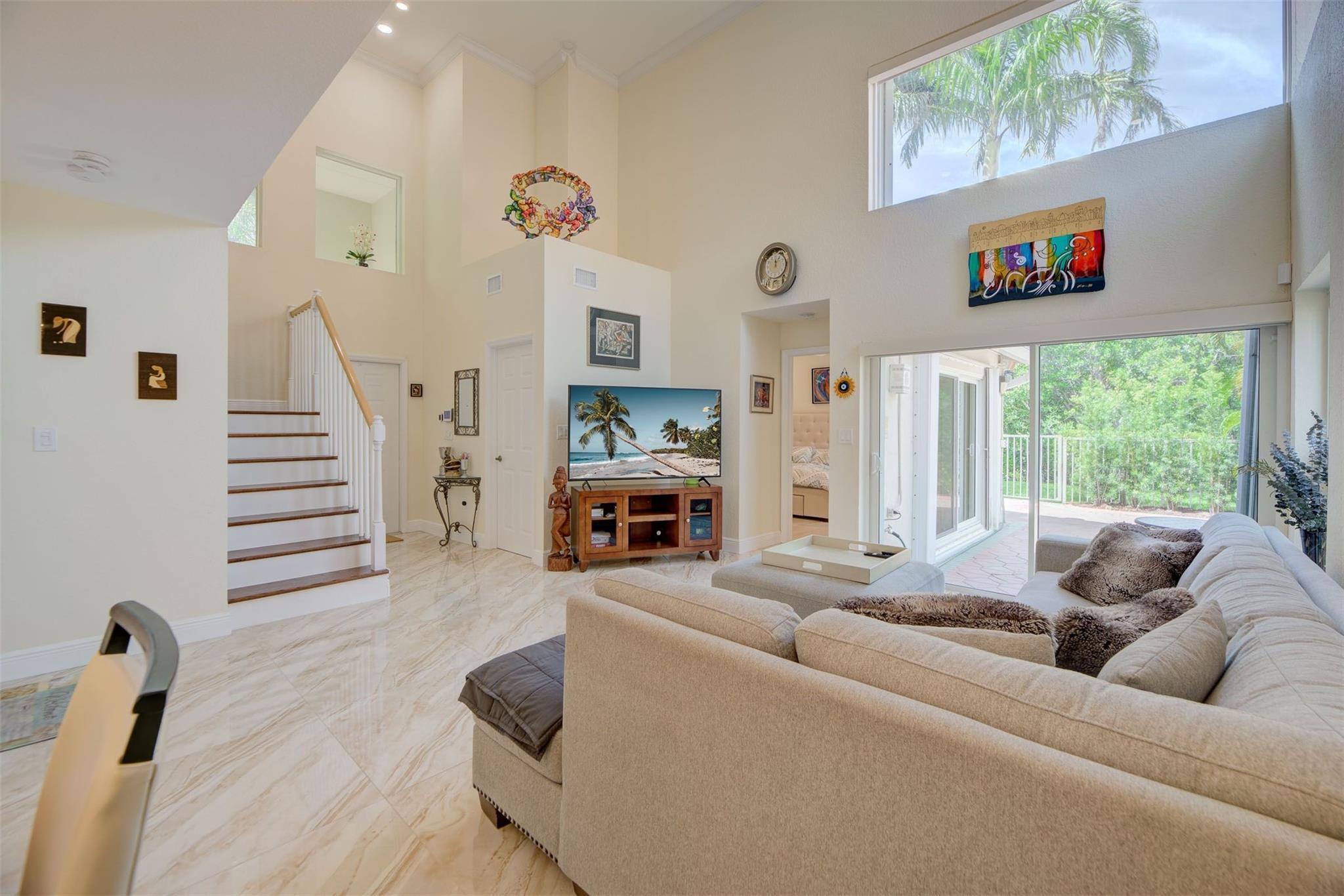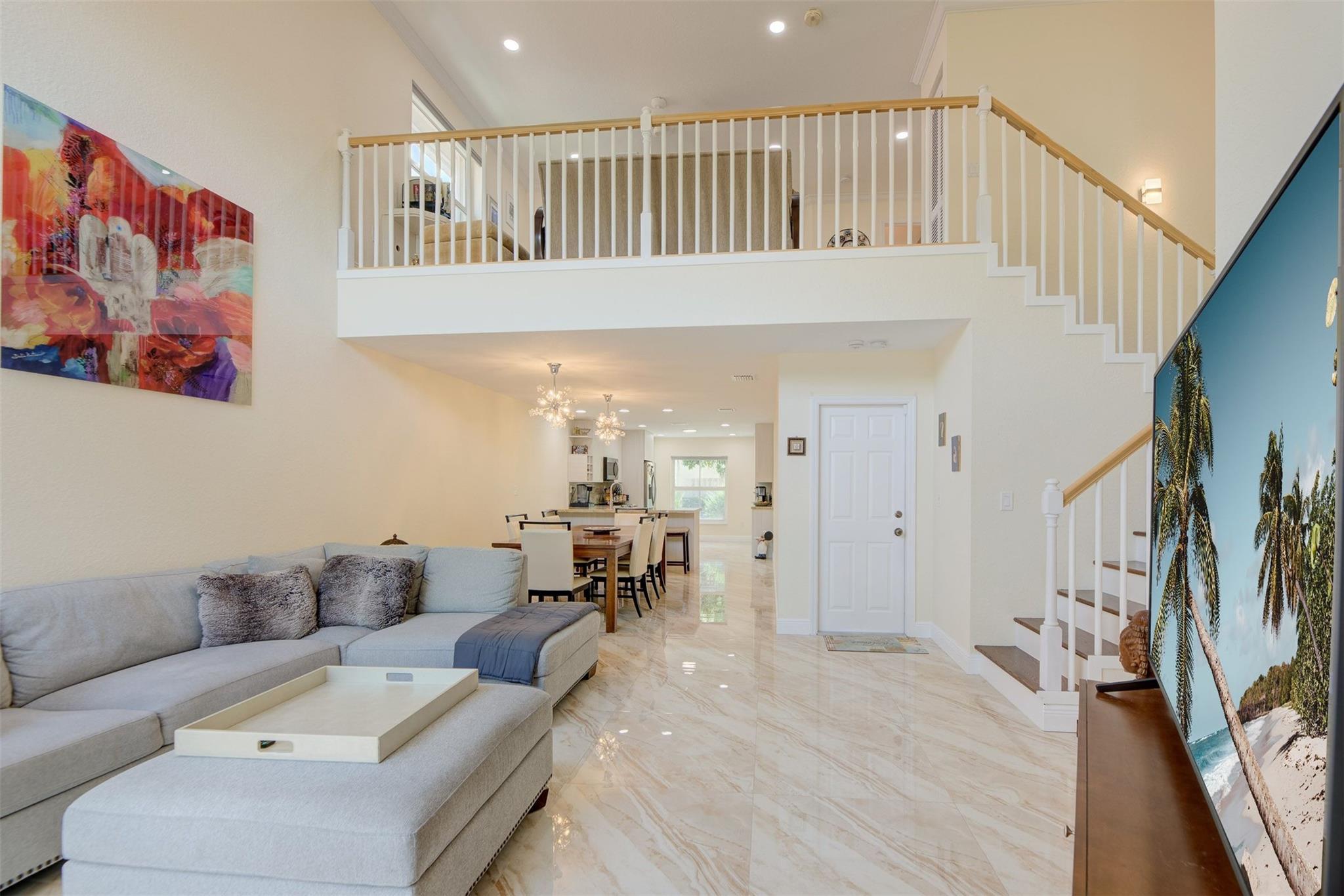 THIS 3/2.5 WITH OPTIONAL 4TH BEDROOM/OPEN LOFT/DEN/OFFICE WITH A 2 CAR GARAGE SITS ON ONE OF THE BEST AND MOST PRIVATE LOTS IN ALL OF WEST LAKE VILLAGE. IN ADDITION TO BEING ON A CUL DE SAC AND A CORNER LOT, THERE ARE NOT ANY BACK NEIGHBORS EITHER. HOUSE WAS RECENTLY TOTALLY REMODELED. NEW ROOF AND ALL IMPACT WINDOWS. 36X36 PORCELEIN FLOORS ALL DOWNSTAIRS WITH WOOD FROM THE STAIRS AND UPSTAIRS. PRIMARY ROOM IS LOCATED ON THE FIRST FLOOR WITH GUEST BEDROOMS UPSTAIRS. CROWN MOLDING THROUGHOUT. KITCHEN HAS BEEN OPENED UP WITH ALL NEW COUNTER TOPS, APPLIANCES, AND WOOD CABINETS. WALK IN CUSTOM CLOSET IN THE PRIMARY WITH REMODELED RAIN SHOWER. PRIVATE PATIO GREAT FOR BBQ’S, ENTERTAINING, OR TO RELAX. WEST LAKE IS GUARD GATED 24/7 AND LOCATED JUST 1 MILE FROM THE OCEAN.