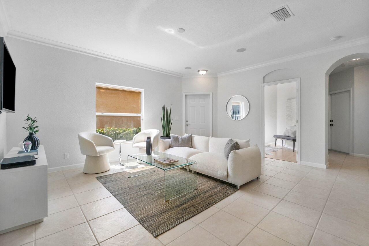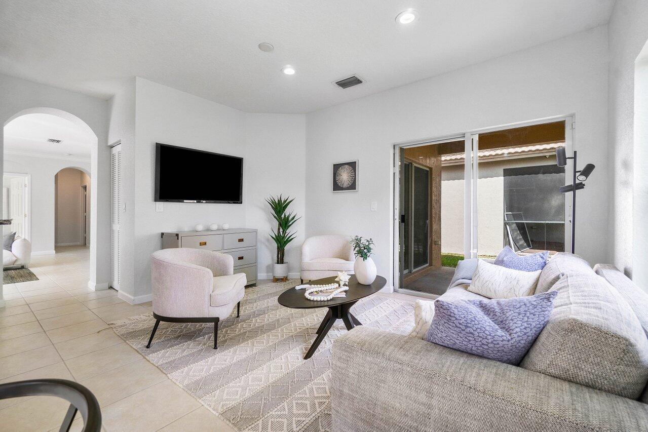 Impeccably maintained 3 bedroom and 2 bathroom home in Willow Lakes. This low fee HOA community is a hidden gem in the heart of Lauderdale Lakes. Waterfront lot with private walk-up entry. Spacious and inviting living room. Ceramic tile floors throughout living space with new laminate in the bedrooms. Open kitchen with stainless steel appliances and granite countertops. Formal dining room overlooking sliding doors that lead you out to your private covered patio. Split bedroom plan. Brand new modern bathrooms. Large primary room with walk in closet. Spacious new bathroom with oversized shower and double sink vanity. A/C 2023 and newer Hot Water heater. Impact Double car garage door and Laundry area. Beautifully landscaped and paver driveway.