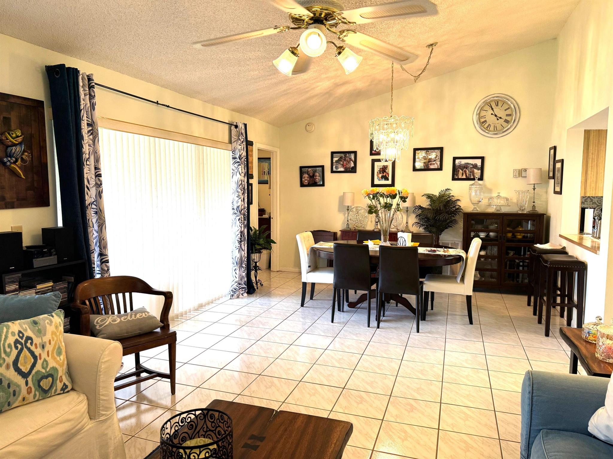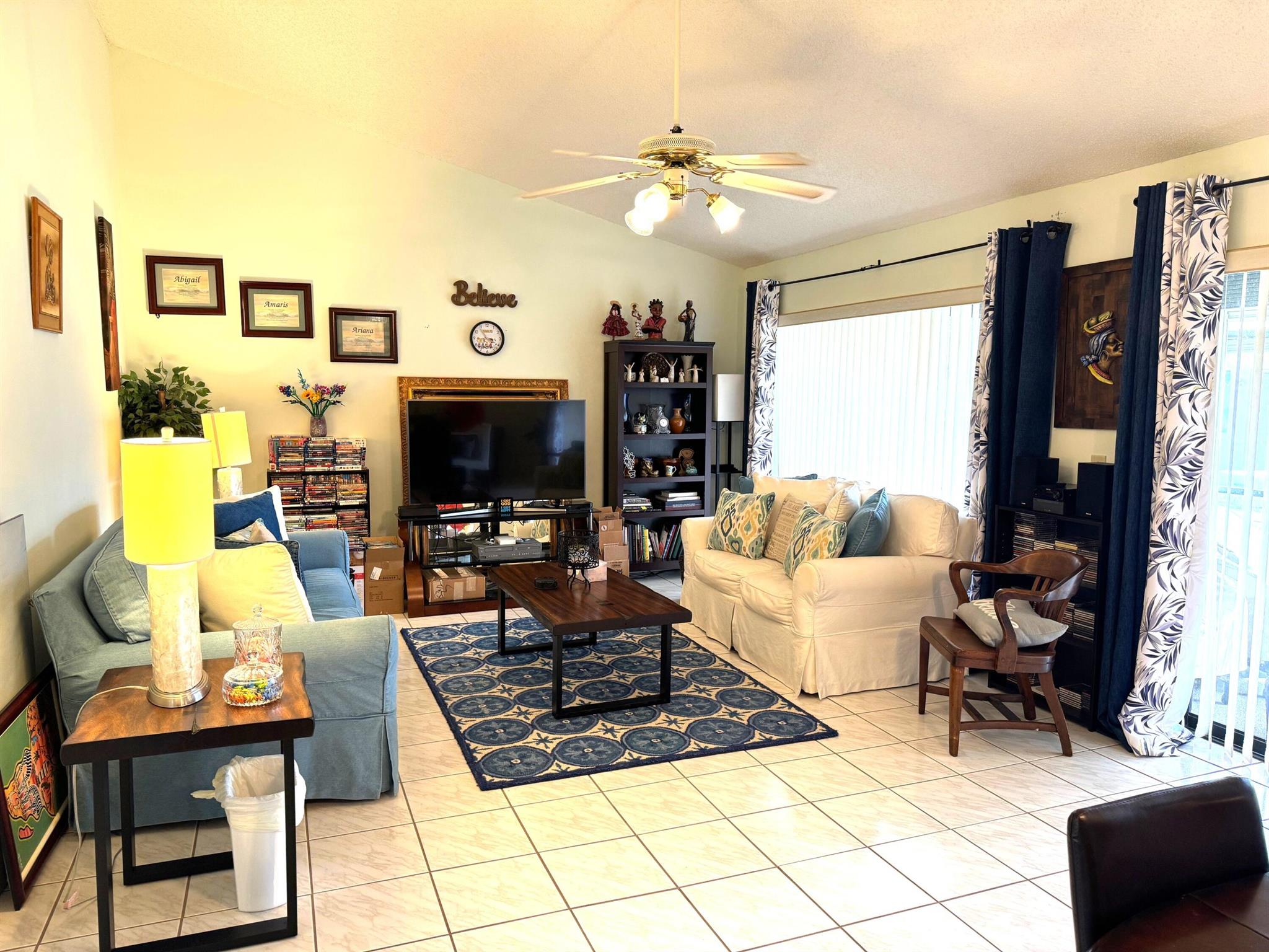 55+ community. This popular Oakwood model is split floorplan 2/2 featuring vaulted ceilings in the living/dining area offering spacious open area. Same tile throughout the house for easy maintenance. The kitchen in this home is designed with ample counter space and storage,there’s even enough room for a small table, perfect for enjoying your morning cup of coffee in front of big window. Dining area can accommodate a table and chairs for 8 to enjoy dining with family and friends. The primary suite has a walk in closet. Split floor plan is open and spacious. Well maintained roof is 2010 and AC is 2012.