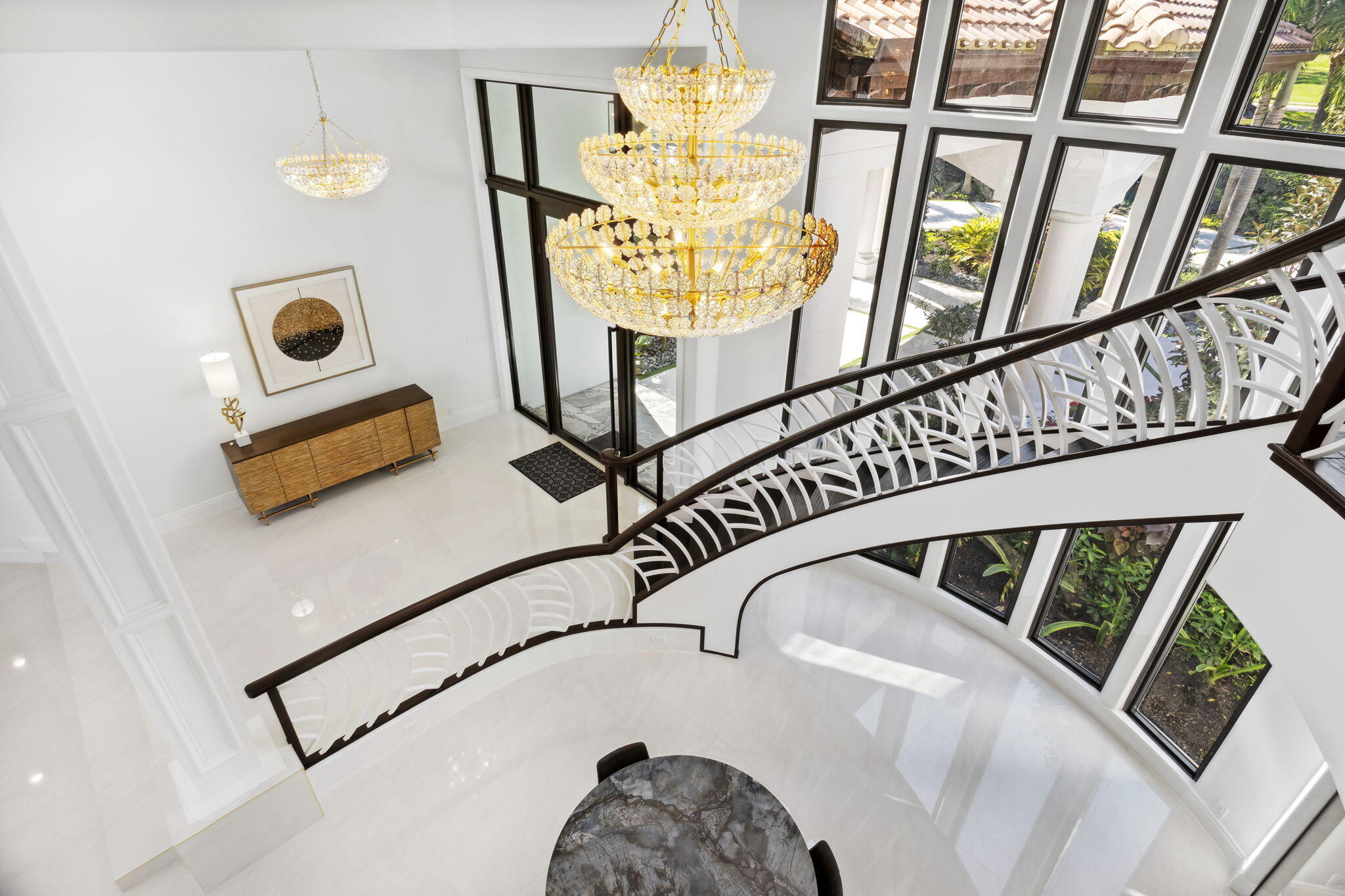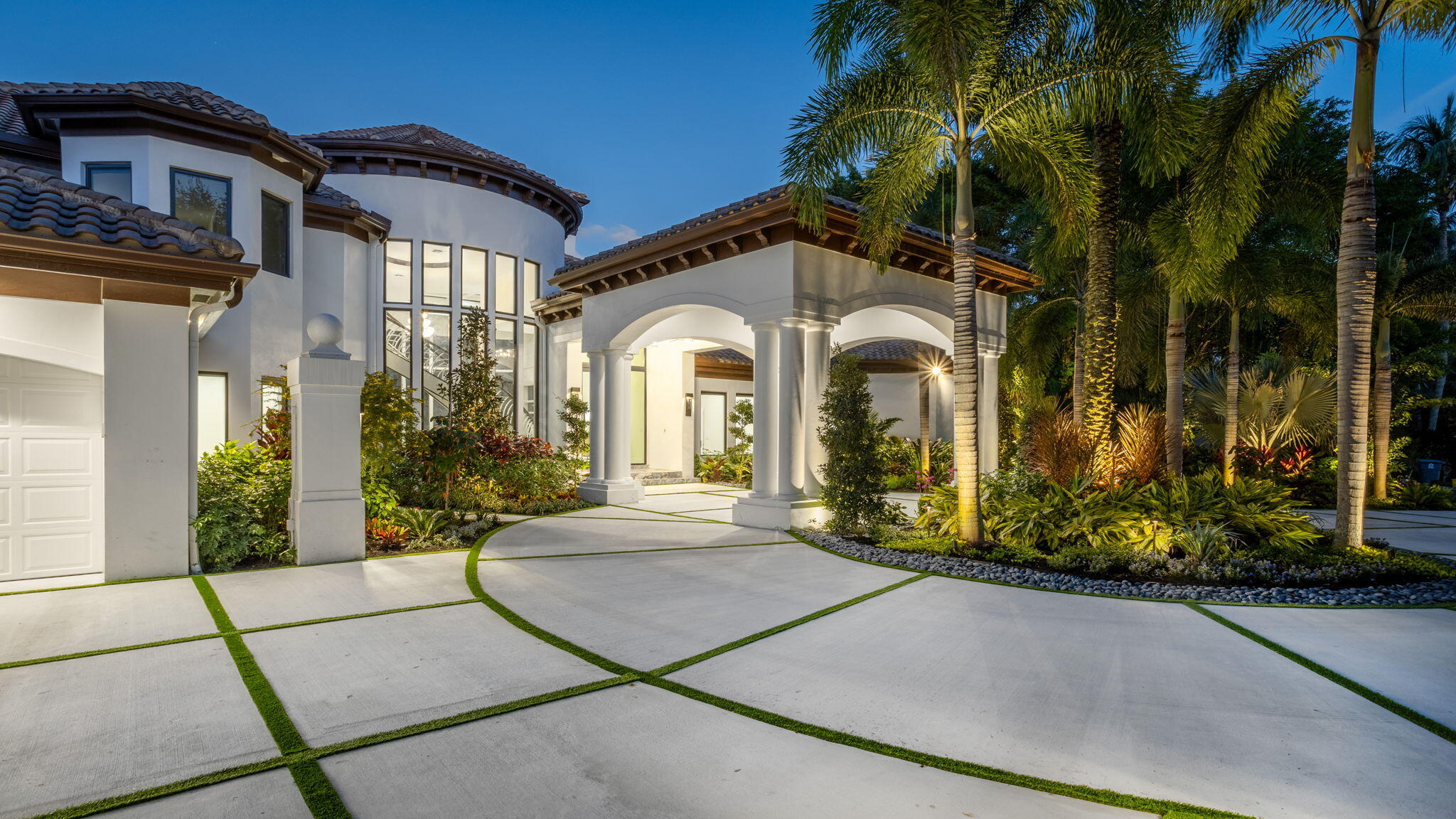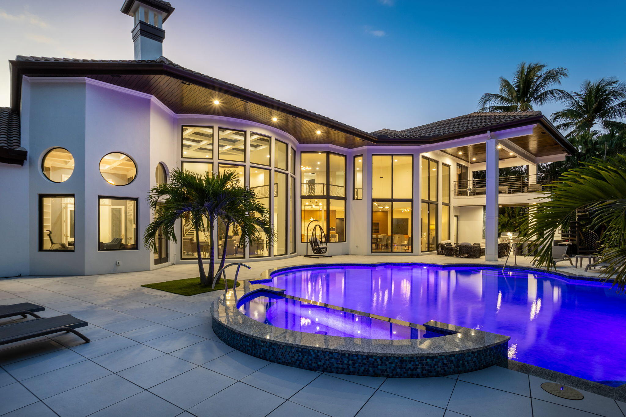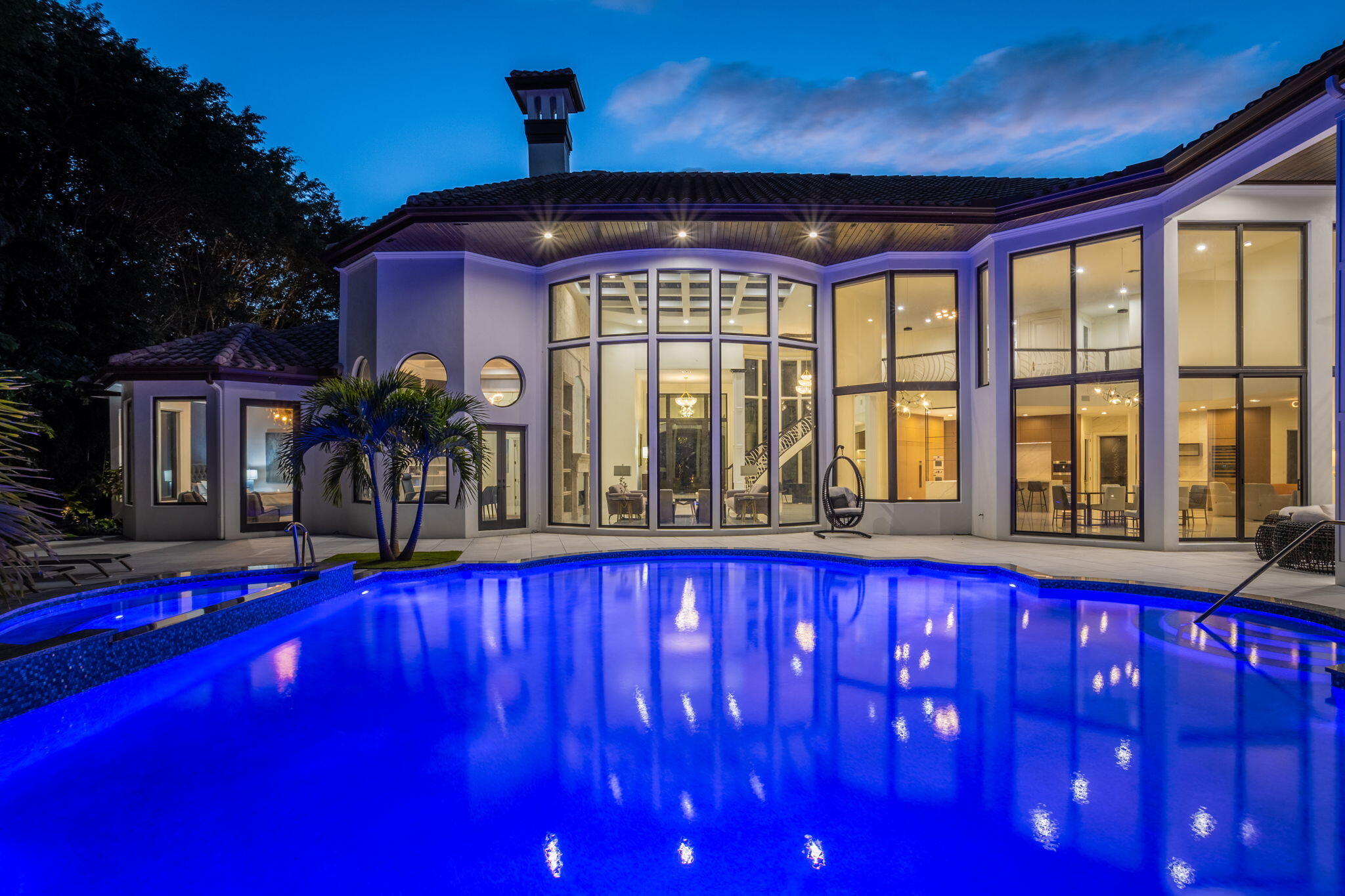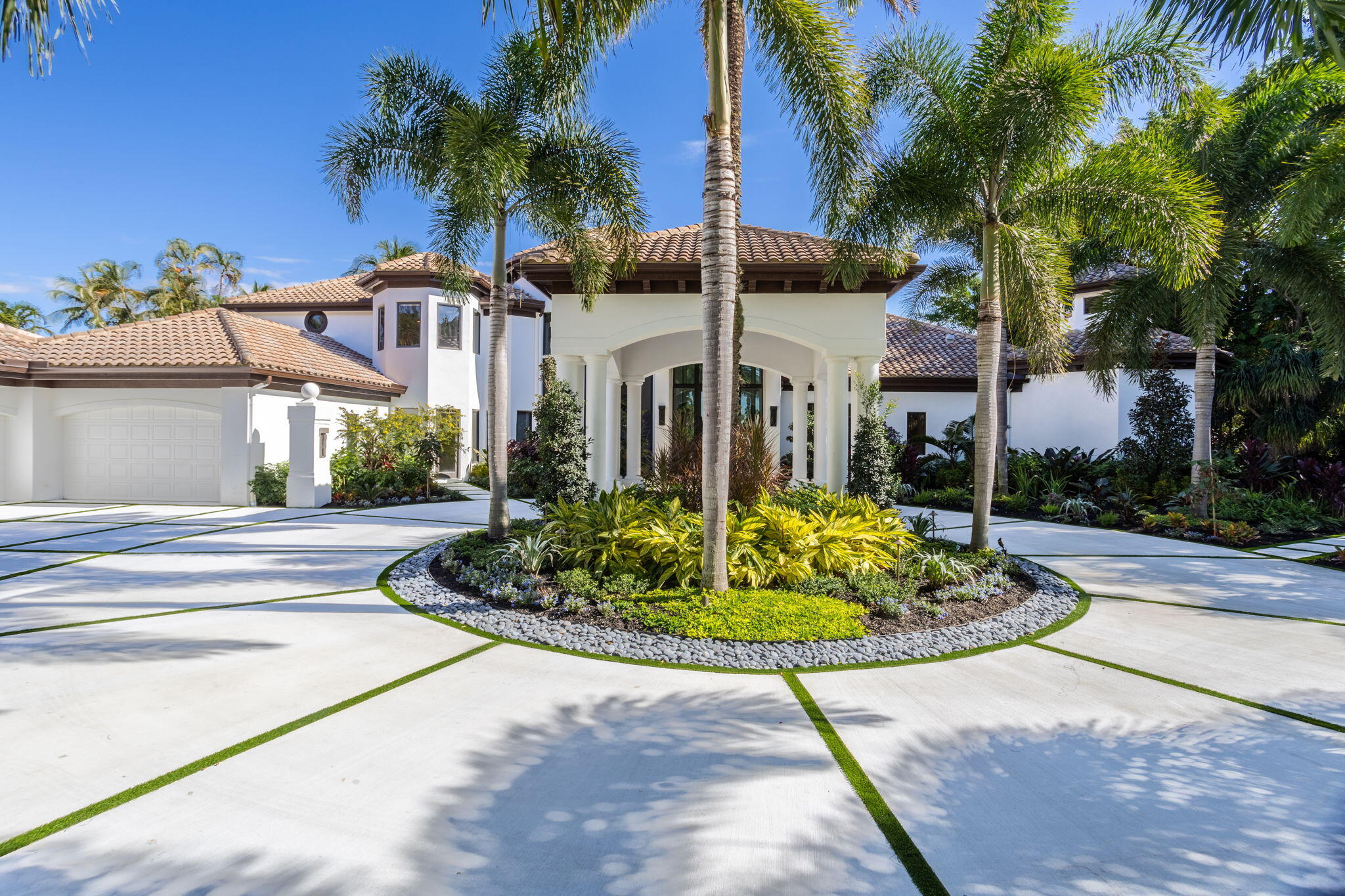 The Crown Jewel of this world-class country club community has just been re-imagined as of 2024. Located on .66 of an acre of only 12 Ultra custom residences in ‘The Islands’ private guard gated enclave. Exquisite tropical landscaping and a Palm Beach style circular driveway lead to a porte-coche’re main entry. Dramatic Glass entry doors showcase the grand great room, staircase and dining area all with 20 foot ceilings. Stunning floor to ceiling sheer-glass rear windows brings the resort style pool, patio, water and endless golf course vistas in.The first floor primary suite has dual bathrooms, an exercise room and adjacent office. A contemporary kitchen opens to a dinette family area and sitting area with an adjacent media room. The second level… see More
