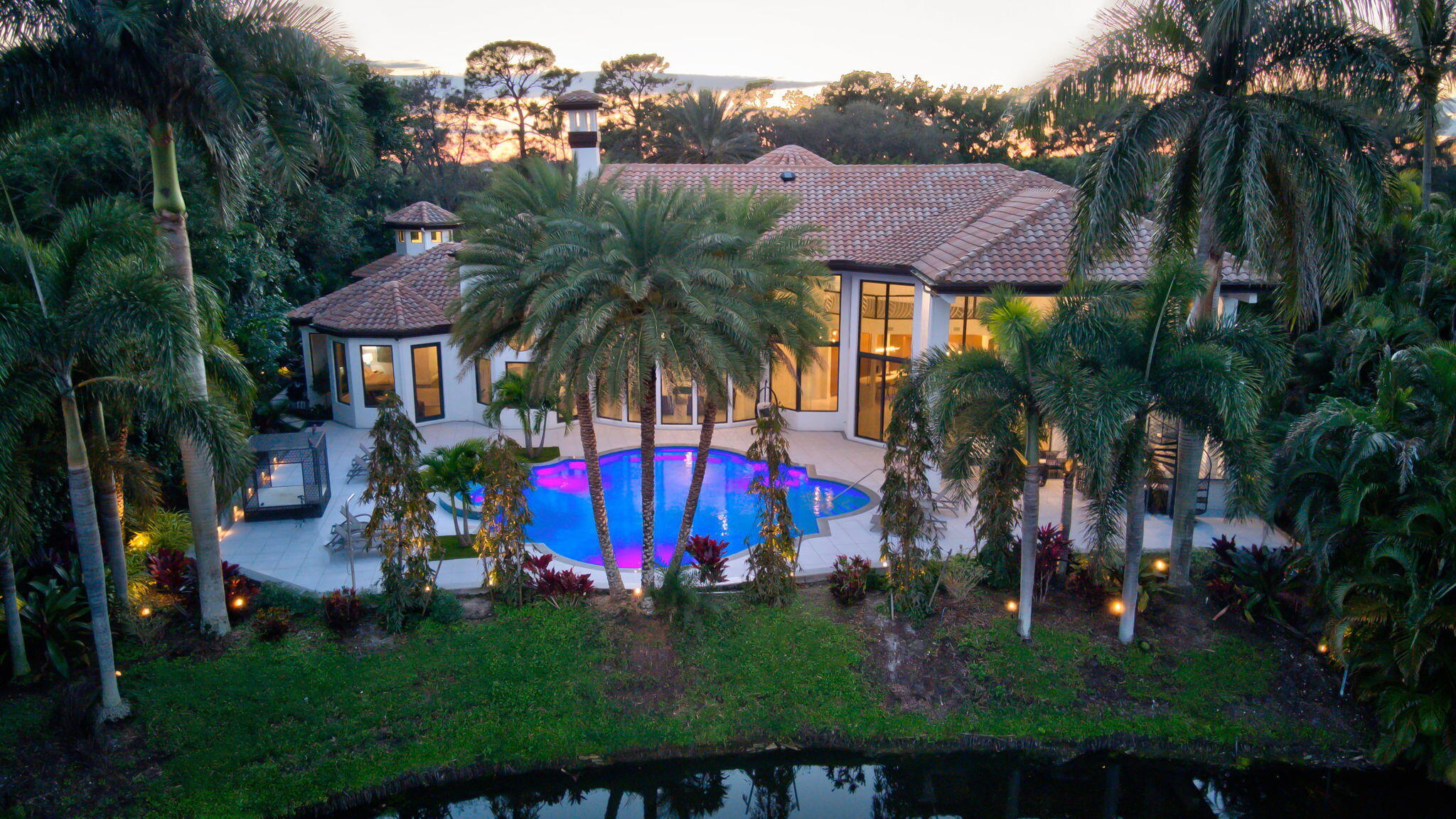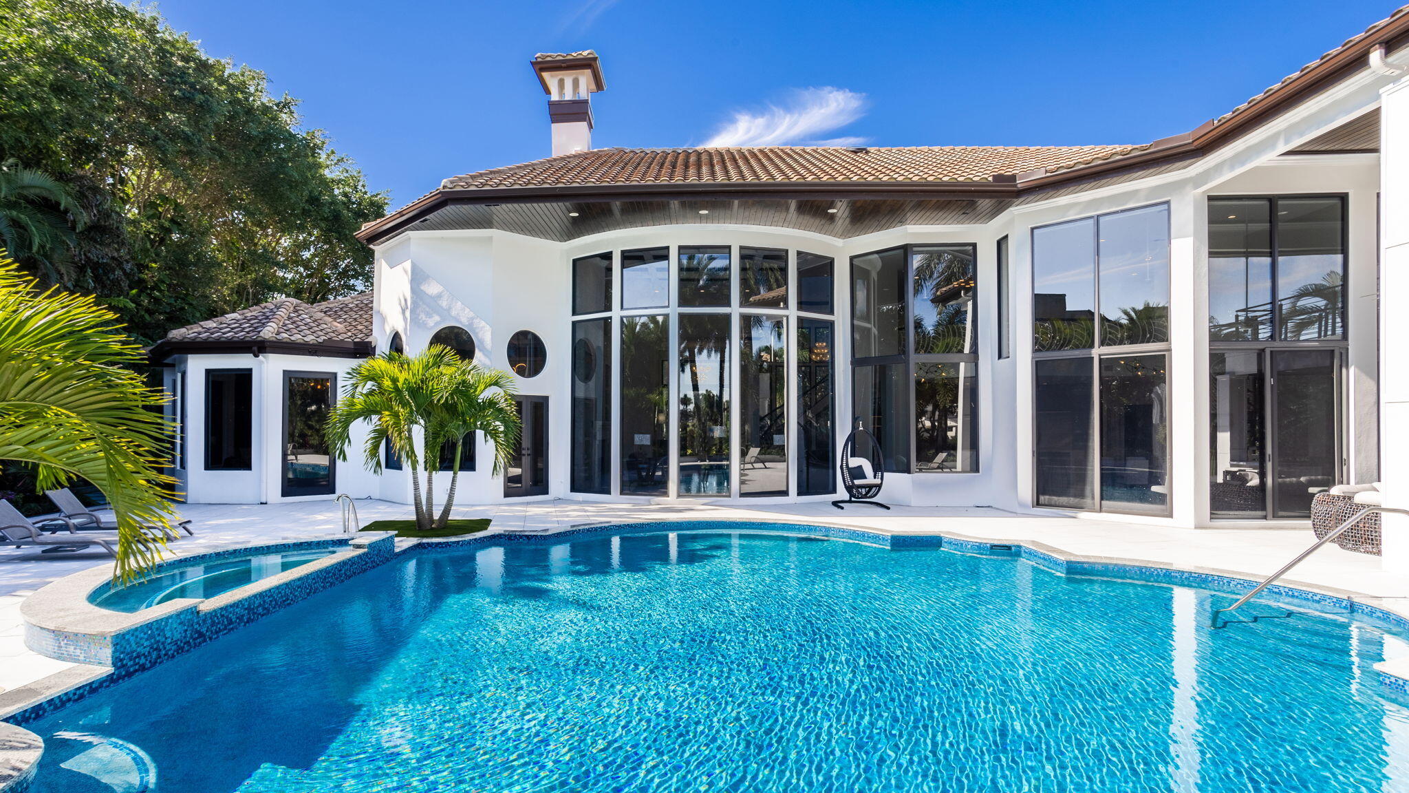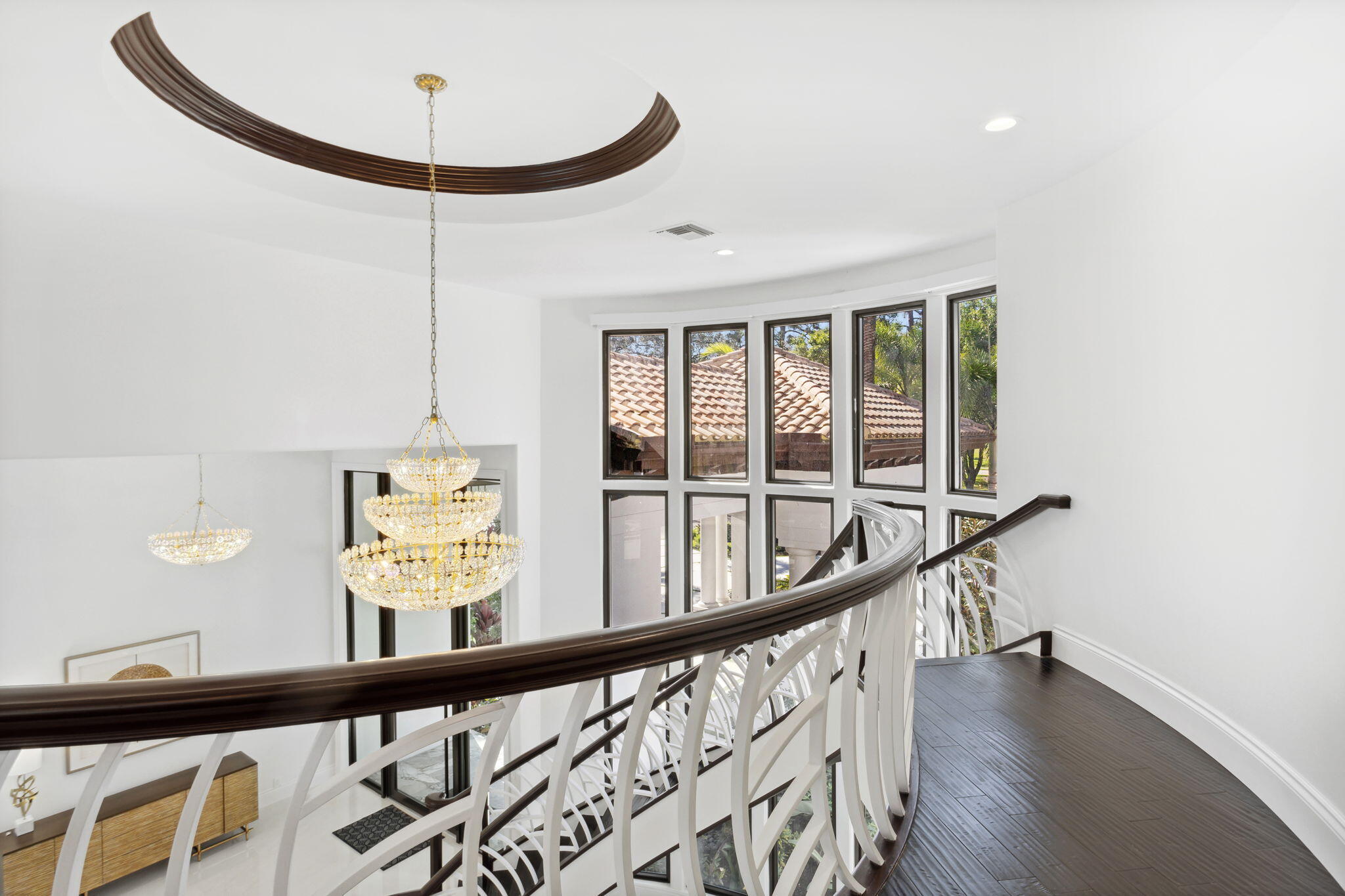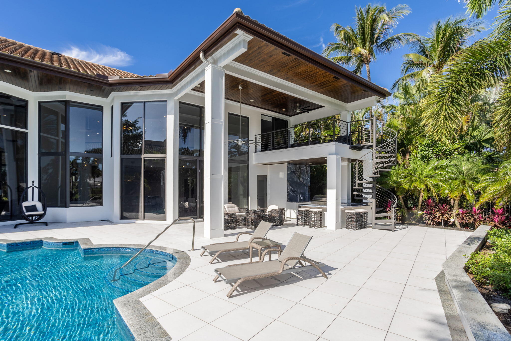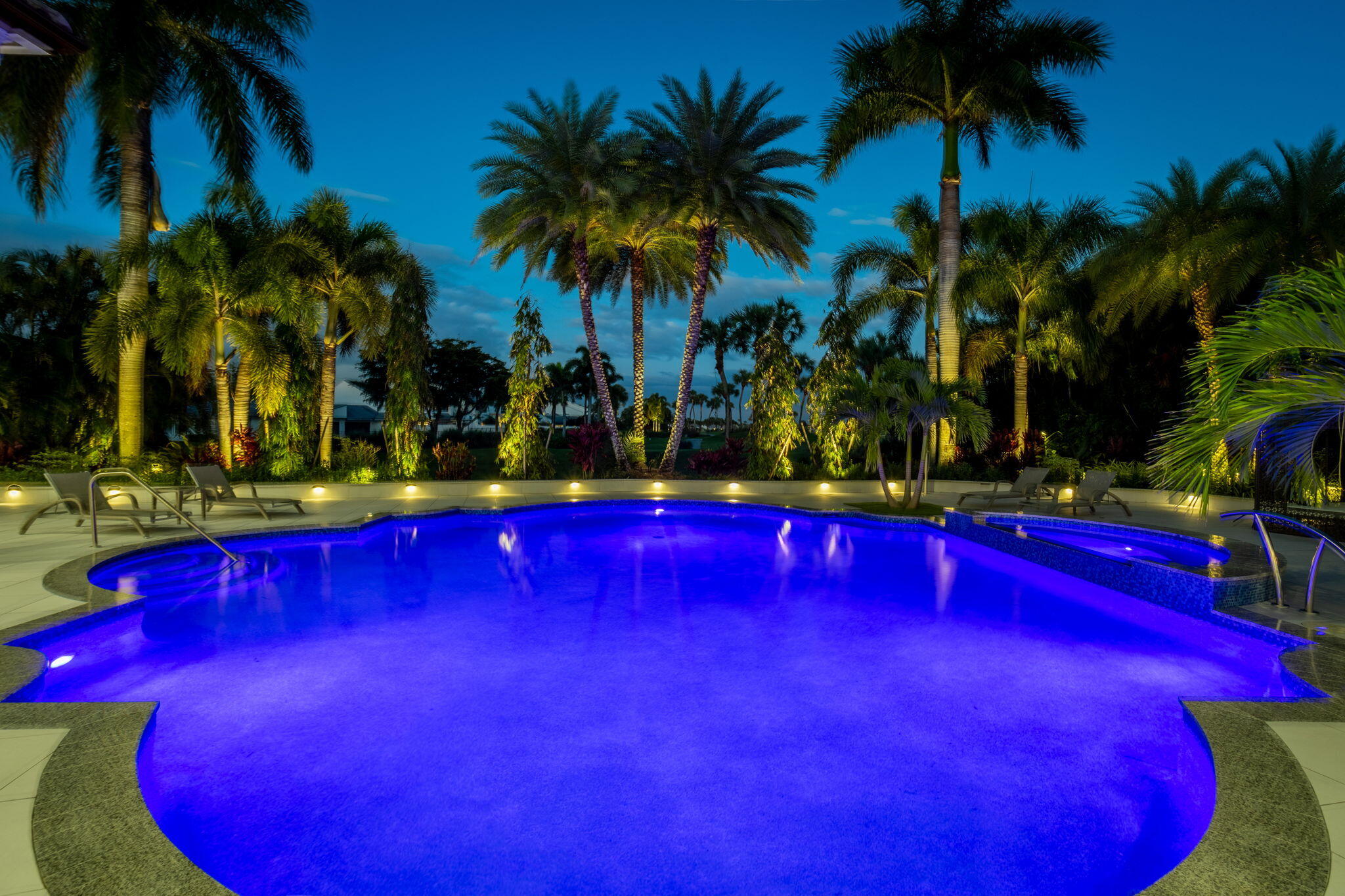 The Crown Jewel of this world-class country club community has just been re-imagined as of 2024. Located on .66 of an acre of only 12 Ultra custom residences in ‘The Islands’ private guard gated enclave. Exquisite tropical landscaping and a Palm Beach style circular driveway lead to a porte-coche’re main entry. Dramatic Glass entry doors showcase the grand great room, staircase and dining area all with 20 foot ceilings. Stunning floor to ceiling sheer-glass rear windows brings the resort style pool, patio, water and endless golf course vistas in.The first floor primary suite has dual bathrooms, an exercise room and adjacent office. A contemporary kitchen opens to a dinette family area and sitting area with an adjacent media room. The second level… see More