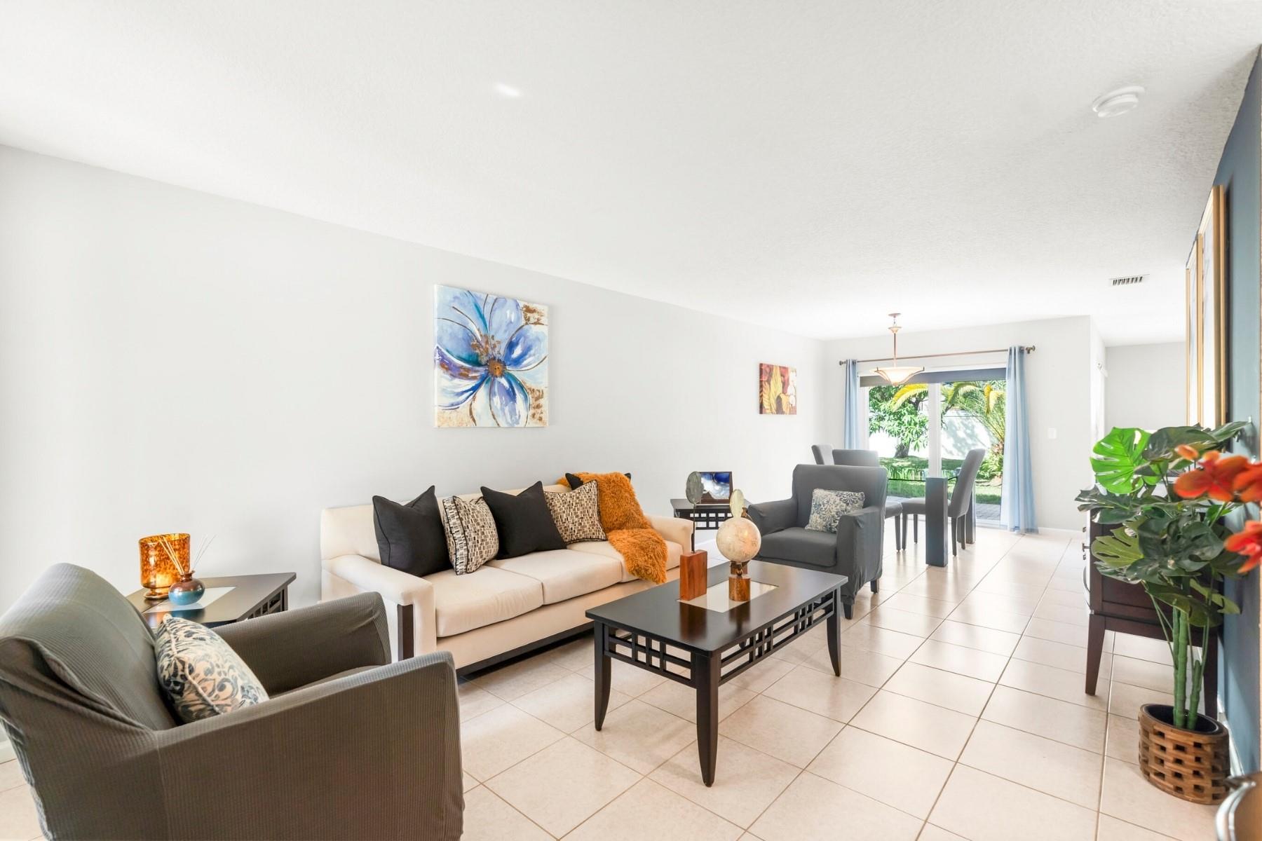 Charming & Meticulous Inverarry home with ALL HURRICANE IMPACT DOORS & WINDOWS (including garage door), 2018 TRANE A/C, NEWER WATER HEATER, kitchen stainless steel appliances & laminate flooring throughout. Offering 3 bedrooms upstairs & spacious living areas downstairs, including a formal dining & living room, open kitchen & family room. Double sliders connect indoor & outdoor spaces, ideal for entertaining. The backyard boasts a privacy wall, fruit trees & extended brick pavers. The upgraded secondary bathroom features 20×20 porcelain tile & sleek black shower fixtures. For a LOW HOA you will enjoy the community pool, nearby guest parking & easy access to shopping centers, Turnpike & Sawgrass Expressway—making it convenient to the best of dining, parks, & place of worship.