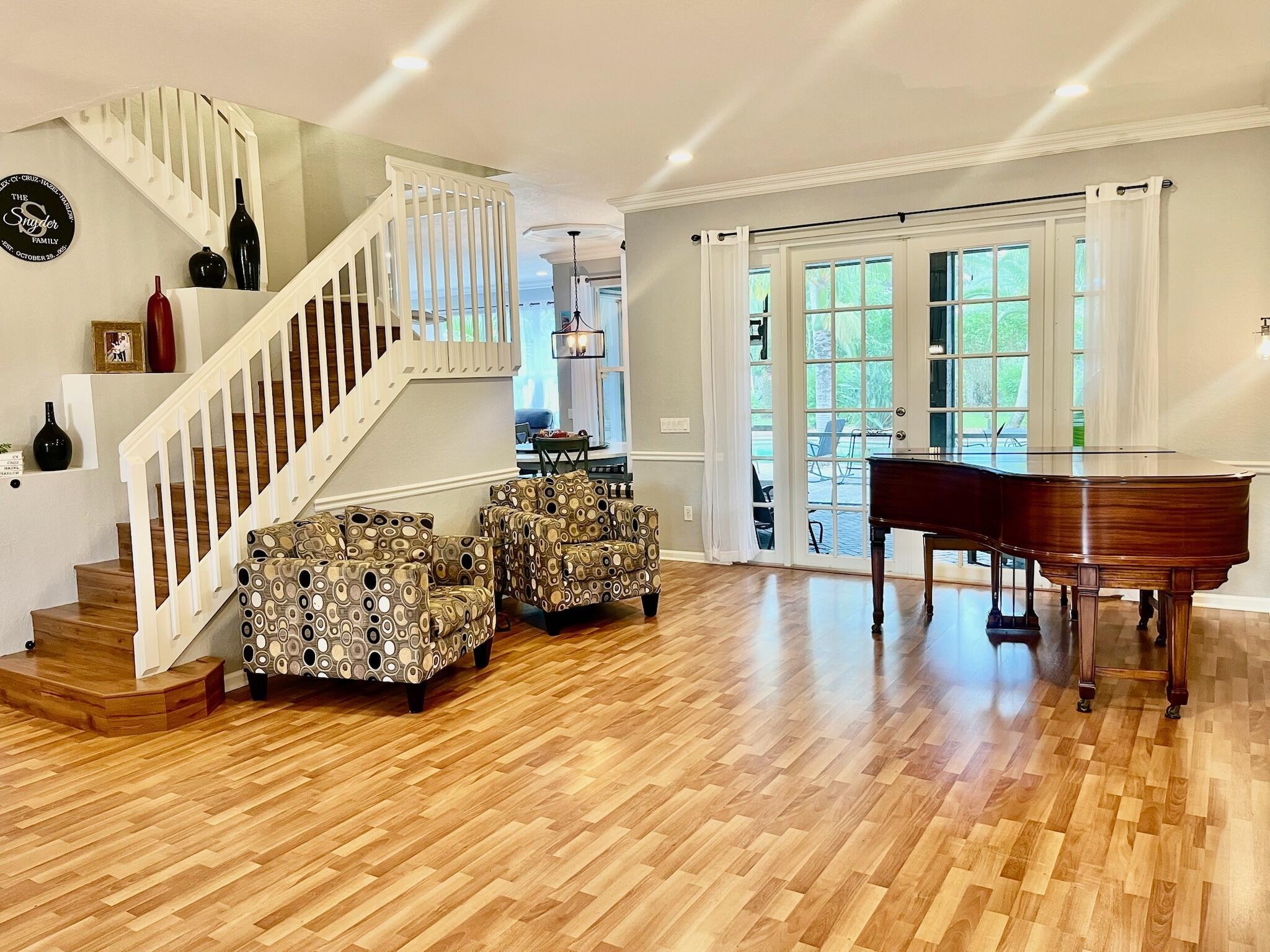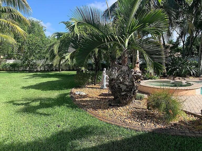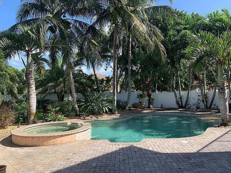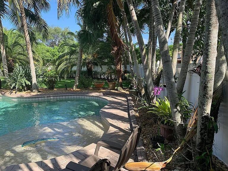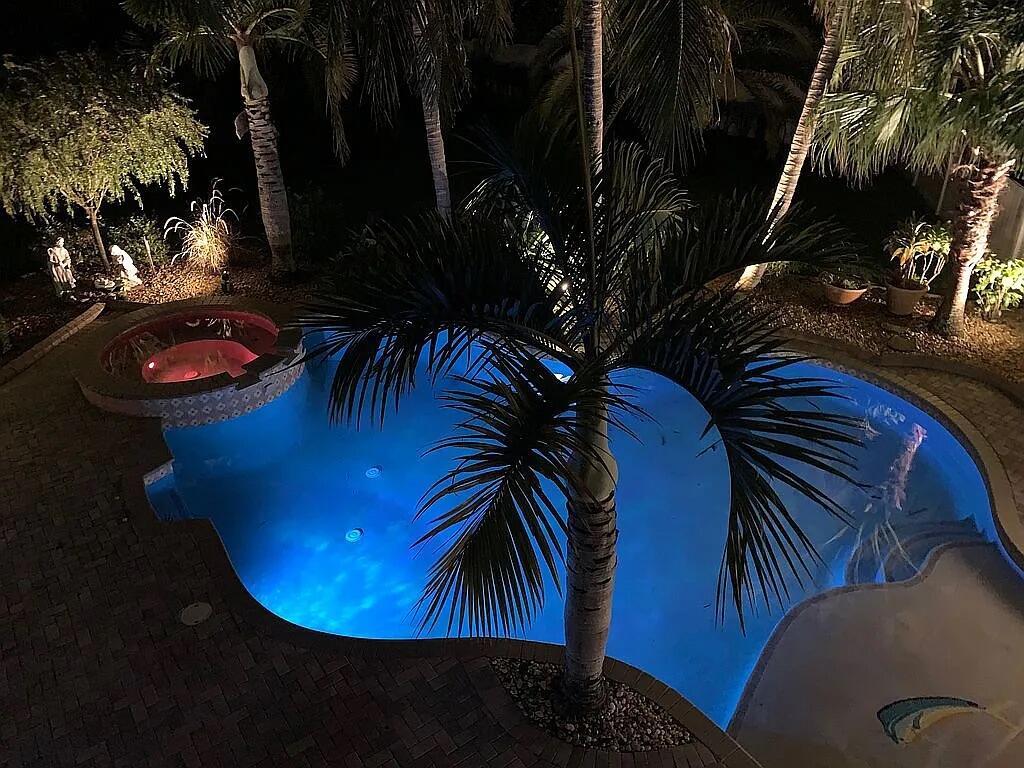 Stunning tropical estate home! You’ll feel like you’re on vacation every day in this gorgeous 6 bedroom 4 bath home with heated pool and spa. This property is serene and spacious inside and out. You’ll love the open floor plan, that is perfect for entertaining, whether it’s small and intimate or a large gathering. The beautiful bright kitchen opens to the family room and breakfast nook and has beautiful views of the pool and yard. The huge master bedroom has its own sitting area and spectacular custom coffered ceiling. In all, there are 5 bedrooms and 3 baths upstairs and one bedroom/office and one bath downstairs, with lots of custom features throughout. As nice as the house is, the outdoor space is even more amazing, with a screened outdoor living area as well as a huge pool deck for