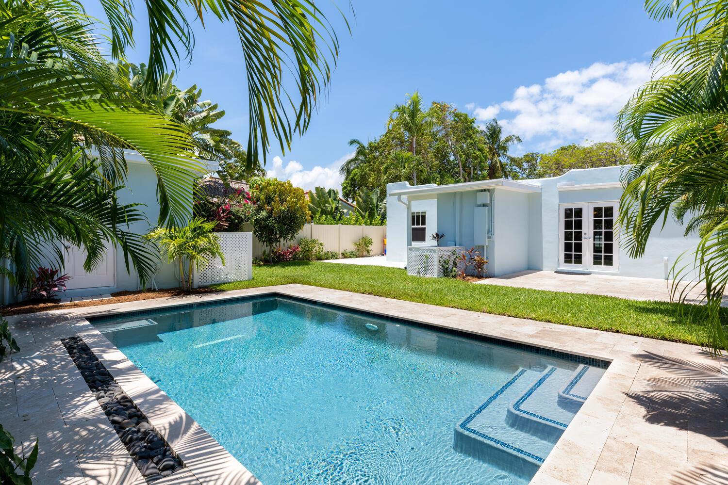 Charming, completely remodeled 1926 Belair Home located on a quiet cul-de-sac East of Olive in the highly sought after SoSo neighborhood. This 3 bedroom, 3 bathroom home features original Dade County Pine hardwood floors, high impact hurricane windows and doors, updated bathrooms and a remodeled kitchen with antique white cabinets, quartz countertops, and stainless appliances. The impact skylight in the living area provides wonderful natural light to the home and the French doors in the Master bedroom lead to a fully fenced, lushly landscaped backyard and heated swimming pool. also available for annual lease at $7,750 mo