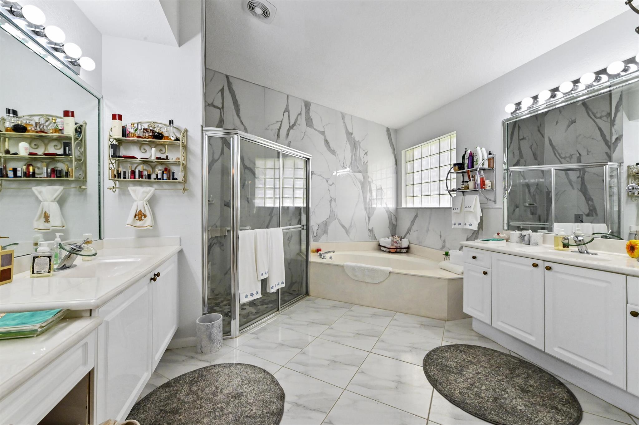 Welcome to 10378 Utopia Circle East, a captivating lakefront home situated in the enchanting Grove Isle – a splendid gated active adult community in Boynton Beach, Florida. From high ceilings creating an impression of boundless space to unbounded lake views, this home captures the essence of serene and plush living. The space within this home is generously spread over an expansive area of over 2,400 square feet. Upon entry, this residence greets you with a visually open and spacious plan that is set to impress. Elegant and regal, this home assures you of a lavish living experience. The master suite, one of the largest models, is a true sanctuary with ‘his & hers’ walk-in closets, offering an impressive amount of space for effortless organization.