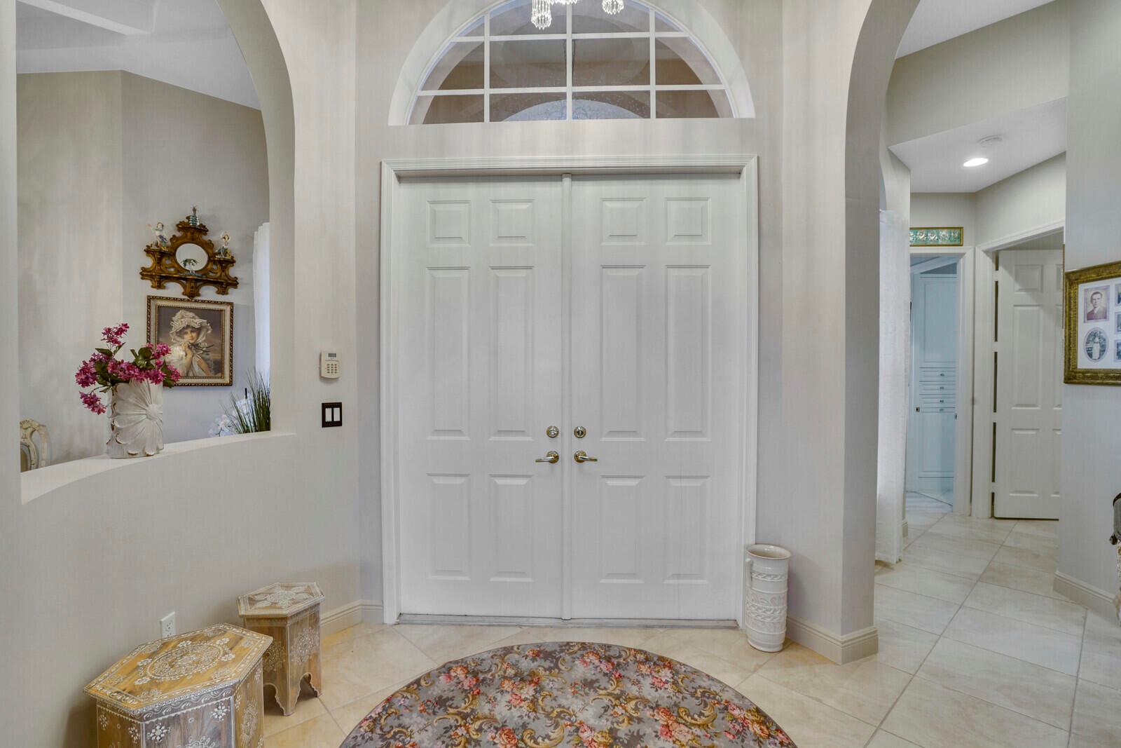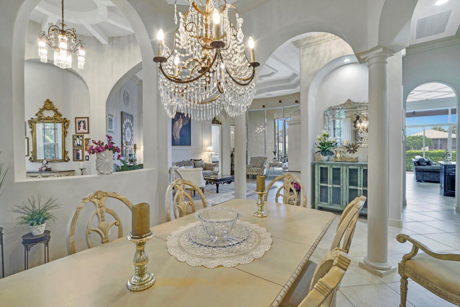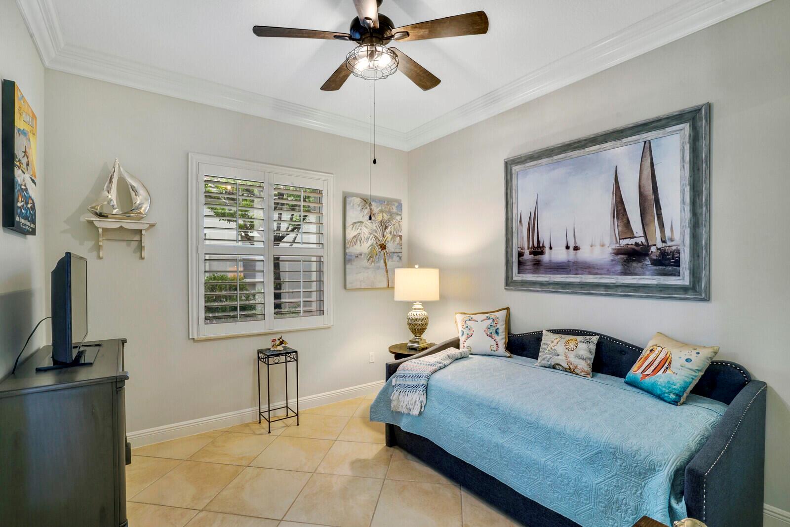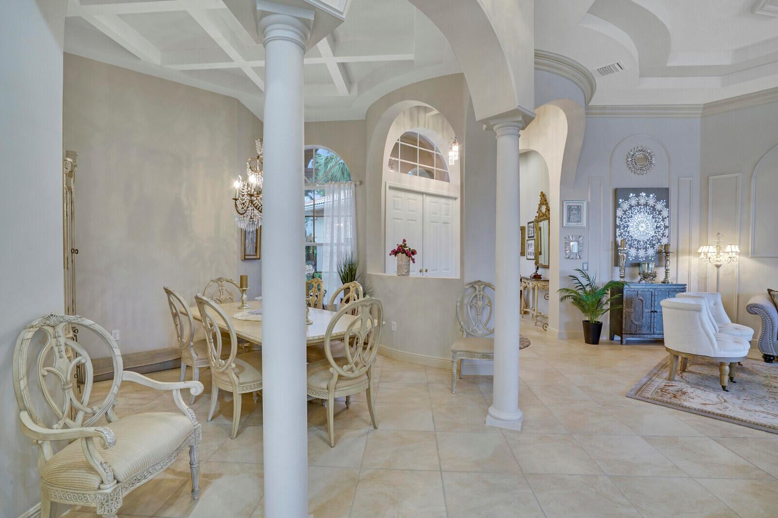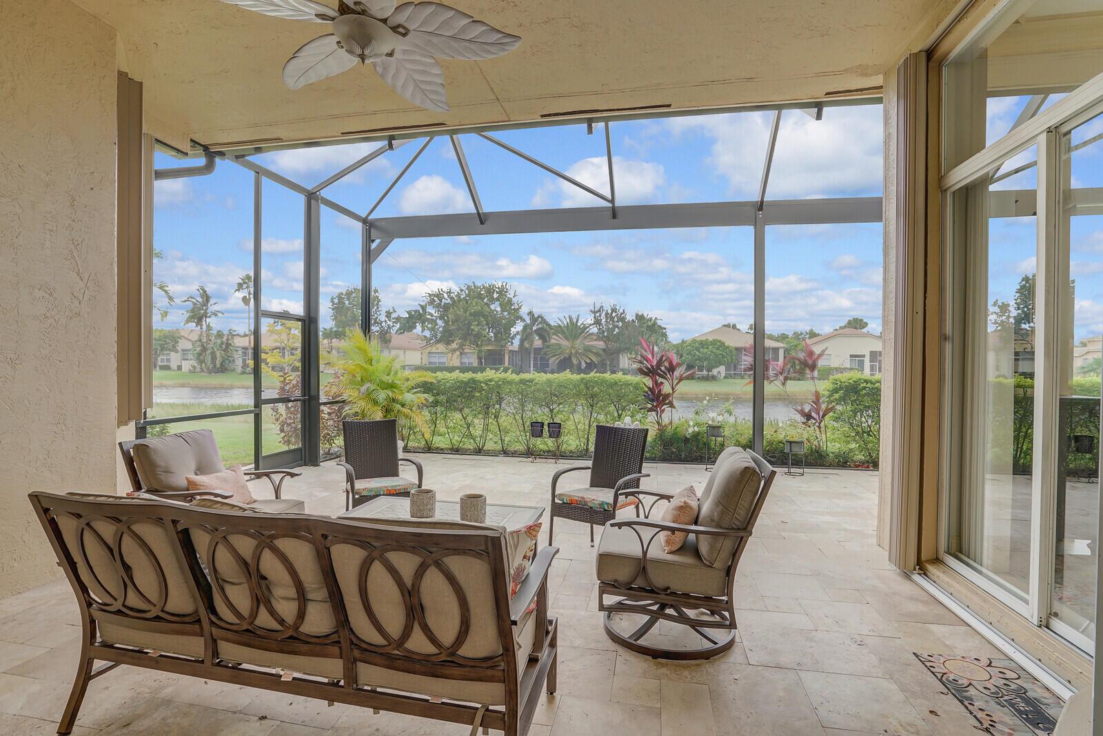 This beautiful 3-bedroom, plus office, 2.5-bathroom lakefront Montego Estate model home offers a spacious and thoughtfully designed layout. With over 2,800 sq. ft. of living space, this home features quality finishes and an open floor plan, perfect for modern living. Neutral tile flooring laid on the diagonal, high-volume ceilings, and elegant crown molding create a bright and welcoming atmosphere. The recently renovated kitchen is the heart of the home, showcasing granite countertops, a center island, upgraded appliances, and tall upper cabinets with detailed moldings. The kitchen flows seamlessly into the sunlit family room, making it an ideal space for entertaining or relaxing. The private master suite boasts coffered ceilings, custom-built walk-in closets, and a luxurious master bath.