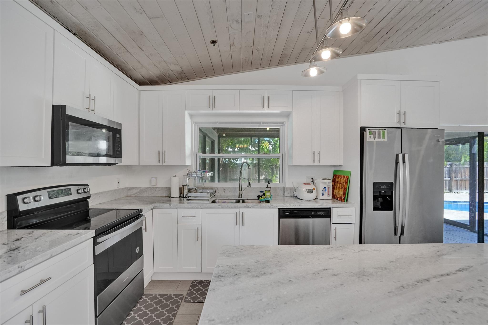 Beautifully Remodeled 3BD,2BA Home with 2-Car Garage pool home! This open-concept, single-story home features a modern kitchen with stainless steel appliances, updated bathrooms, plank flooring, vaulted ceilings, and a brand-new 2021 roof. Relax by the newly installed pool in a fully fenced yard with a side yard and a mango tree. The home also includes an A/C laundry room and a private office in the garage. Each guest bedroom has its own entrance, and the master overlooks the pool. Located in a quiet community with easy highway access and no HOA! Don’t miss this opportunity—this home won’t last!