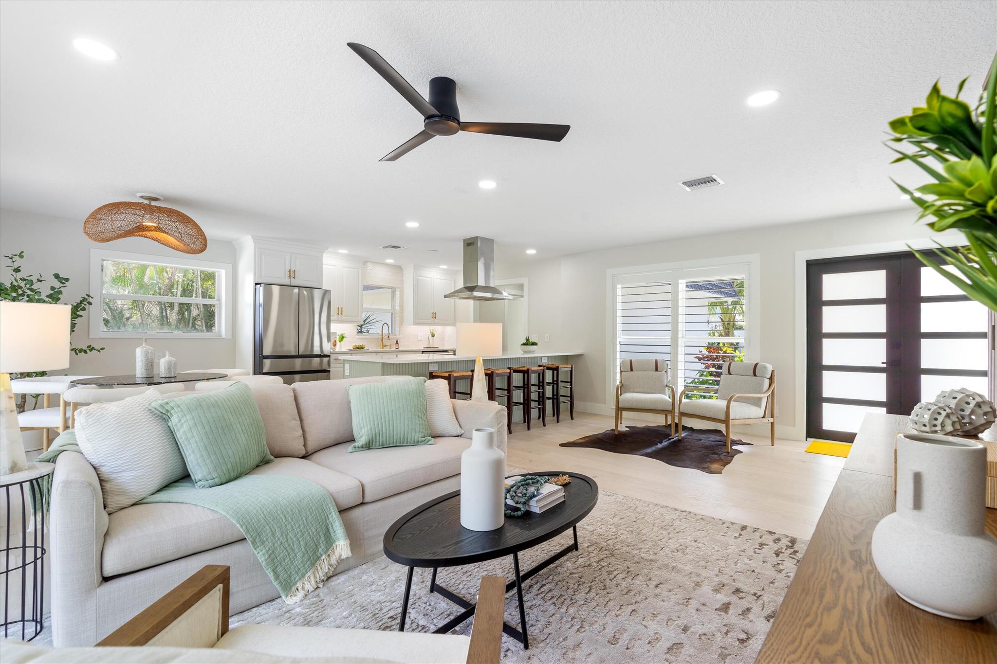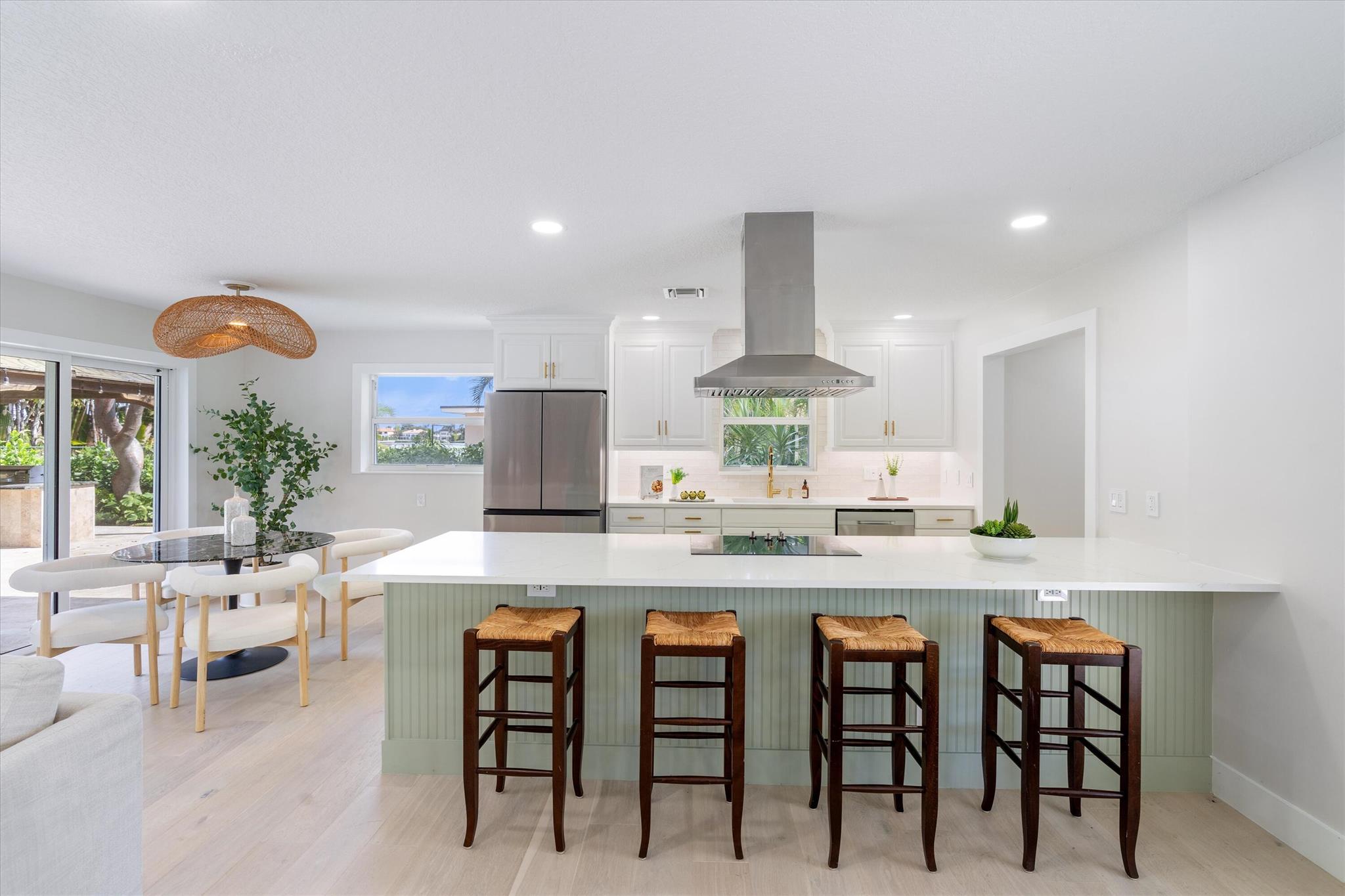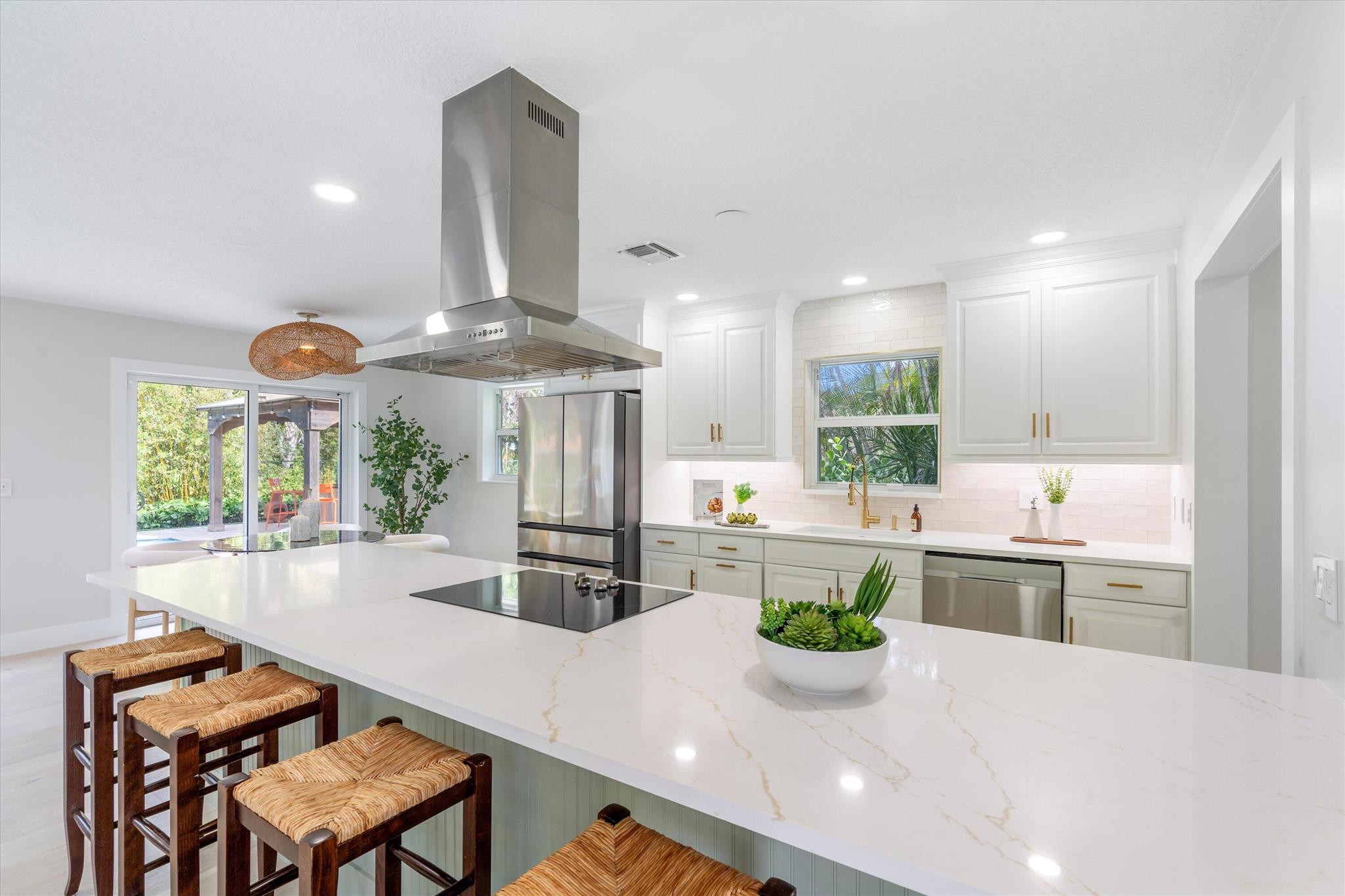 Seller is offering an interest rate BUYDOWN for 3 years! Beautiful pool home with a deeded boat slip, 4 bedrooms and 3 modern bathrooms. Stunning kitchen, featuring white cabinetry, SS appliances, center island with builtin oven/hood.. Custom closets, wood trim, & recessed lighting. Tropical oasis, lush landscaping and lighting, expansive patio complete with an outdoor summer kitchen–ideal for family and entertaining. Impact windows & doors, fully fenced yard, 2 efficient split AC units. View of intracoastal from back yard and dining Rm. Boat slip accommodates 30-ft vessel with 10,000-lb lift, electric and water service. Slip was recently dredged for easy access. Hypoluxo Point is a boating community minutes from the Boynton Inlet to ocean access.