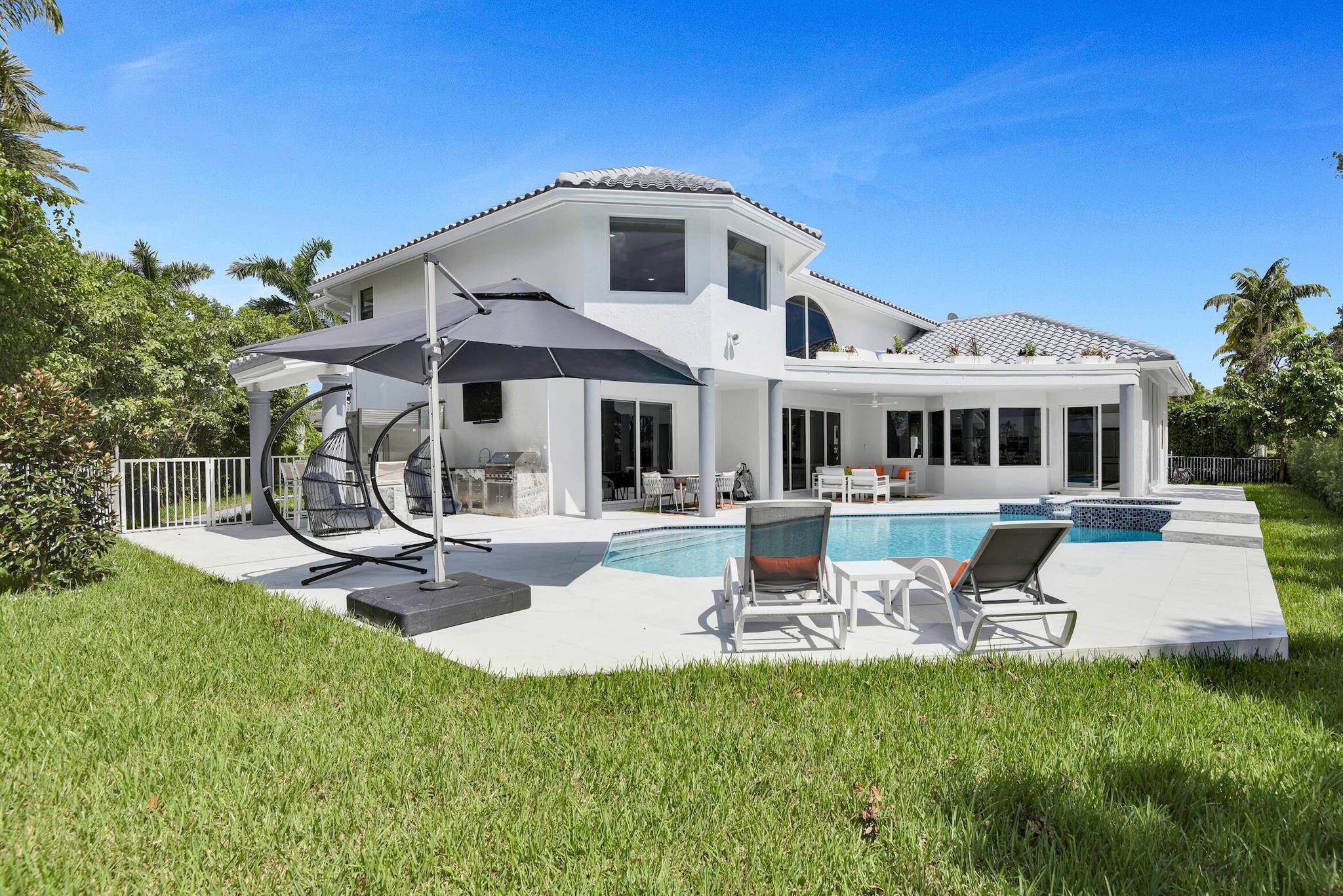 PRIMARY BEDROOM IS UPSTAIRS! Experience luxurious living in this completely remodeled two-story home located on a cul-de-sac in the award winning Country Club at Broken Sound. This contemporary 6 bed 6 bath home is perfect for families & those who love to entertain. The large spacious kitchen with double islands is perfect for the discerning chef. This property boasts an open floor plan, impact windows throughout, 3 new a/c, elegant finishes, wine display, expansive living spaces, fabulous landscaping, large pool & spa, summer kitchen , and an amazing backyard with golf & lake views. Every detail has been thoughtfully updated for modern living in this exceptional residence. This home located in the estate section of Grand Oaks defines upscale living at it’s best. Move right in and
