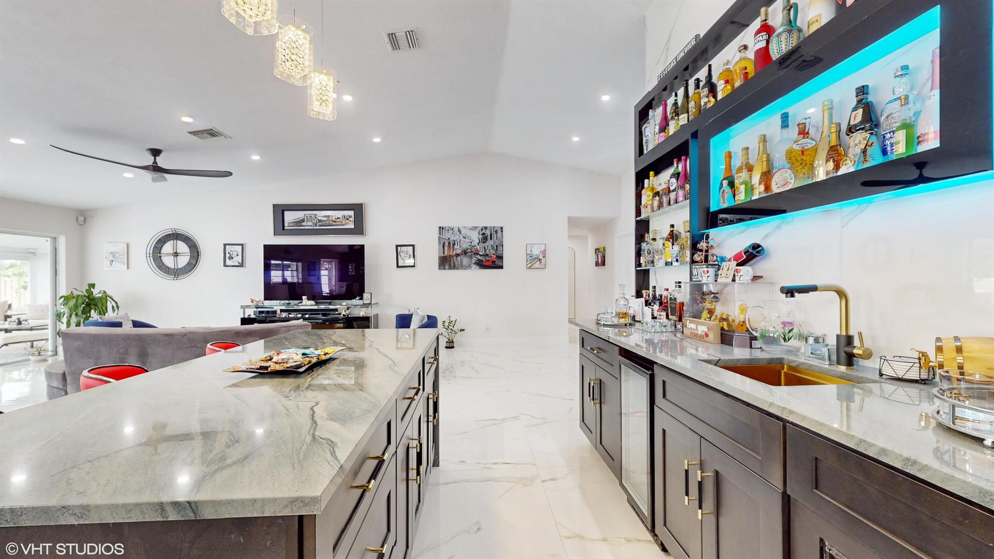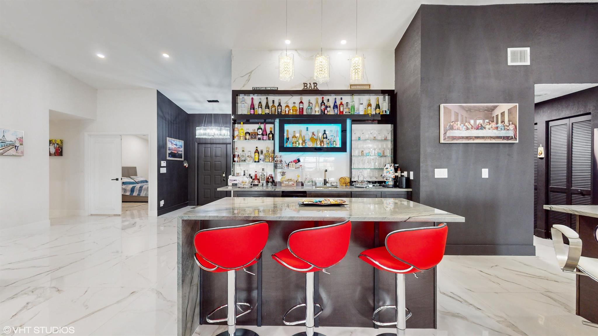 Welcome to your dream home nestled in the beautifully gated community of Summer Chase. The residence boasts stunning open views of the lake. Nothing has been overlooked in this home that features 32×32 marble look tile flooring throughout the home and even in the patio. The recently renovated home offers a kitchen with custom cabinets, beautiful backsplash, waterfall granite with high-end appliances that flows into the custom wet bar with a wine cooler for anyone who enjoys entertaining. The master bedroom features a unique wet room bathroom with a large shower and free-standing tub. Enjoy the large, air-conditioned patio overlooking the lake with a huge mango tree. Come see this home and make it your own.