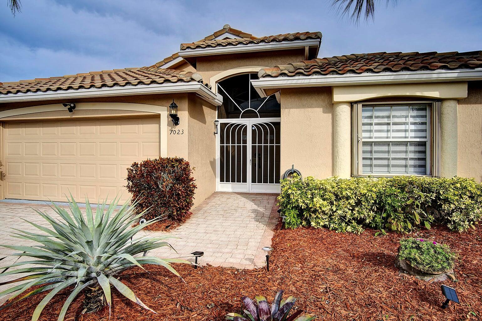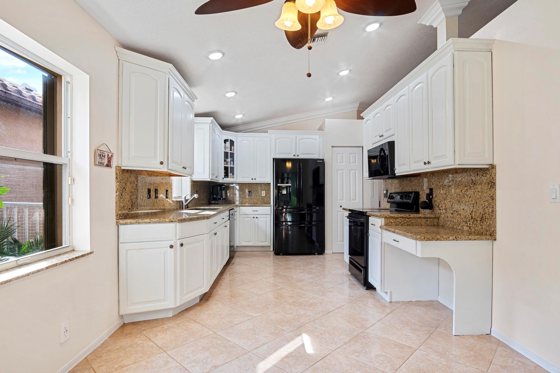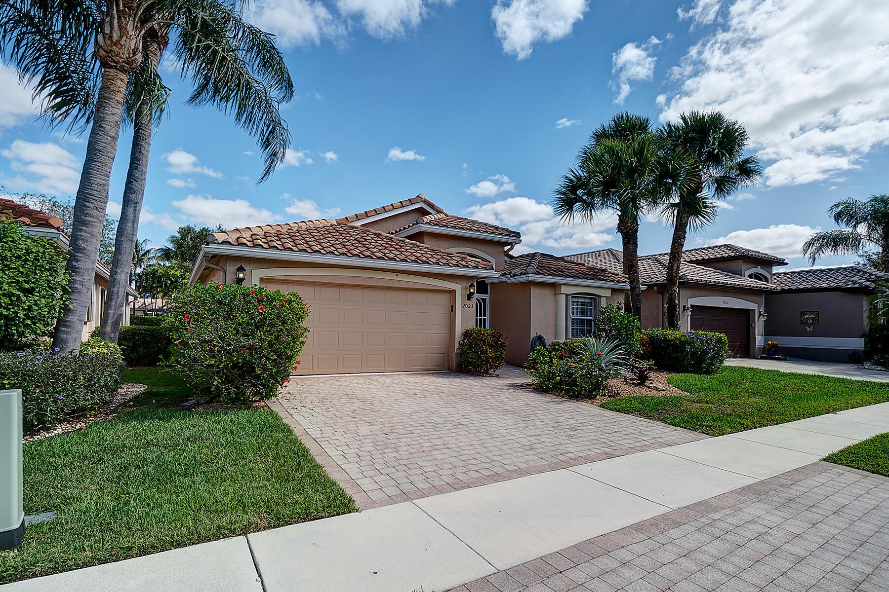 WALKING DISTANCE TO THE CLUBHOUSE. **COVERED & SCREENED BIRDCAGE ENTRY. NEWER INTERIOR PAINT. TILE FLOORS THROUGHOUT. ACCORDION HURRICANE SHUTTERS, NEWER A/C UNIT. UPDATED KITCHEN W/GLASS DECORATIVE WHITE CABINET, NEWER BLACK APPLIANCES, GRANITE COUNTERTOPS & LARGE PANTRY. ENCLOSED TILED LANAI UNDER AIR WITH SEPARATE A/C UNIT. PRIVATE FENCED BACKYARD OFF CANAL. CROWN MOLDINGS, CALIFORNIA SHUTTERS IN THE MASTER BEDROOM, , FULL SIZE WASHER & DRYER, SOLAR ENERGY HOT WATER HEATER, UPGRADED COMMODE IN BOTH BATHROOMS (BIDE LIKE), SAFE & MORE! CALL NOW! PONTE VECCHIO IS A MANNED GATED, VERY ACTIVE ASSOCIATION WITH RESORT STYLE AMENITIES. THIRD BEDROOM IS A DEN. HOA fee includes WIFI, ALARM, Cable, LAWN, Exterior House Painting, & Power Washing of Driveway & Roof.
