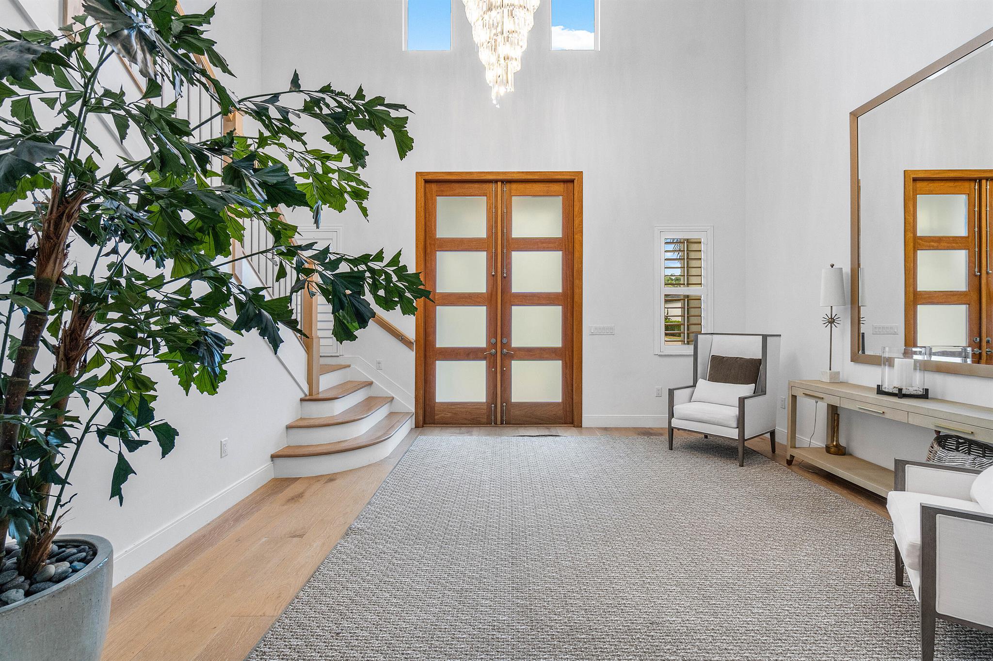 Experience casual elegance at this stunning five-bedroom estate, a 2017-built two-story home just moments from Mizner Park. The grand foyer, showcasing white oak flooring and backyard views, welcomes you into this luxurious yet relaxed living space. The expansive white shaker kitchen is a chef’s dream, ideal for both creating culinary delights and entertaining guests. Unwind in the spacious outdoor lounge, your private oasis. A poolside bedroom suite and bonus room complete the first floor. Upstairs, discover four generously sized bedrooms and three full baths. The primary suite boasts an extended bath with a wet area, separate water closet, and two large walk-in closets.
