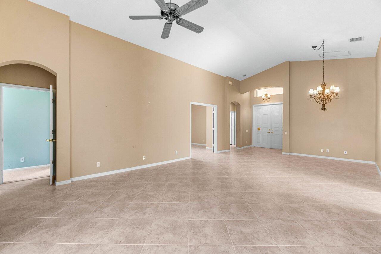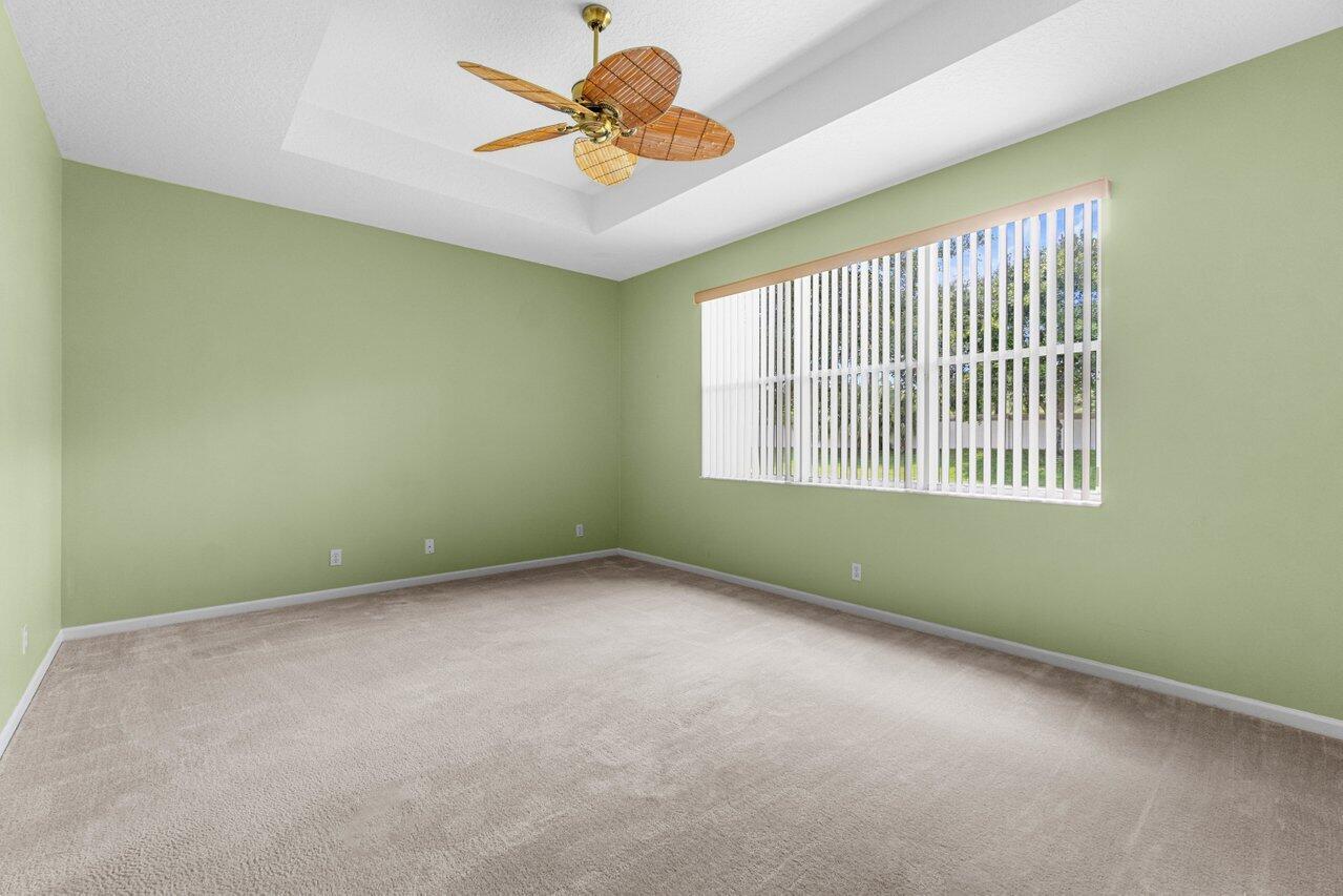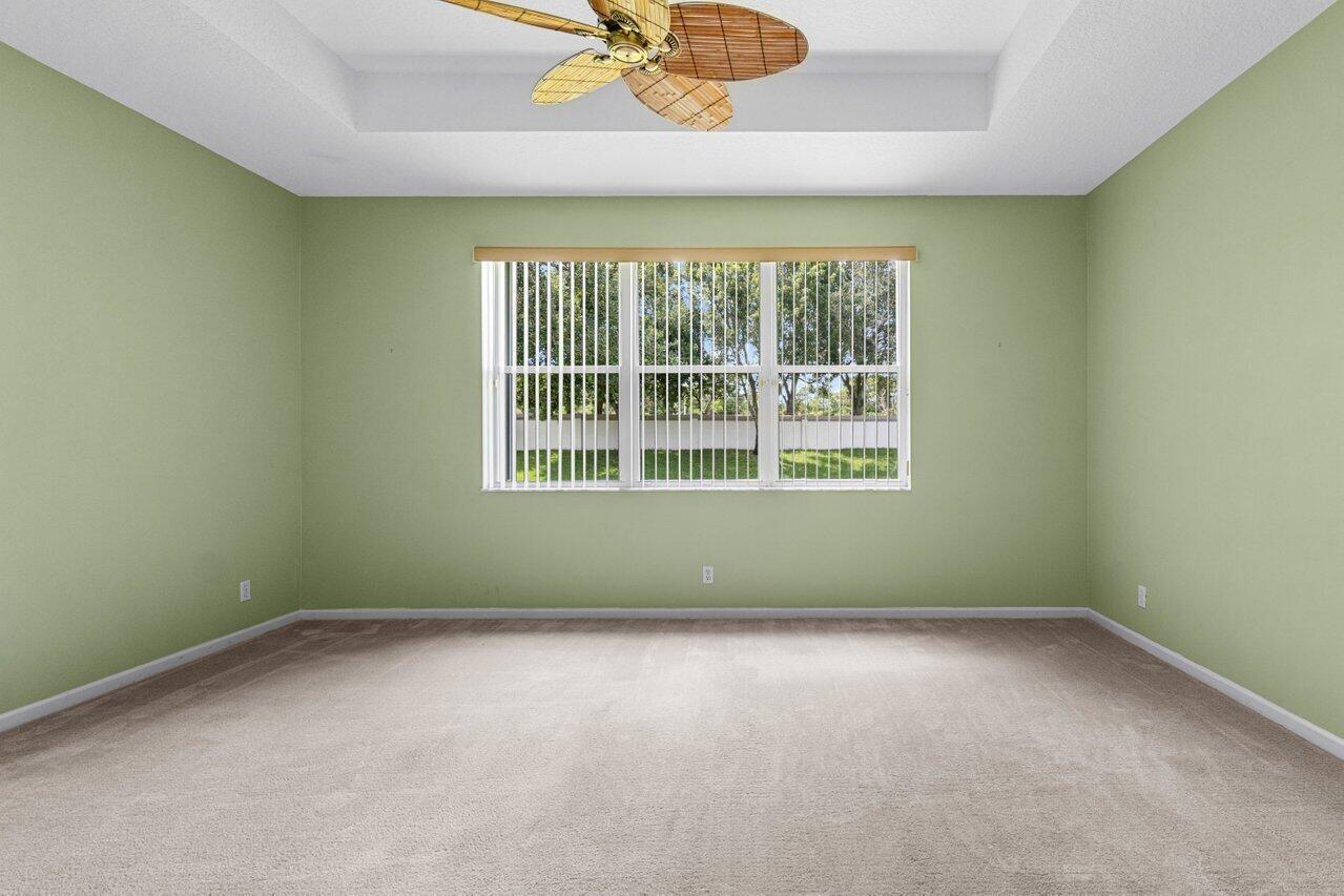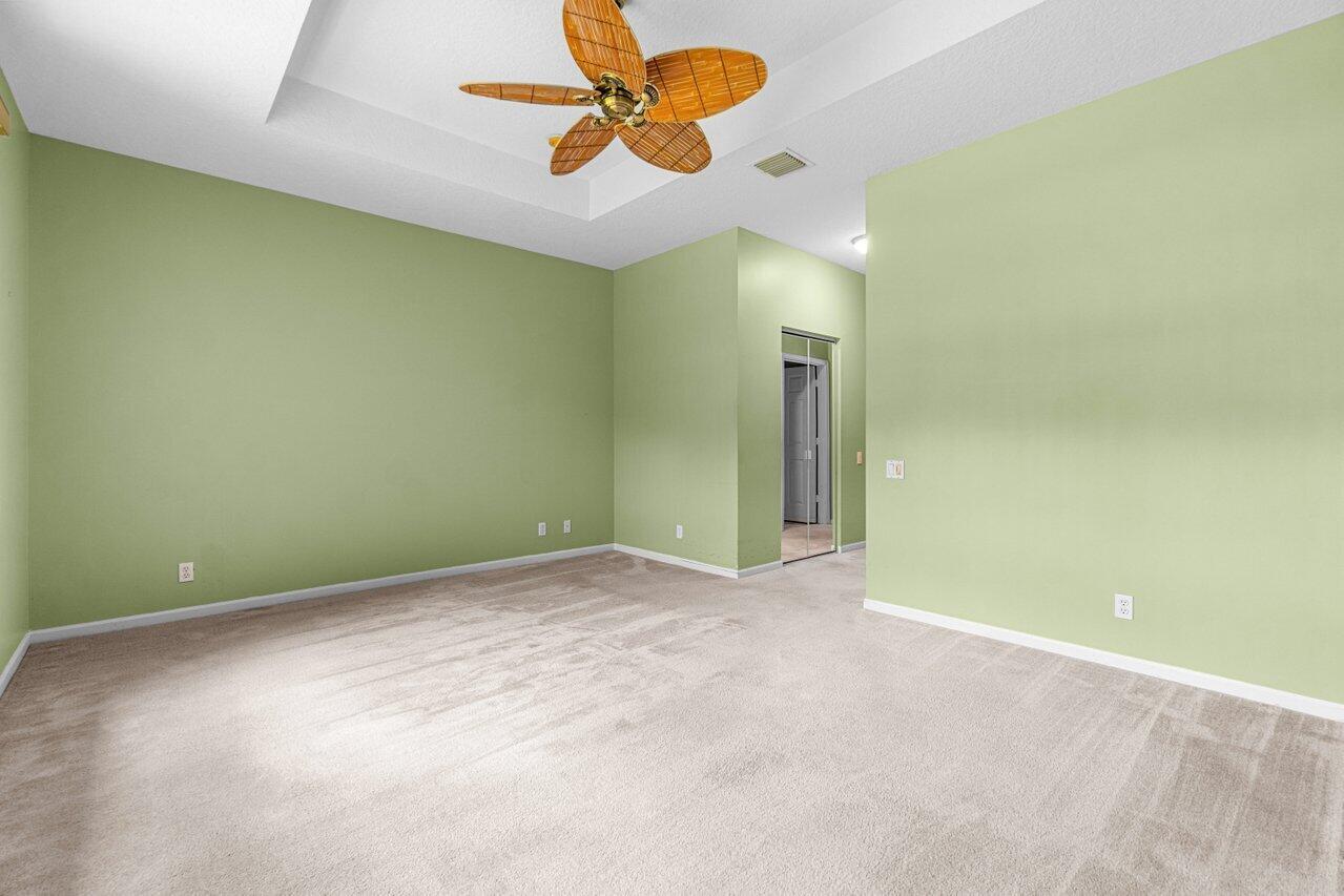 YOUR CHANCE FOR AN AMAZING DEAL NOW WITH THE LOWEST PRICED HOME IN ALL OF BELLAGGIO!! Priced $150,000 below anything else currently on the market in Bellaggio! Fabulous opportunity to make this sought-after Cesar floor plan yours at a fantastic price!! The possibilities are endless to personalize this home and make it your dream home. Located on a private lot with vast greenspace views and partial lake views, there are no rear neighbors! Open living space offers vaulted ceilings, neutral tile on the diagonal with shiny clean grout (9/24). Bedrooms are carpeted. Split bedrooms are great for privacy. The primary bedroom is spacious with tray ceiling, dual walk in closets, and master bath with roman tub, separate glass door shower and dual cultured marble vanities.