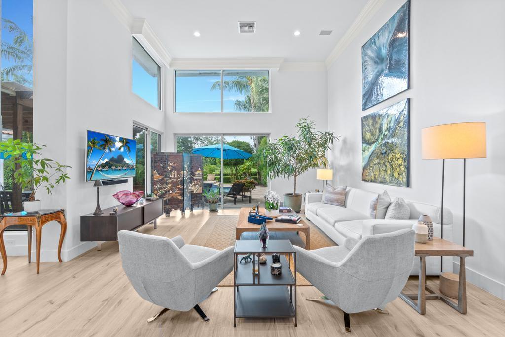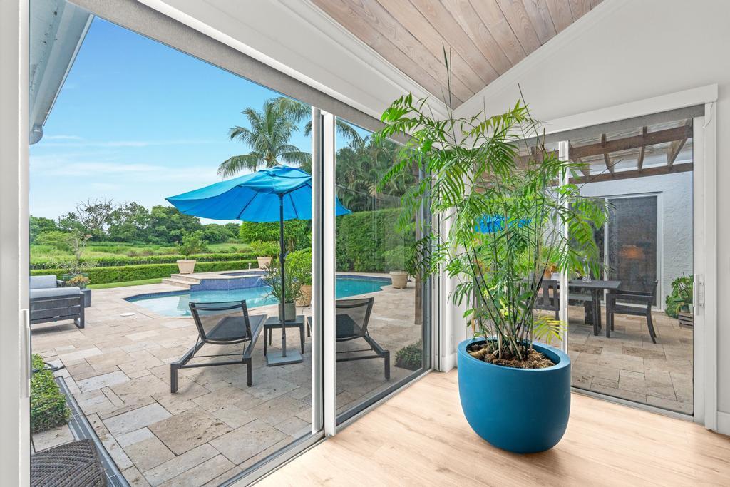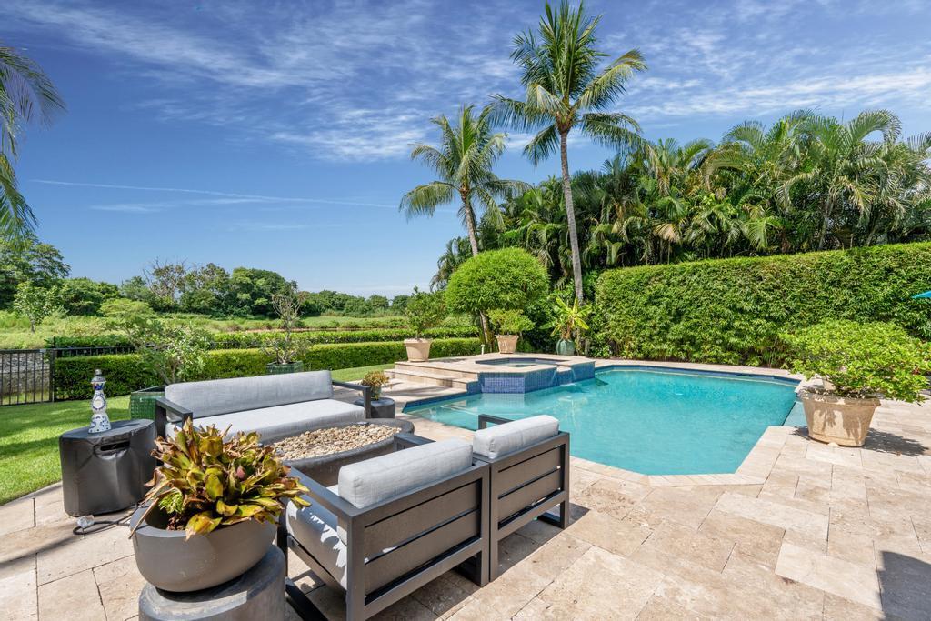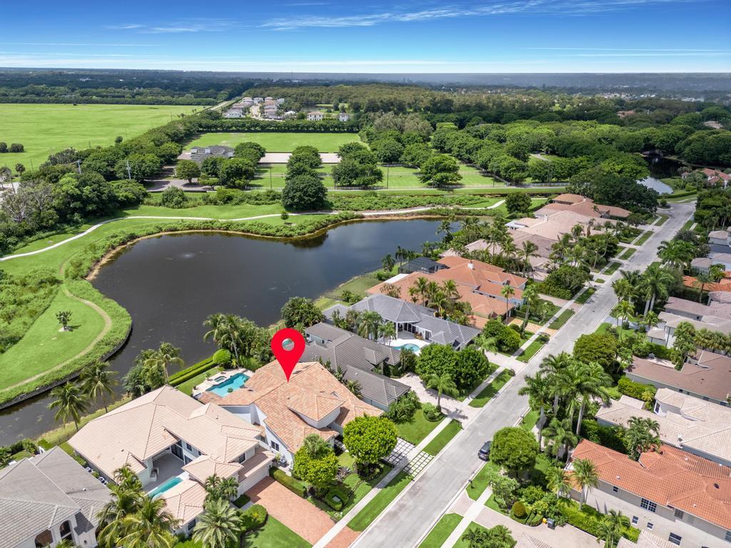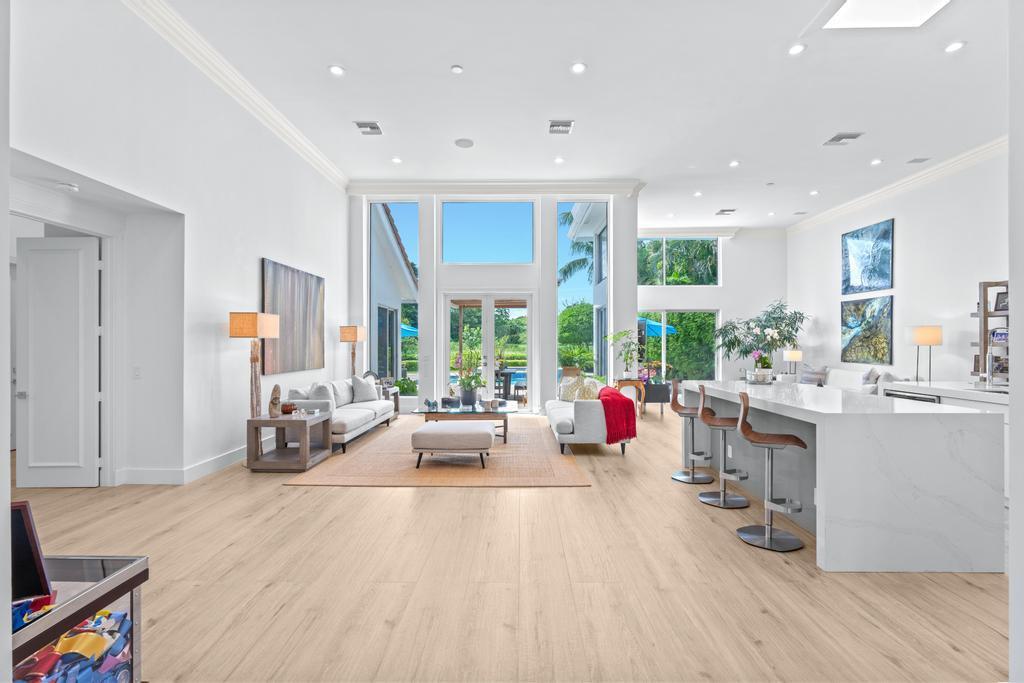Exquisite Luxury Home in Palm Beach Polo Club Located in the prestigious Palm Beach Polo Club, this meticulously remodeled 3-bedroom, 4.5-bathroom residence epitomizes luxury and sophistication. Offering stunning views of a serene lake, nature preserve, and lush greenery, it ensures ultimate privacy and tranquility.Step inside to discover high ceilings and a striking atrium with a water feature that bathes the home in natural light. Expansive windows throughout enhance the airy, open feel and provide picturesque views of the surrounding landscape. Upon entering, you’ll be greeted by a gorgeous view of the beautifully landscaped backyard and pool, creating a seamless connection between indoor and outdoor living. Modern elegance is showcased by porcelain tile with a wood plank look.