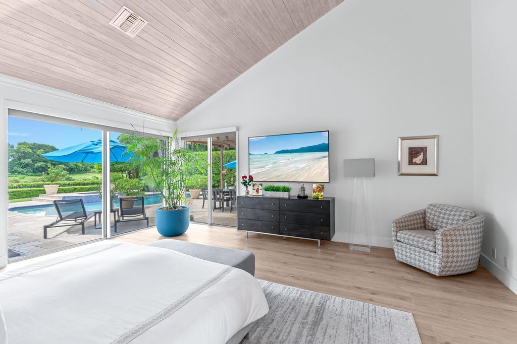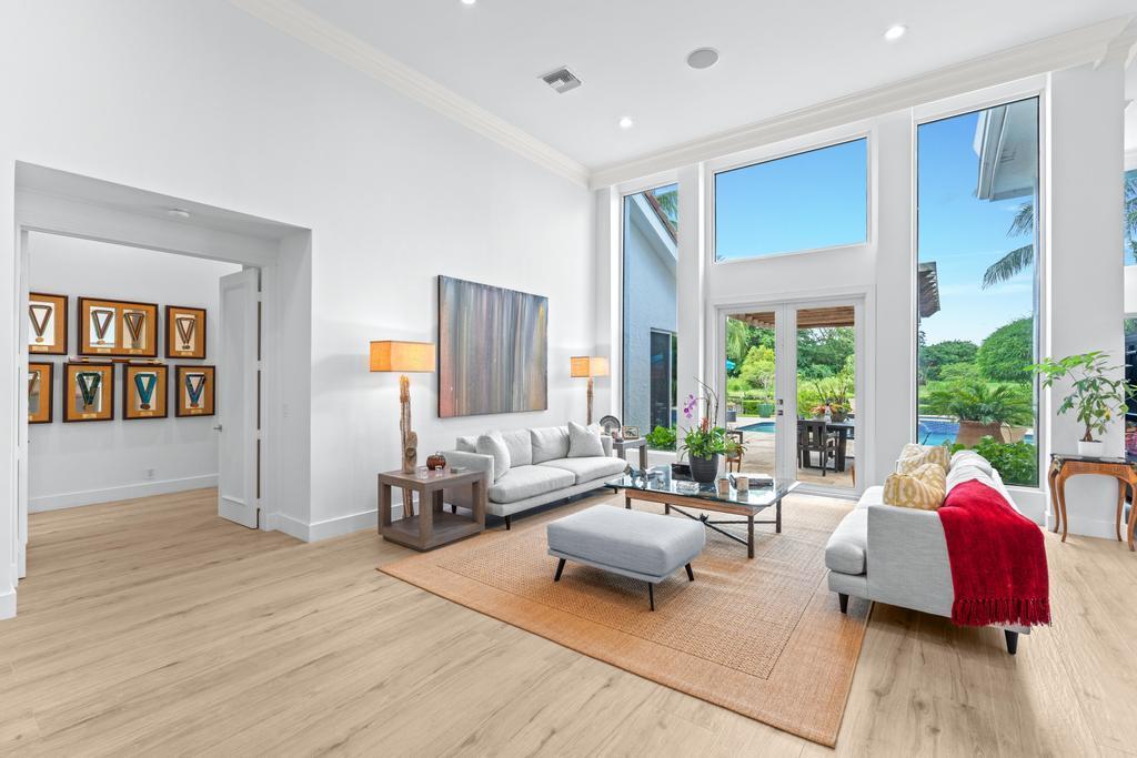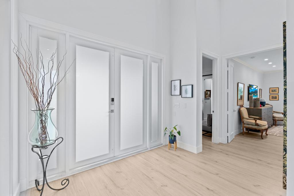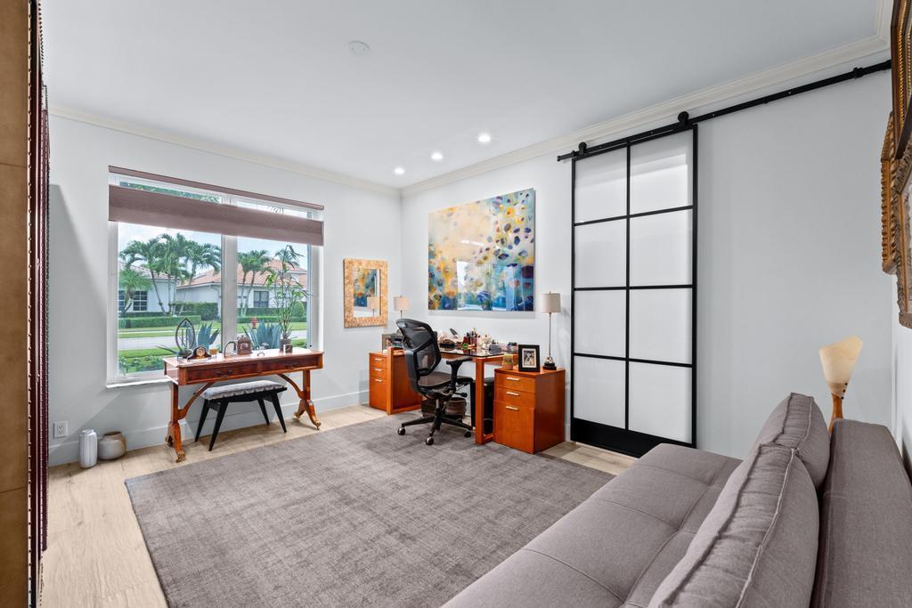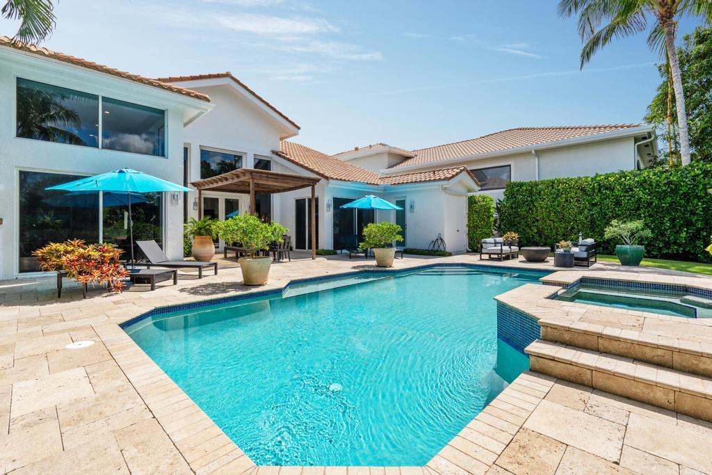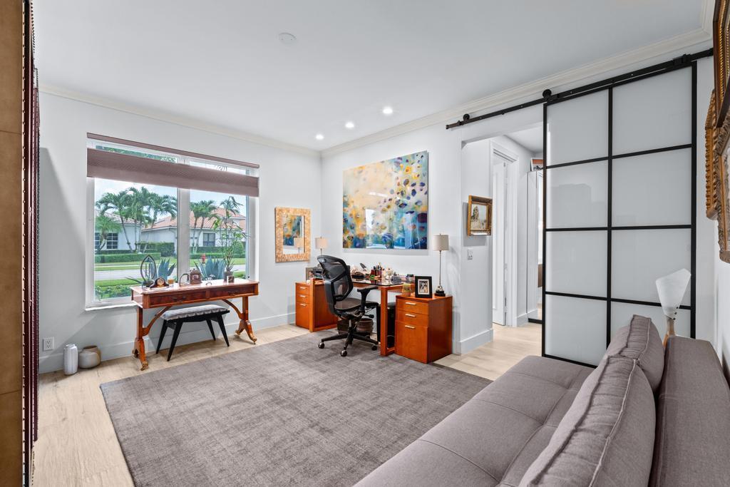 Exquisite Luxury Home in Palm Beach Polo Club Located in the prestigious Palm Beach Polo Club, this meticulously remodeled 3-bedroom, 4.5-bathroom residence epitomizes luxury and sophistication. Offering stunning views of a serene lake, nature preserve, and lush greenery, it ensures ultimate privacy and tranquility.Step inside to discover high ceilings and a striking atrium with a water feature that bathes the home in natural light. Expansive windows throughout enhance the airy, open feel and provide picturesque views of the surrounding landscape. Upon entering, you’ll be greeted by a gorgeous view of the beautifully landscaped backyard and pool, creating a seamless connection between indoor and outdoor living. Modern elegance is showcased by porcelain tile with a wood plank look.