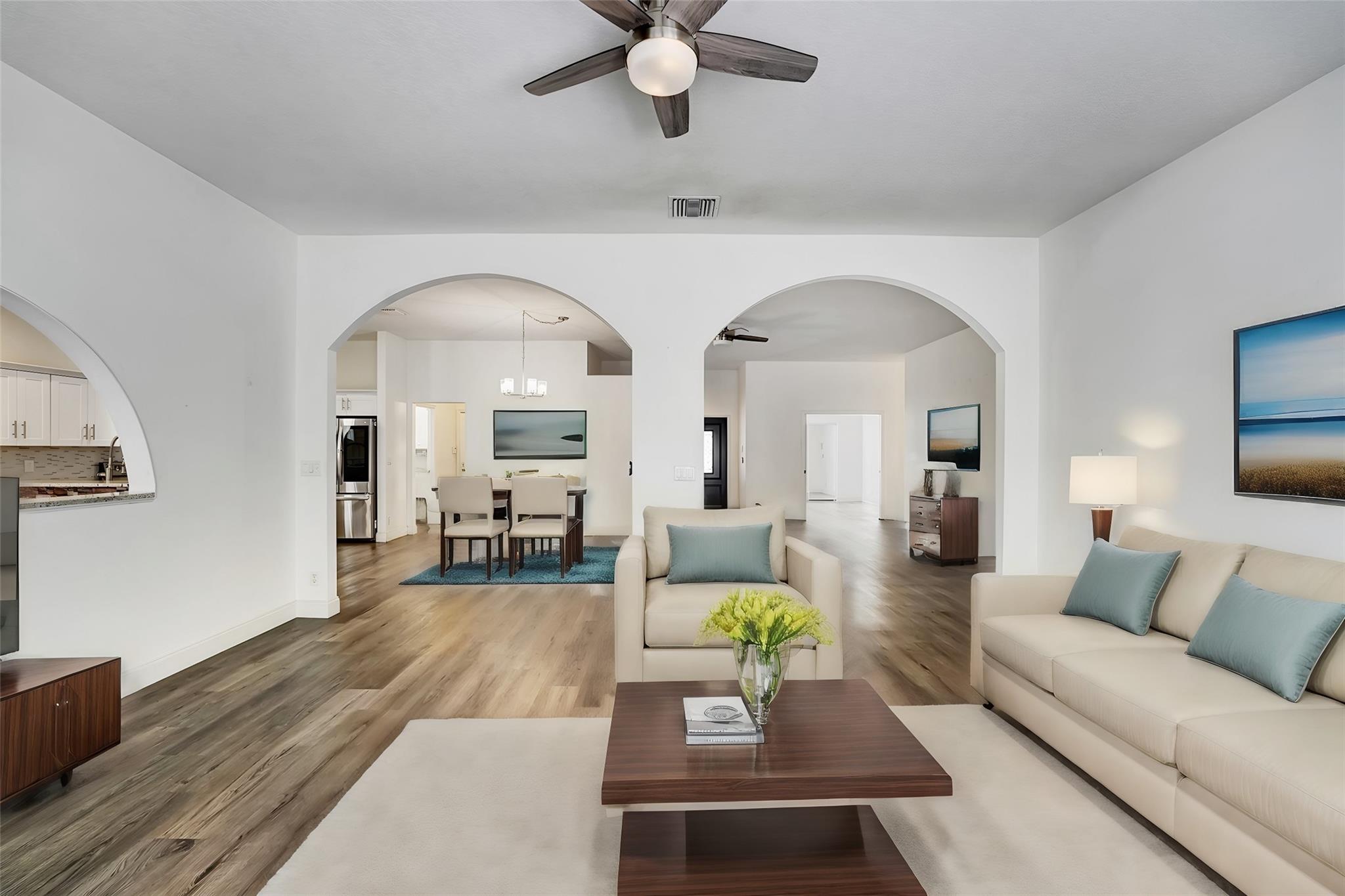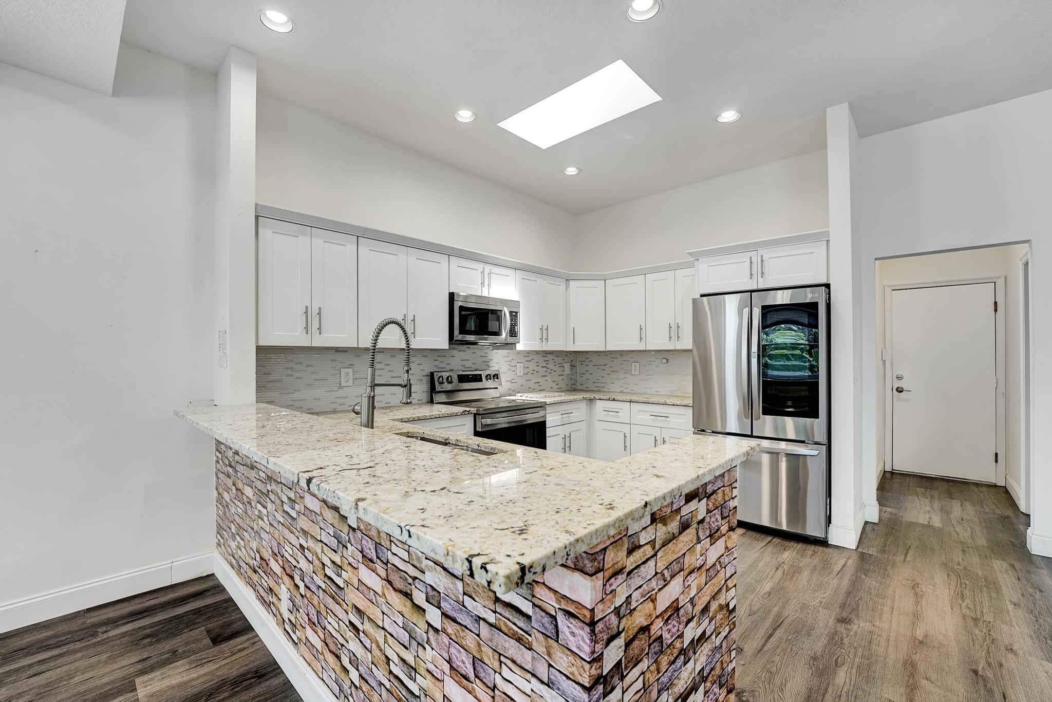 Welcome to this nicely renovated 3-bedroom, 2.5-bath home in the highly desirable Summer Chase community! This spacious home blends modern style with security, featuring a recently renovated (2021) open-concept kitchen, newer roof (2019), A/C (2019), hurricane impact doors and garage, 2022 gutters, and accordion shutters throughout and new flooring. The primary bath offers a touch of luxury with a never-used stand-up tub. The backyard is a peaceful retreat with fruit trees, perfect for enjoying fresh produce. Enjoy the community’s fantastic amenities, including a clubhouse with activities, a pool/spa, Fitness, bocce, shuffleboard, and tennis/pickleball courts. With its open layout and numerous upgrades, this home is move-in ready and full of potential! This home has been virtually staged.