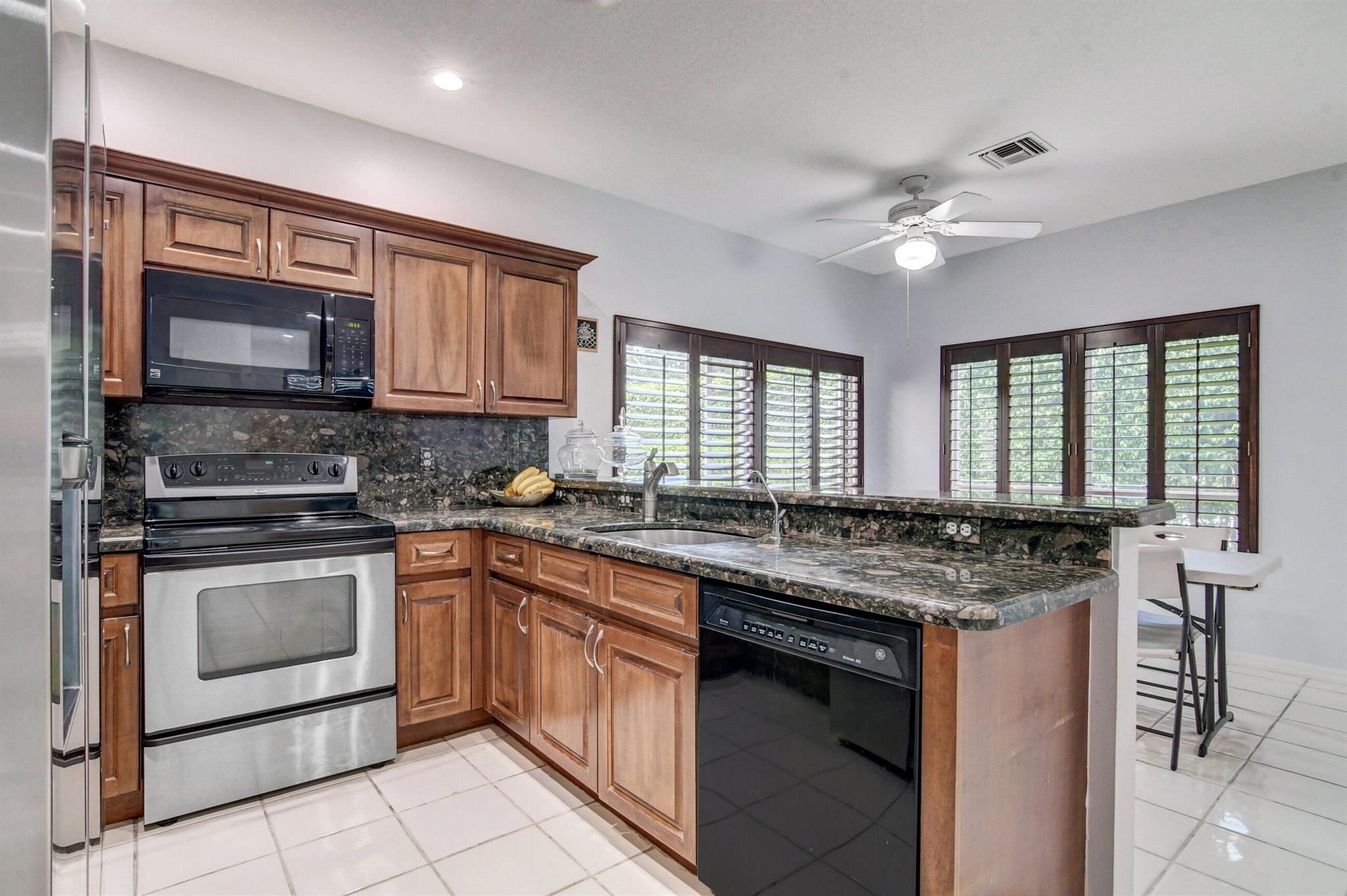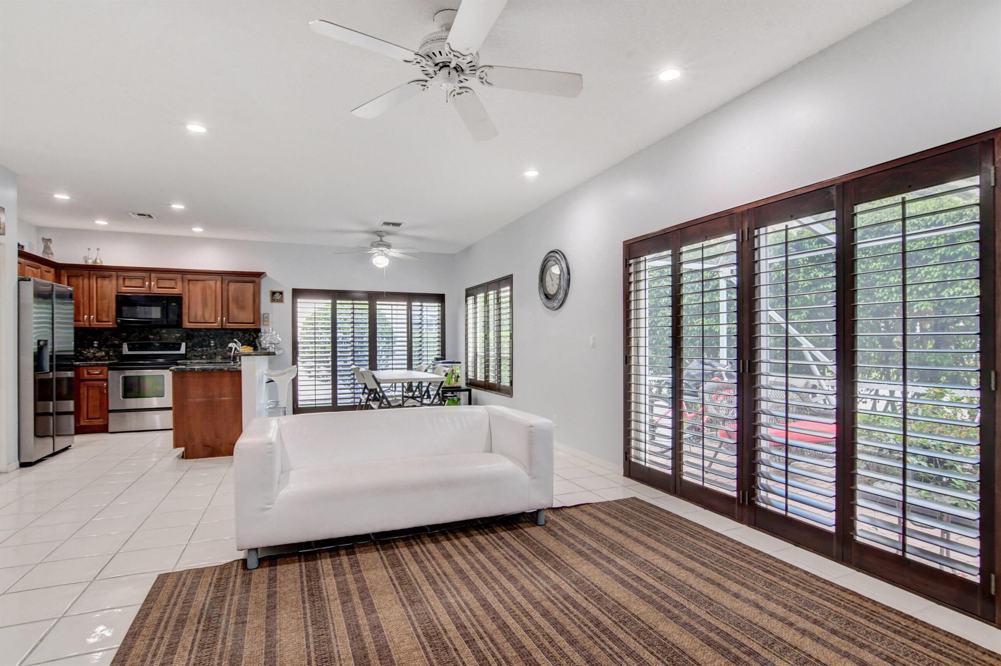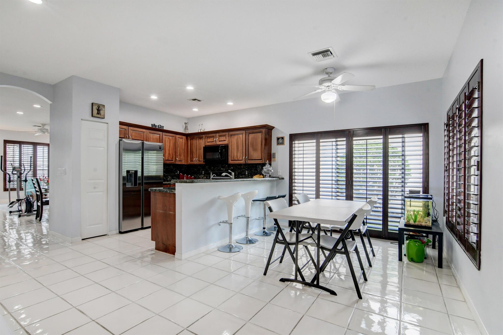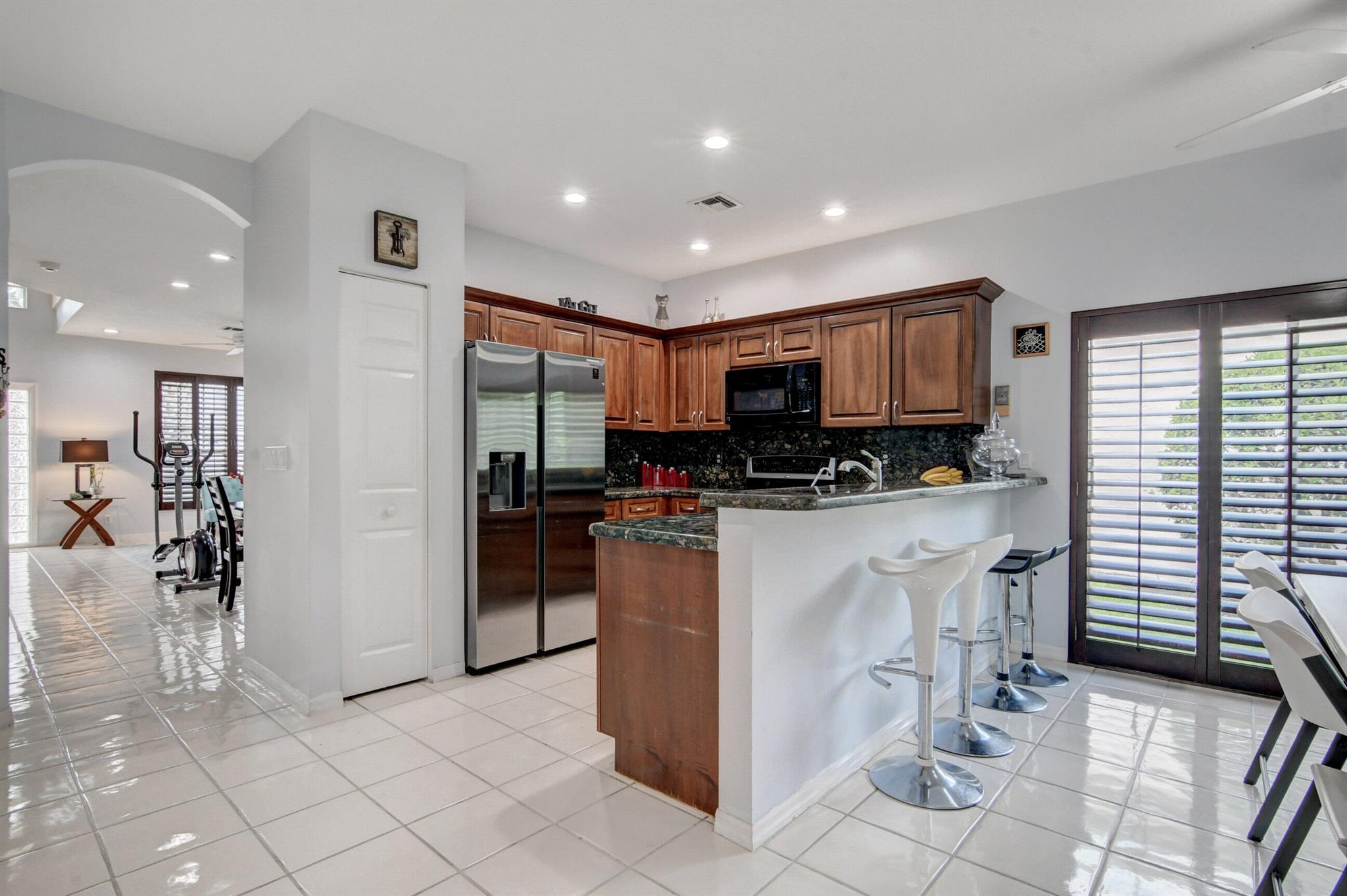 Experience unparalleled elegance at 7415 Panache Way, located in the upscale gated community of Panache at Boca Pointe, in Boca Raton, FL. The breathtaking ambiance embarks with the soaring entry hall that gently transitions into an expansive space accentuated by vaulted ceilings, brilliantly polished tile flooring, and stylishly updated fixtures and finishes that exude a modern charm.The major highlight is the tastefully upgraded open-concept kitchen. It boasts of custom cabinetry that presents ample storage space, and the sparkling granite countertops provide an ample preparatory area for all your culinary delights.