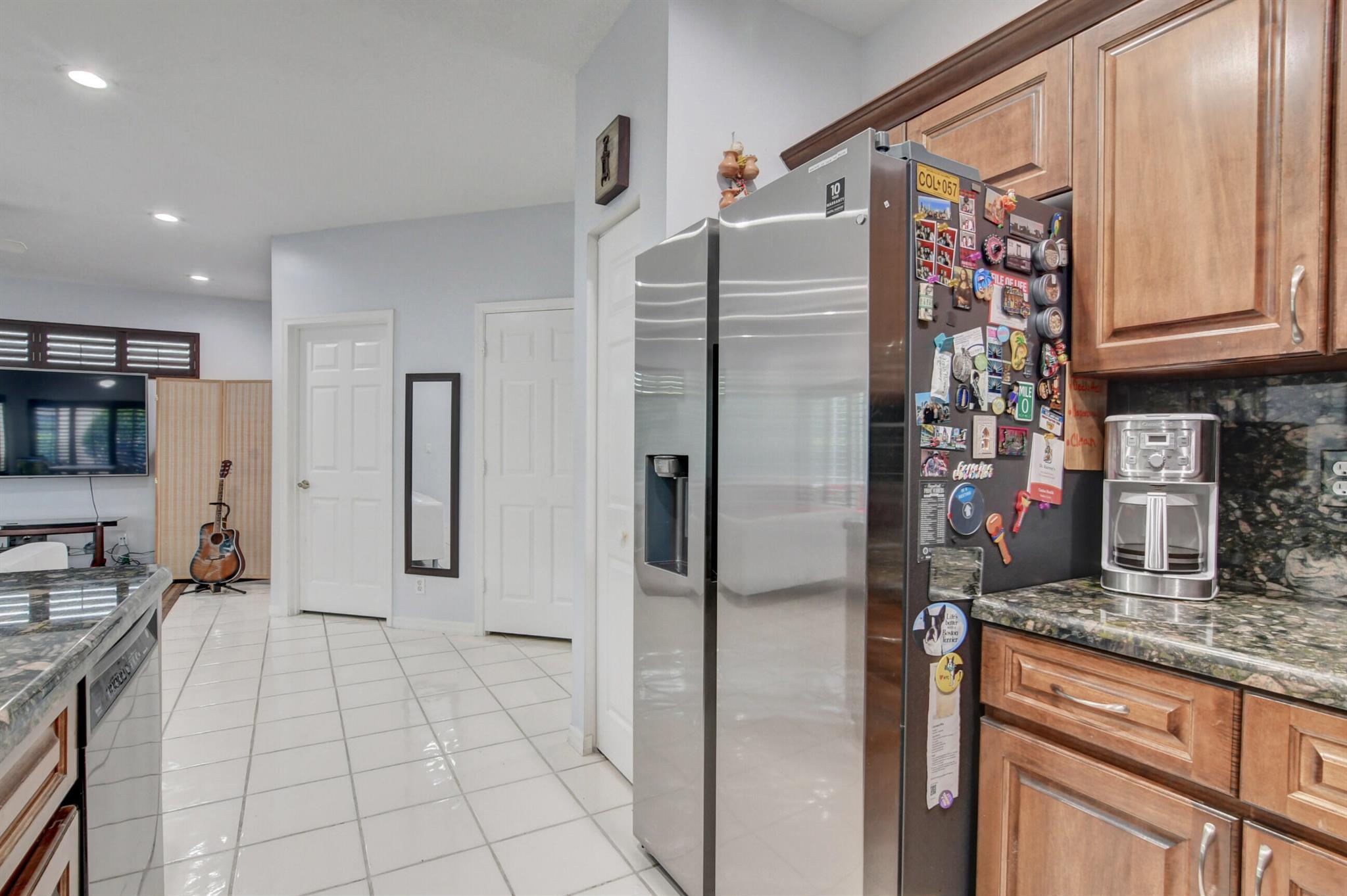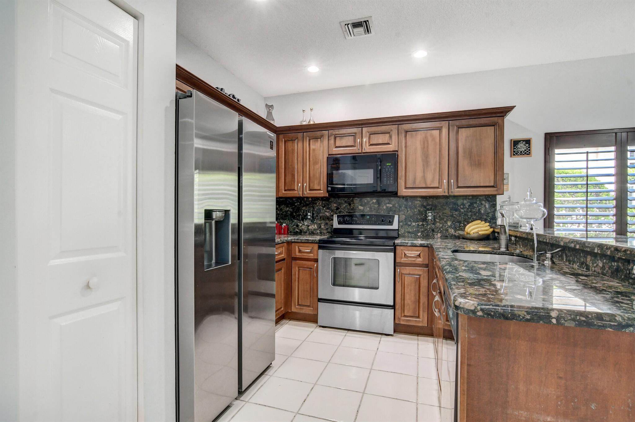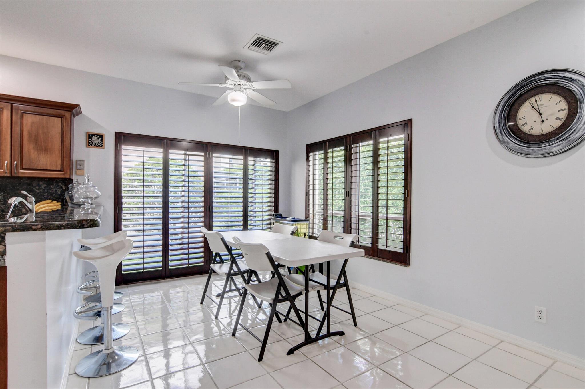 Experience unparalleled elegance at 7415 Panache Way, located in the upscale gated community of Panache at Boca Pointe, in Boca Raton, FL. The breathtaking ambiance embarks with the soaring entry hall that gently transitions into an expansive space accentuated by vaulted ceilings, brilliantly polished tile flooring, and stylishly updated fixtures and finishes that exude a modern charm.The major highlight is the tastefully upgraded open-concept kitchen. It boasts of custom cabinetry that presents ample storage space, and the sparkling granite countertops provide an ample preparatory area for all your culinary delights.