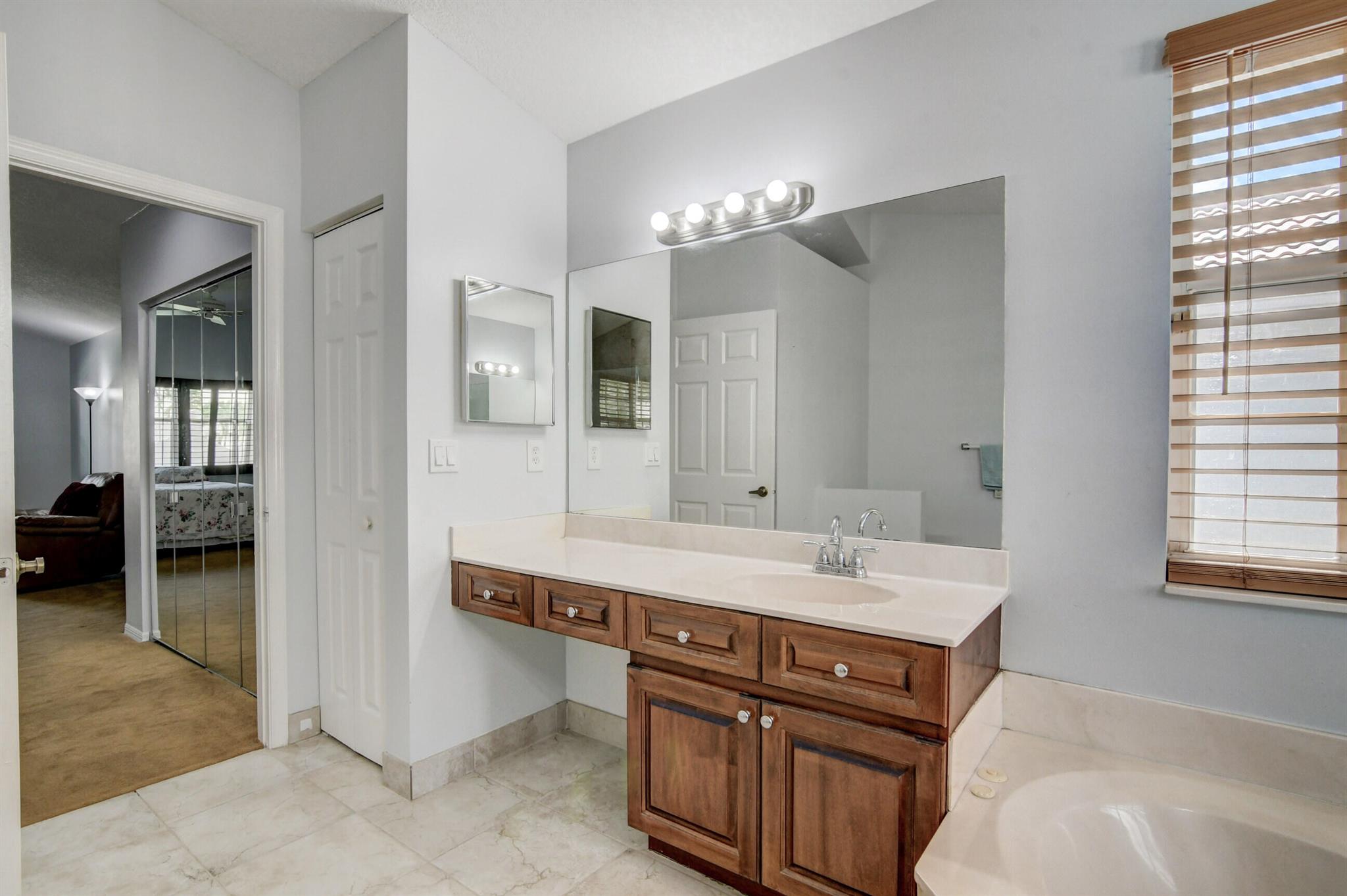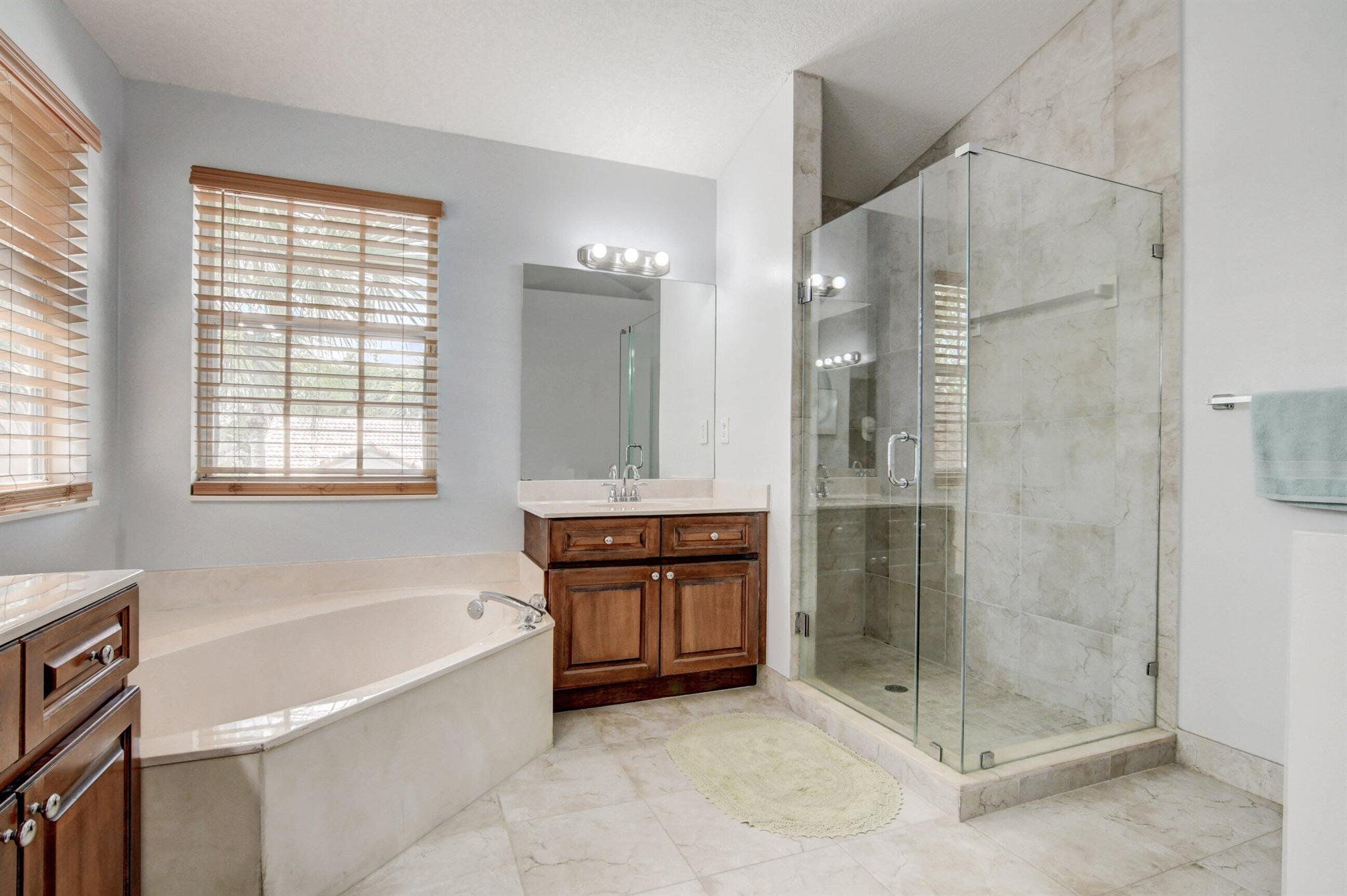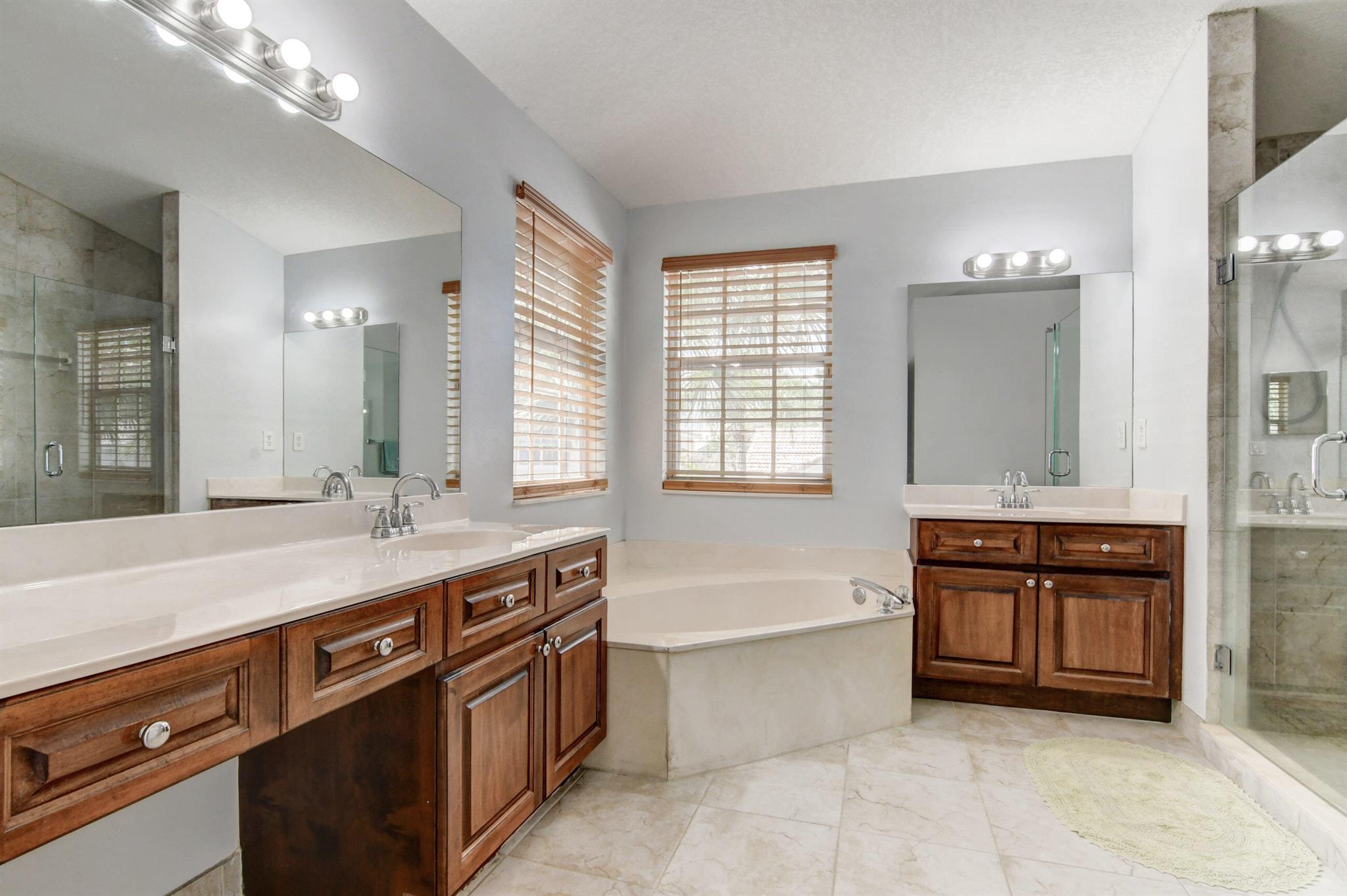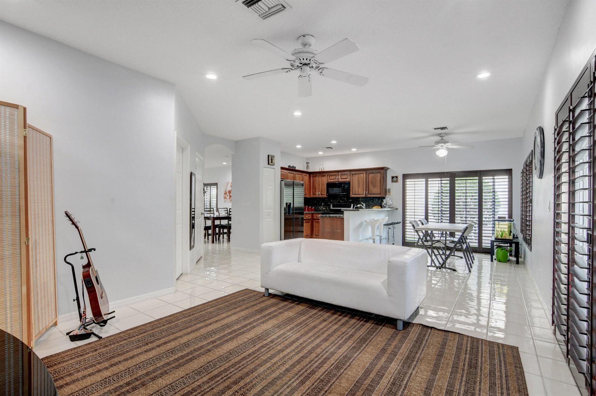 Experience unparalleled elegance at 7415 Panache Way, located in the upscale gated community of Panache at Boca Pointe, in Boca Raton, FL. The breathtaking ambiance embarks with the soaring entry hall that gently transitions into an expansive space accentuated by vaulted ceilings, brilliantly polished tile flooring, and stylishly updated fixtures and finishes that exude a modern charm.The major highlight is the tastefully upgraded open-concept kitchen. It boasts of custom cabinetry that presents ample storage space, and the sparkling granite countertops provide an ample preparatory area for all your culinary delights.