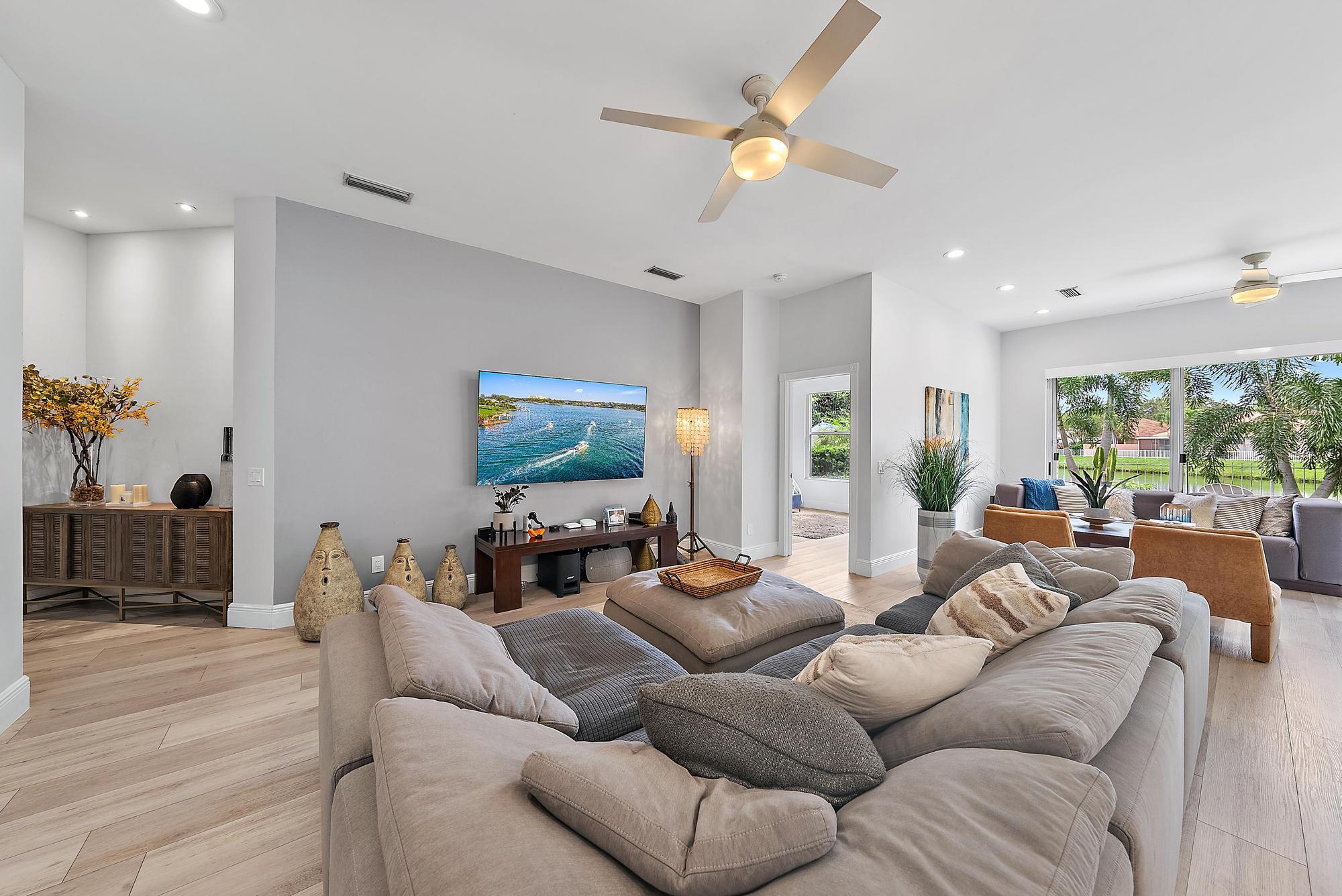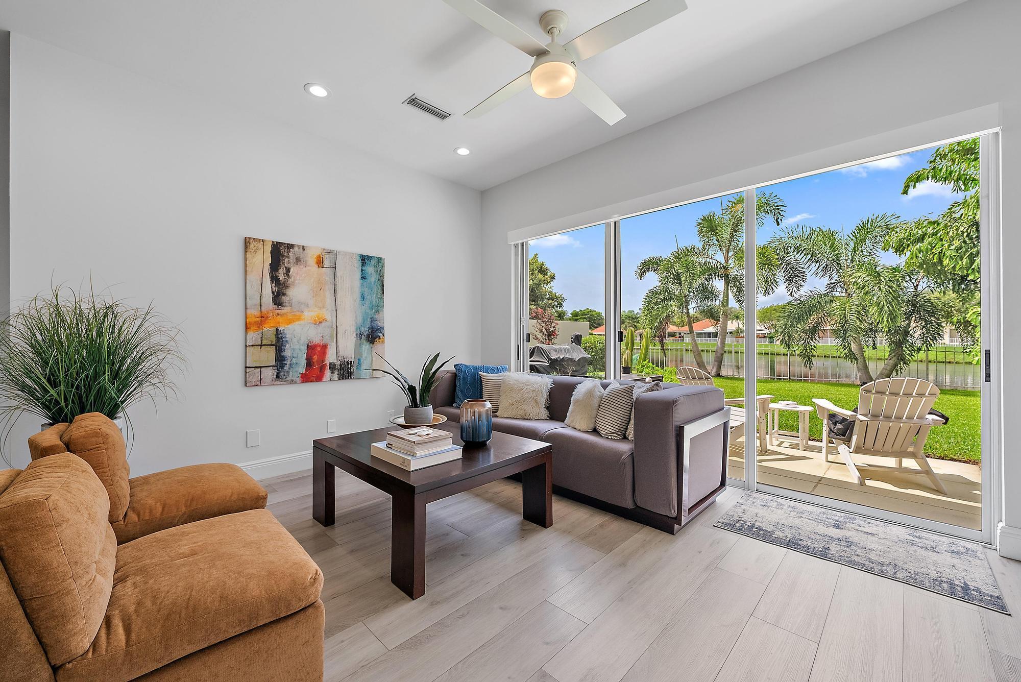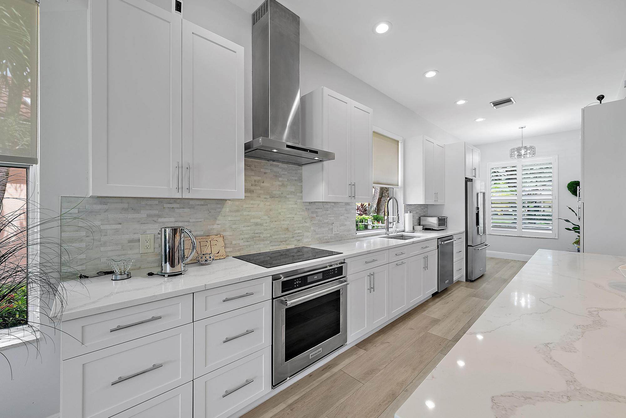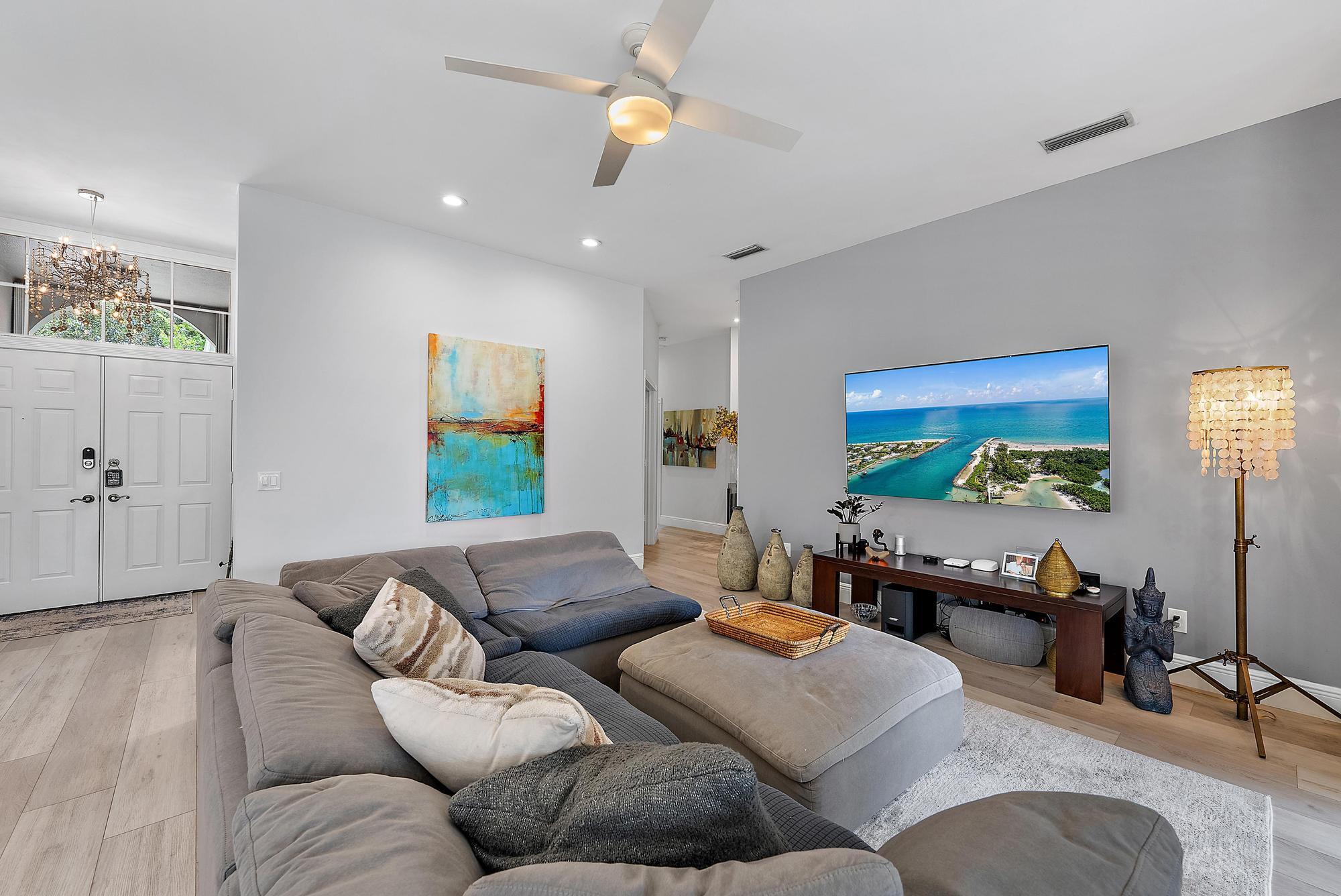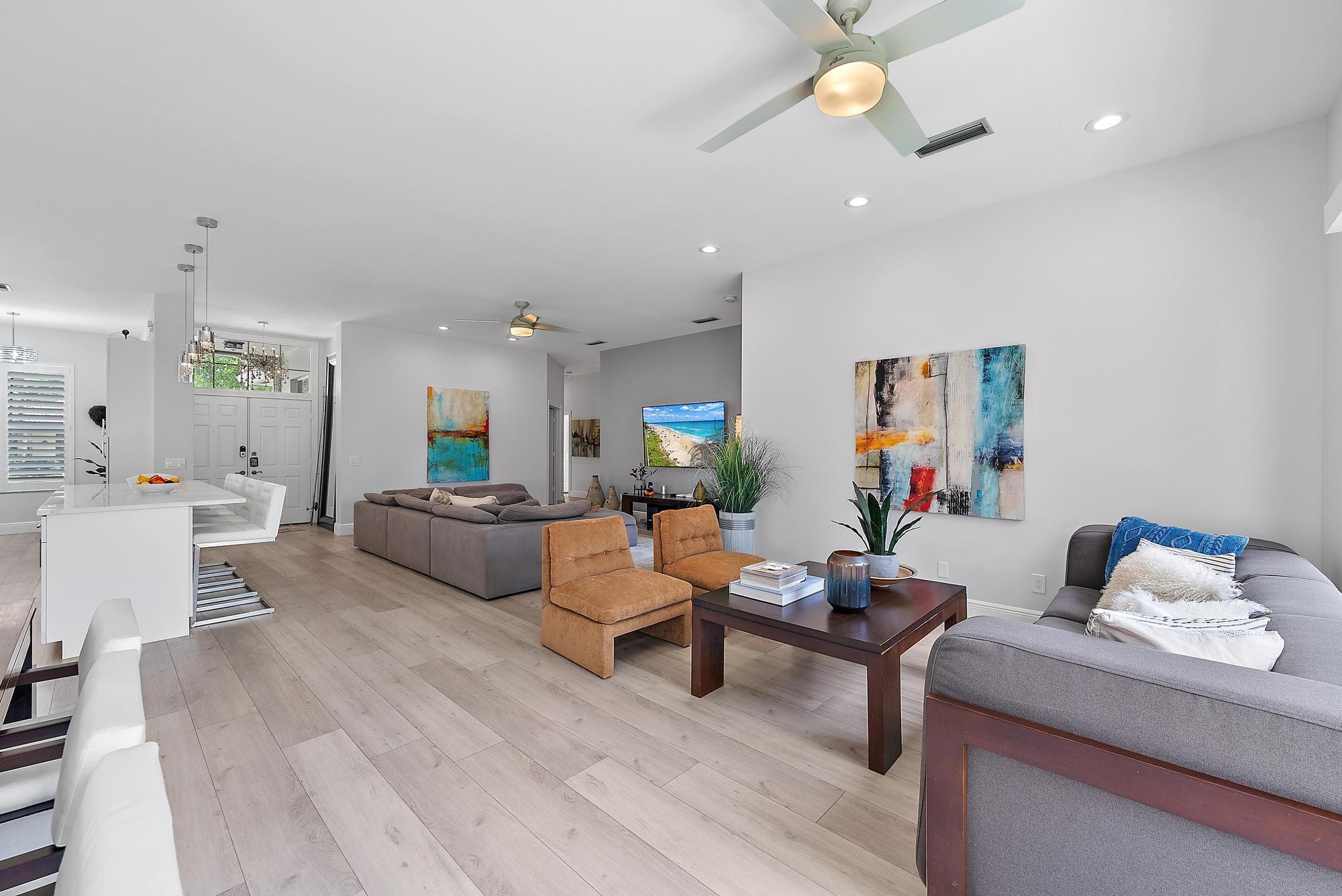 Nestled in the heart of Jupiter, this exquisite Divosta home is perfectly positioned on a beautiful lakefront lot. This expansive home offers 3 spacious bedrooms and 2 luxurious bathrooms, all within 1,975 square feet of thoughtfully designed living space. Upon entering, the bright and open layout greets you with modern vinyl flooring throughout and tile in the bathrooms. The home has been thoughtfully updated to feature smooth ceilings, providing a sleek, modern look, while plumbing and electrical systems have also been upgraded for added convenience.The open-concept kitchen is perfect for both everyday living and entertaining. It seamlessly connects to the family, living, and dining areas, creating a harmonious flow.