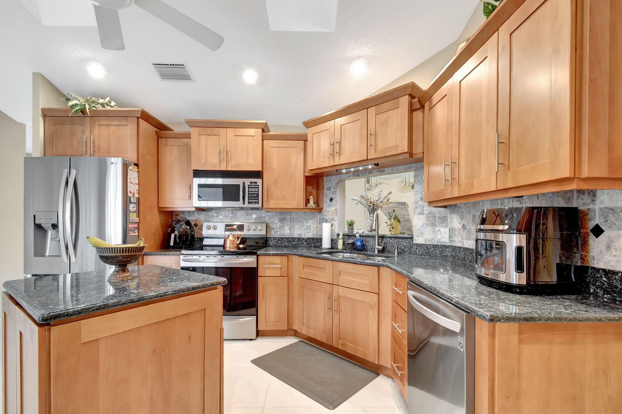 Beautiful home in a charming 55+ community! This beautiful 2-bedroom, 2-bath + Den offers a perfect blend of comfort and convenience. Enjoy spacious living areas, updated kitchen with stainless steel appliances and custom backsplash. Vaulted ceilings and tile throughout. With a low HOA, you can indulge in maintenance-free lifestyle and make the most of the community’s amenities. Complete Accordian shutters. Don’t miss out on this perfect place to call home! Key Features: -A/C 2023 / W/H-2024 / Roof 2013 with a 3M film that offers an additional 9 yrs of life/ Solar Panels / Newer Appliances – Low HOA fees – Friendly 55+ Community – Modern amenities