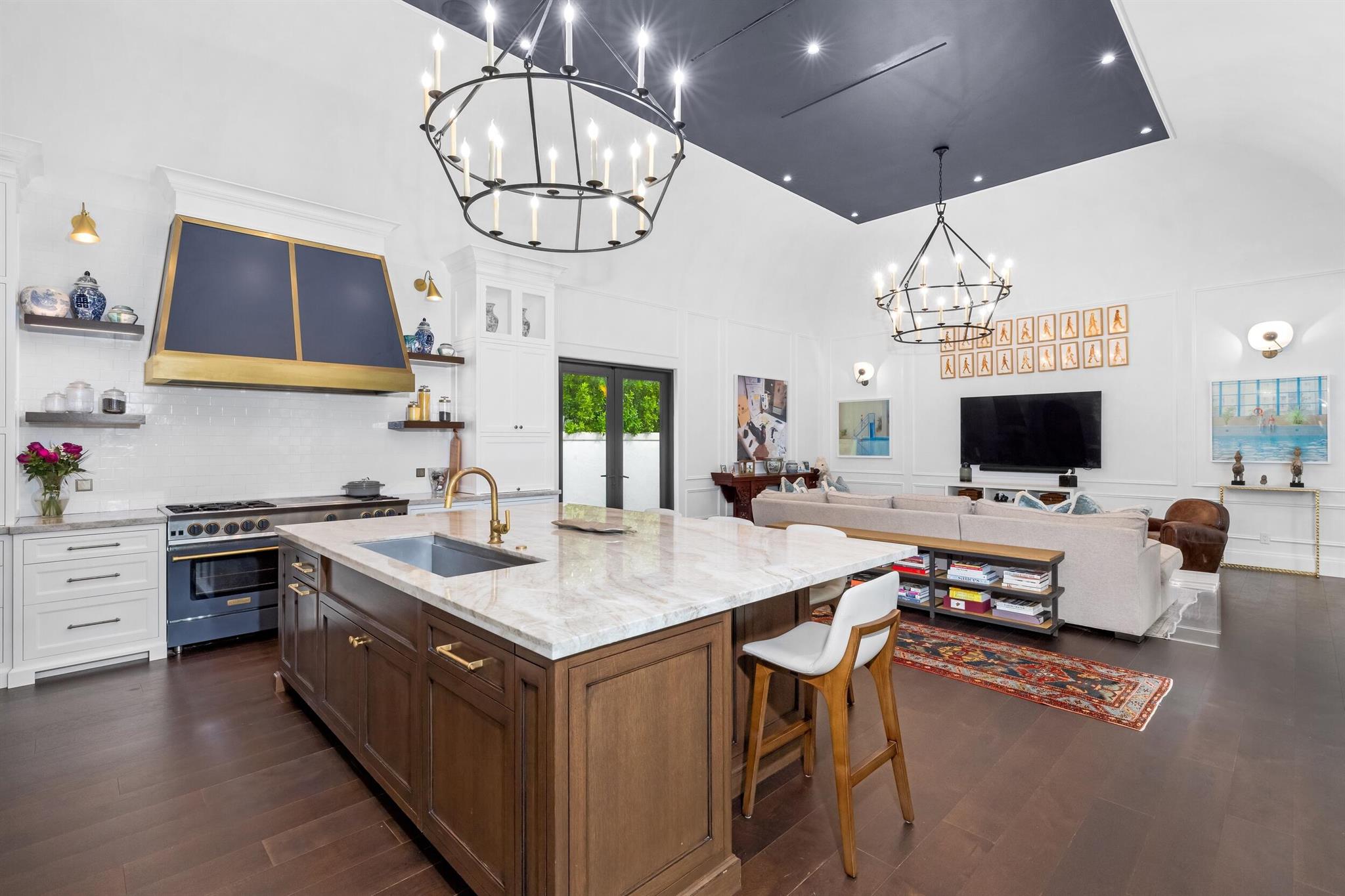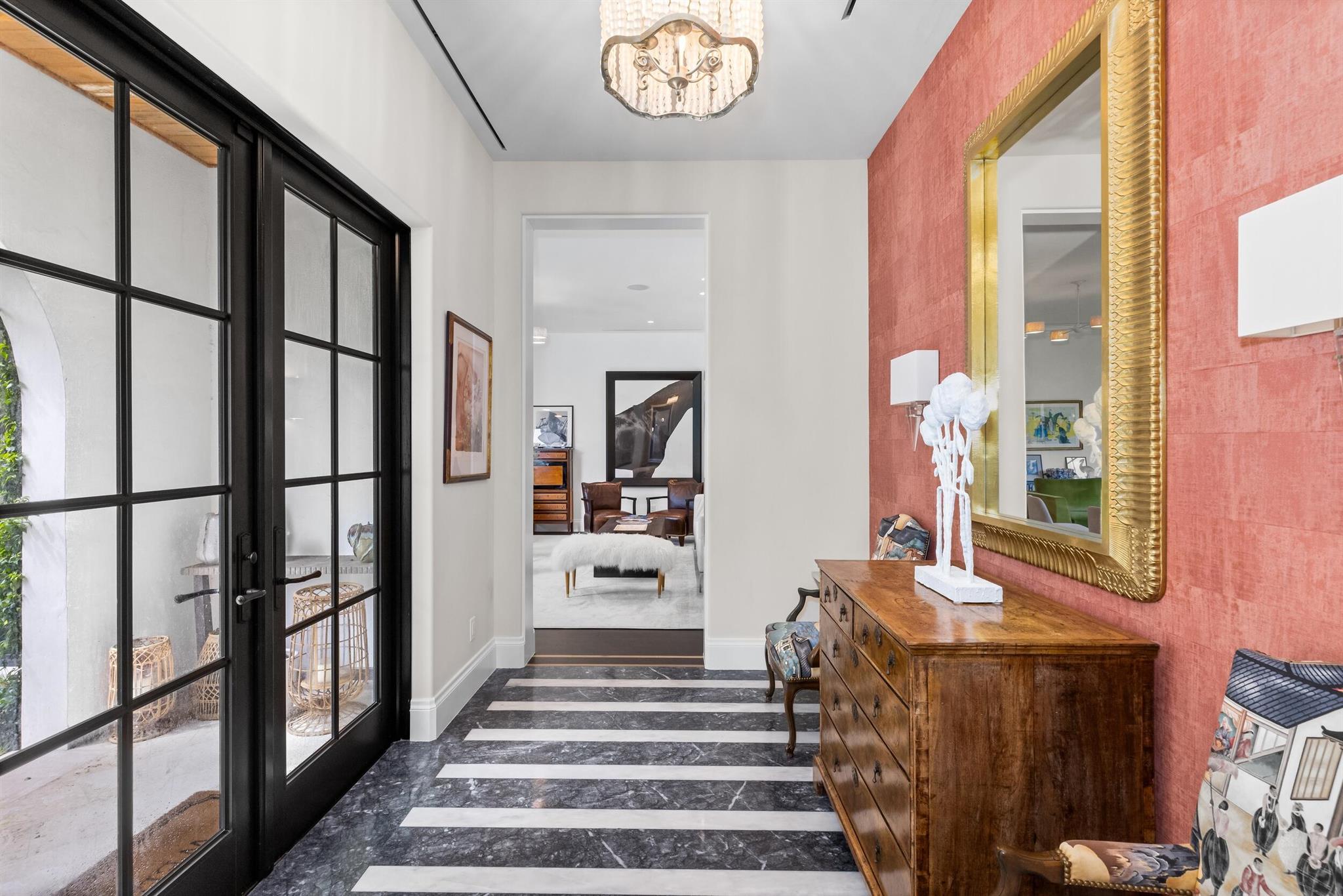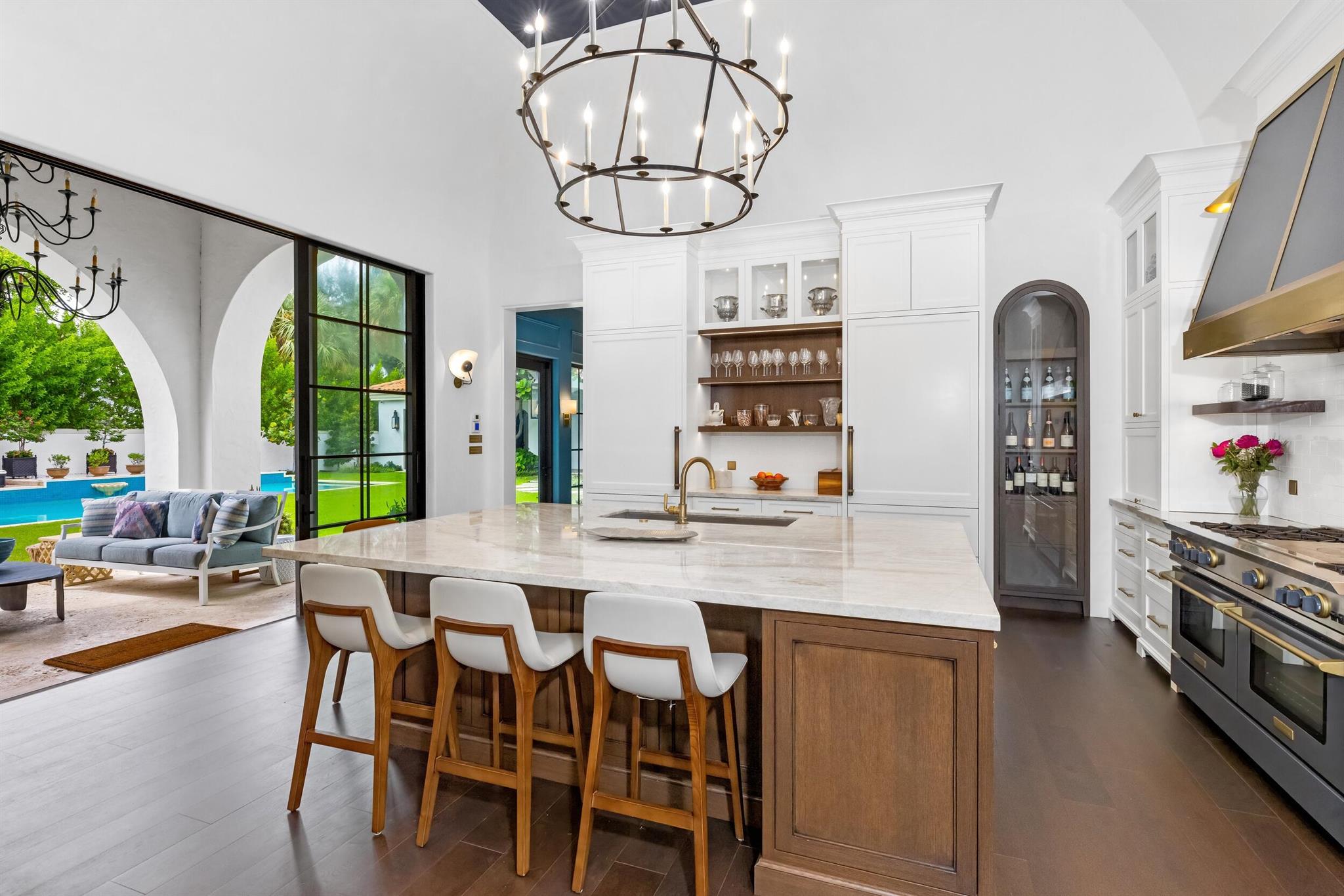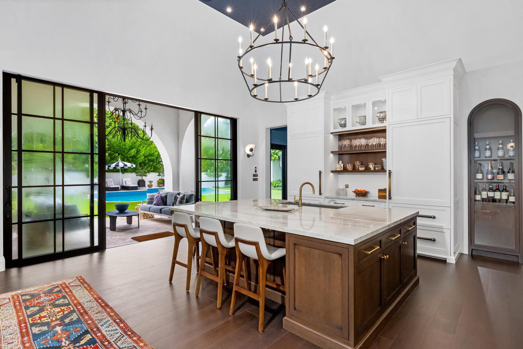 Beautifully reimagined 6BR/7.1BA estate situated on the South Side of Wells Road. Stunning renovation completed in 2024. The front entry opens to the breathtaking and serene courtyard with beautiful landscaping, covered dining loggia, and swimming pool. Soaring 15′ ceilings in most rooms. Charming stone path leads to the welcoming entry foyer with marble slab flooring. Formal dining room with built in buffet and China cabinets and gorgeous herringbone wood floors. Gourmet kitchen with top-of-the-line appliances including Blue Star 60” range with French top, dual Miele dishwashers, and Sub Zero refrigerator, freezer, and refrigerator drawers. Leeds cabinets, custom hardware, and temperature-controlled wine display.