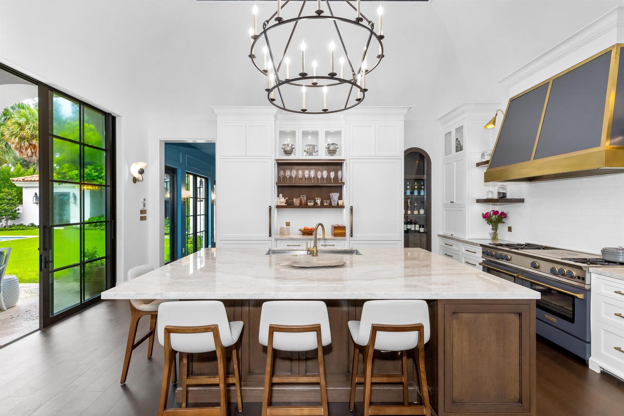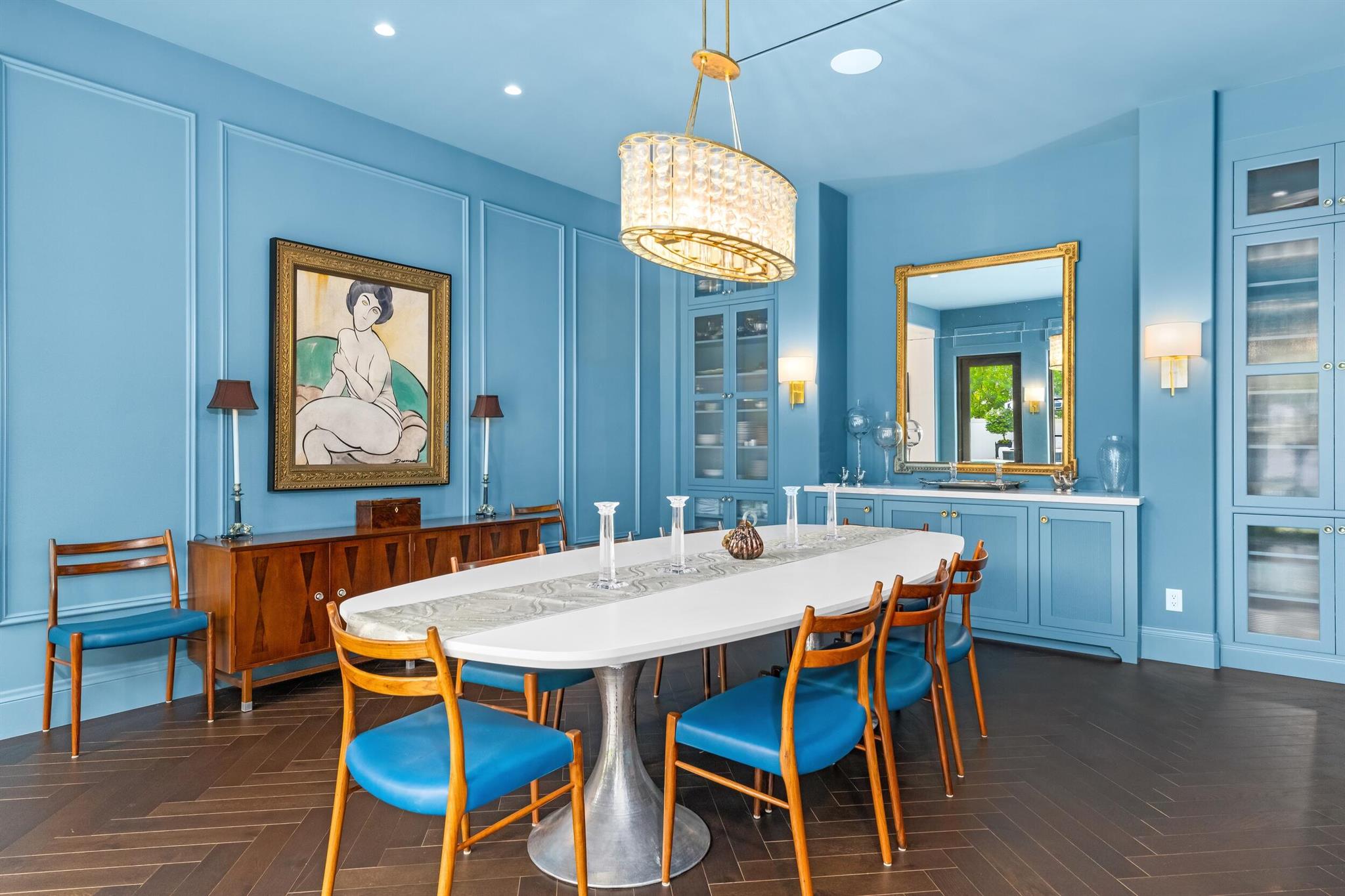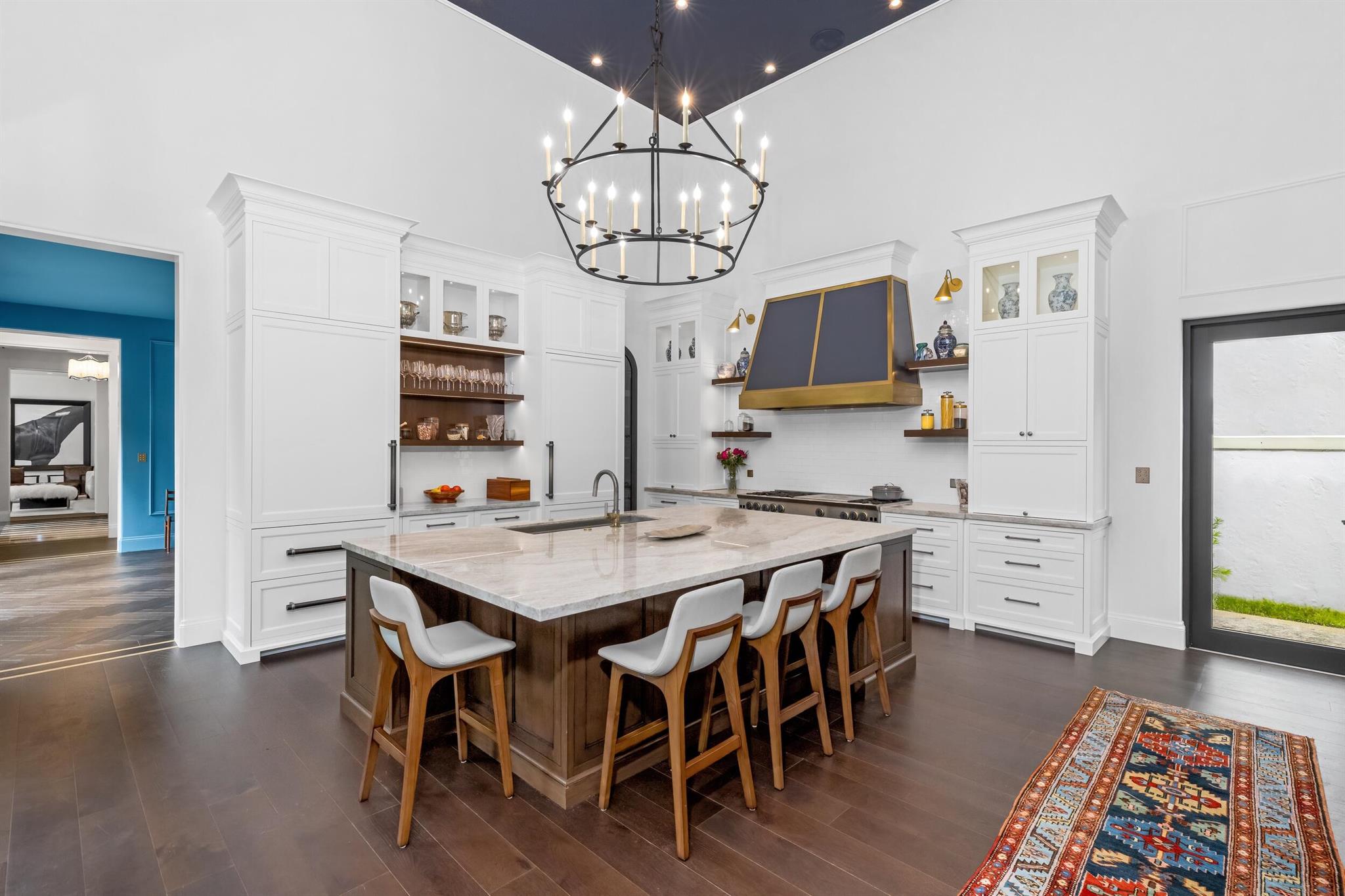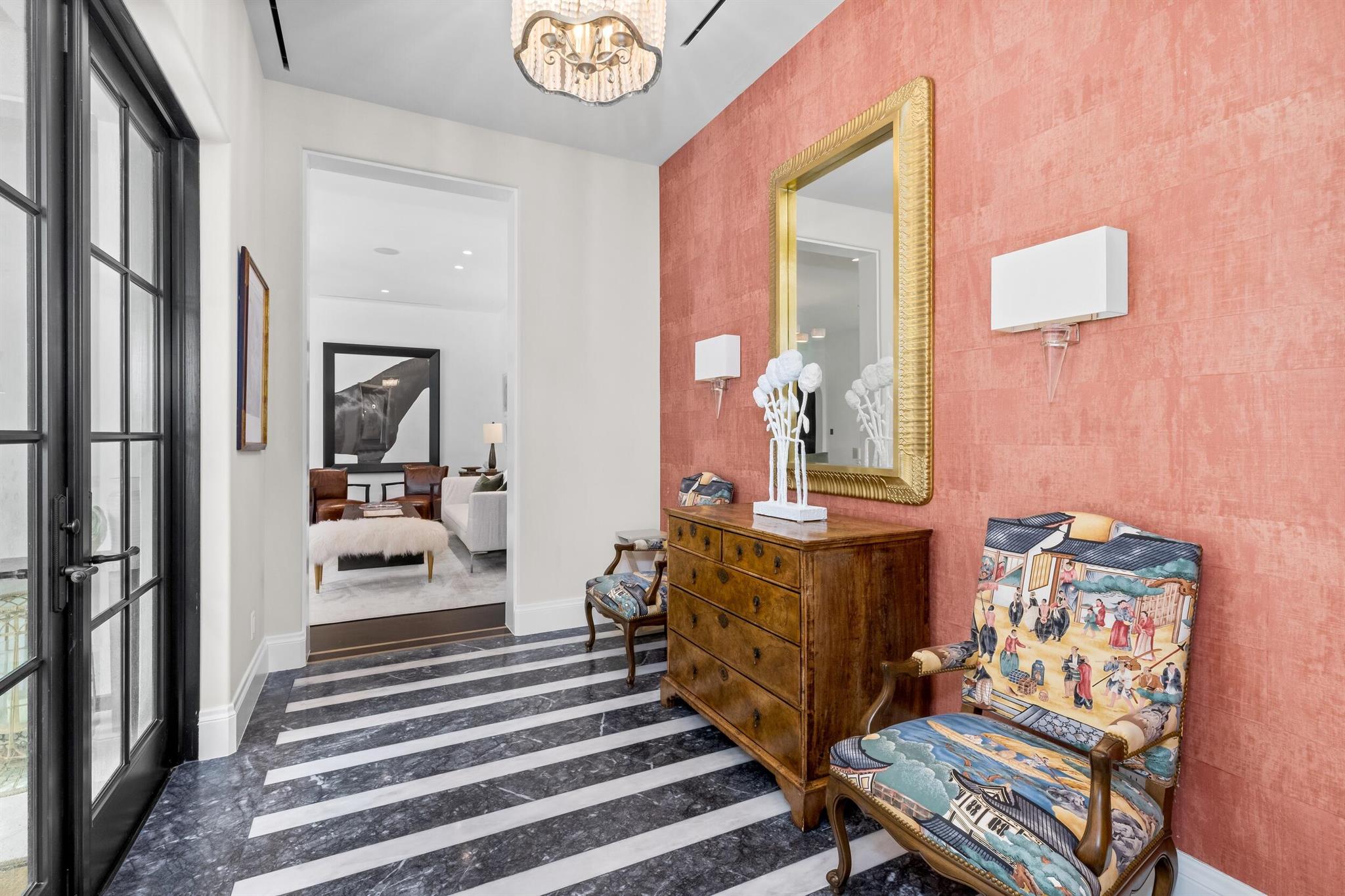 Beautifully reimagined 6BR/7.1BA estate situated on the South Side of Wells Road. Stunning renovation completed in 2024. The front entry opens to the breathtaking and serene courtyard with beautiful landscaping, covered dining loggia, and swimming pool. Soaring 15′ ceilings in most rooms. Charming stone path leads to the welcoming entry foyer with marble slab flooring. Formal dining room with built in buffet and China cabinets and gorgeous herringbone wood floors. Gourmet kitchen with top-of-the-line appliances including Blue Star 60” range with French top, dual Miele dishwashers, and Sub Zero refrigerator, freezer, and refrigerator drawers. Leeds cabinets, custom hardware, and temperature-controlled wine display.