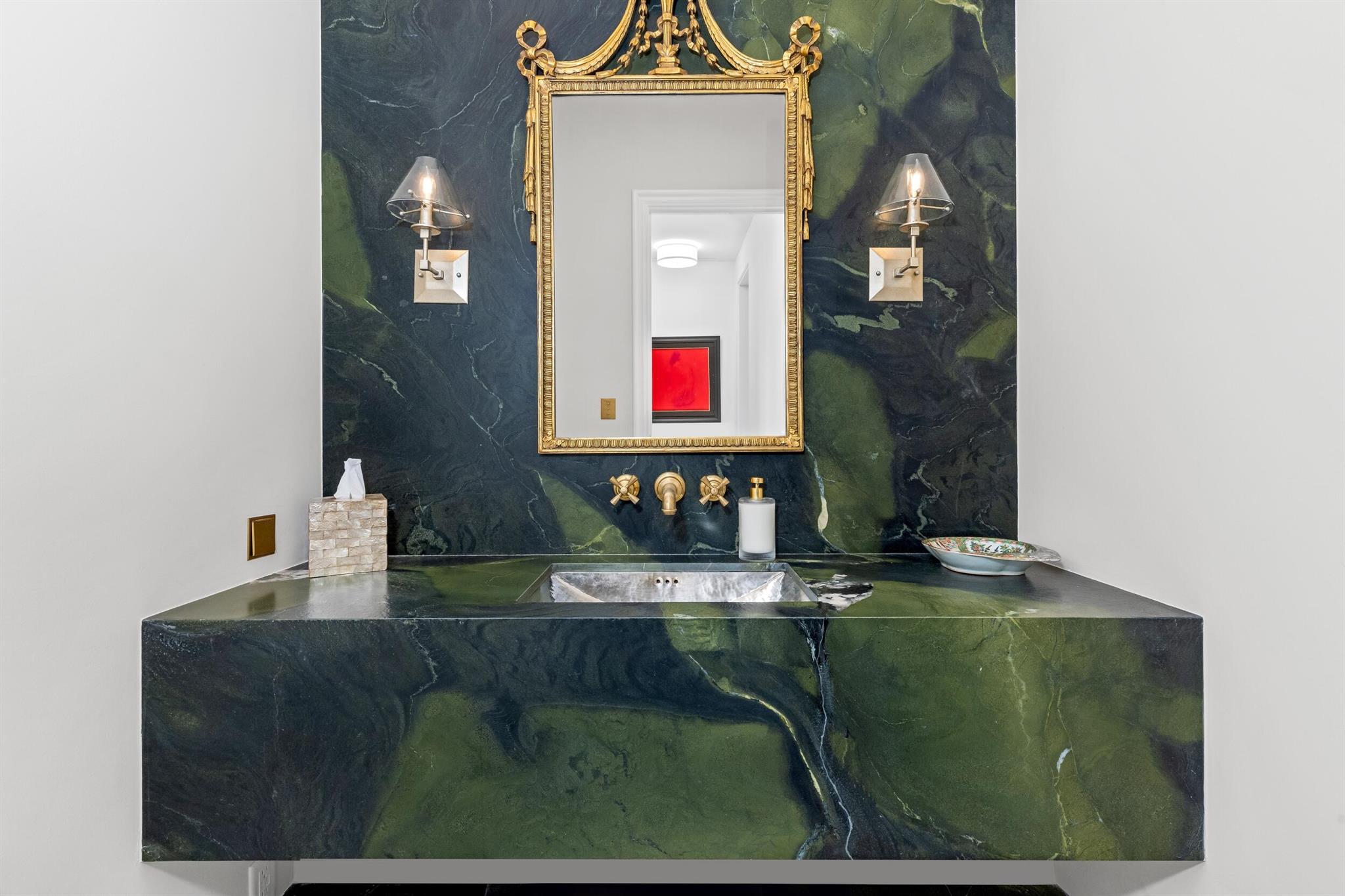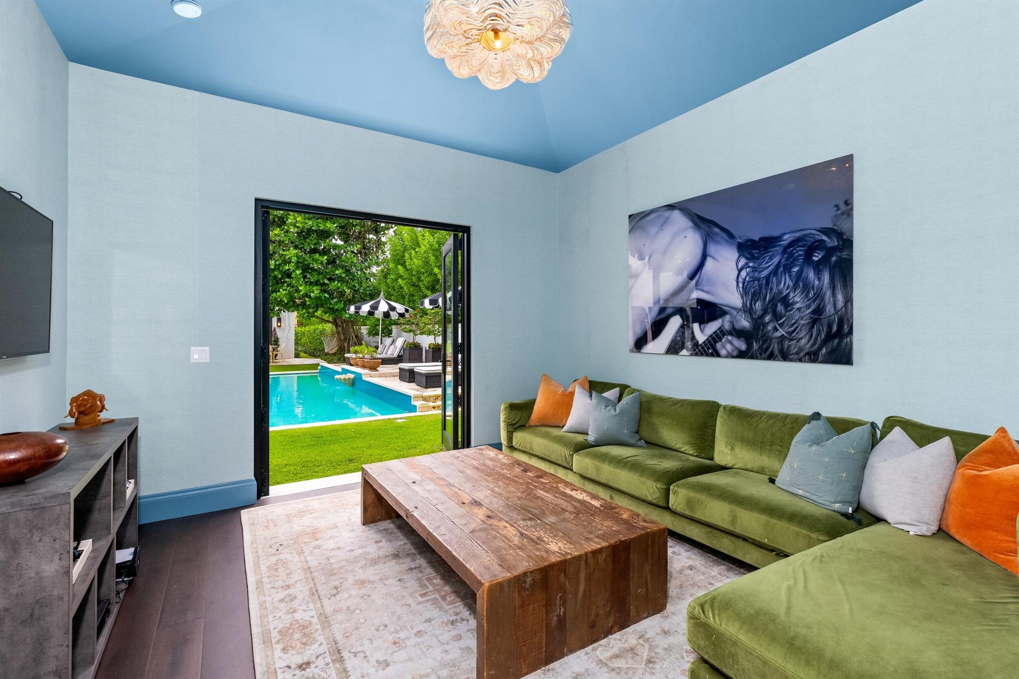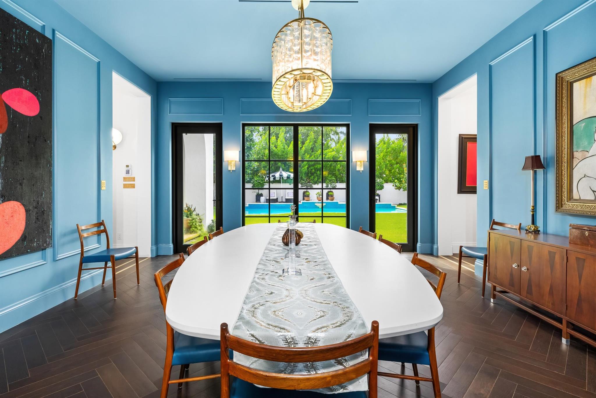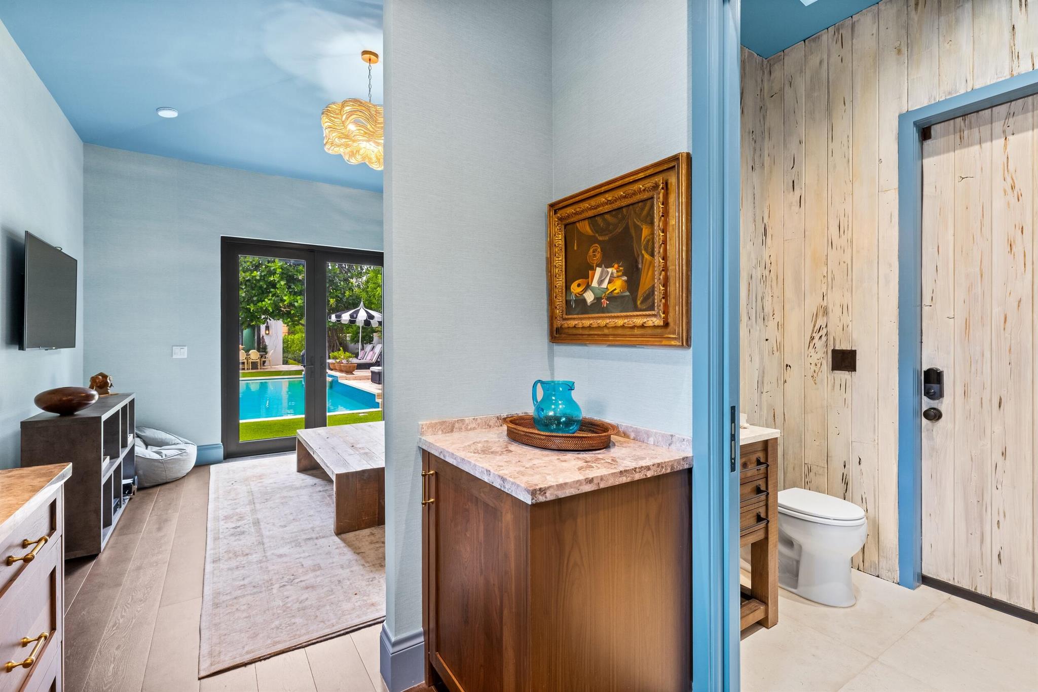 Beautifully reimagined 6BR/7.1BA estate situated on the South Side of Wells Road. Stunning renovation completed in 2024. The front entry opens to the breathtaking and serene courtyard with beautiful landscaping, covered dining loggia, and swimming pool. Soaring 15′ ceilings in most rooms. Charming stone path leads to the welcoming entry foyer with marble slab flooring. Formal dining room with built in buffet and China cabinets and gorgeous herringbone wood floors. Gourmet kitchen with top-of-the-line appliances including Blue Star 60” range with French top, dual Miele dishwashers, and Sub Zero refrigerator, freezer, and refrigerator drawers. Leeds cabinets, custom hardware, and temperature-controlled wine display.