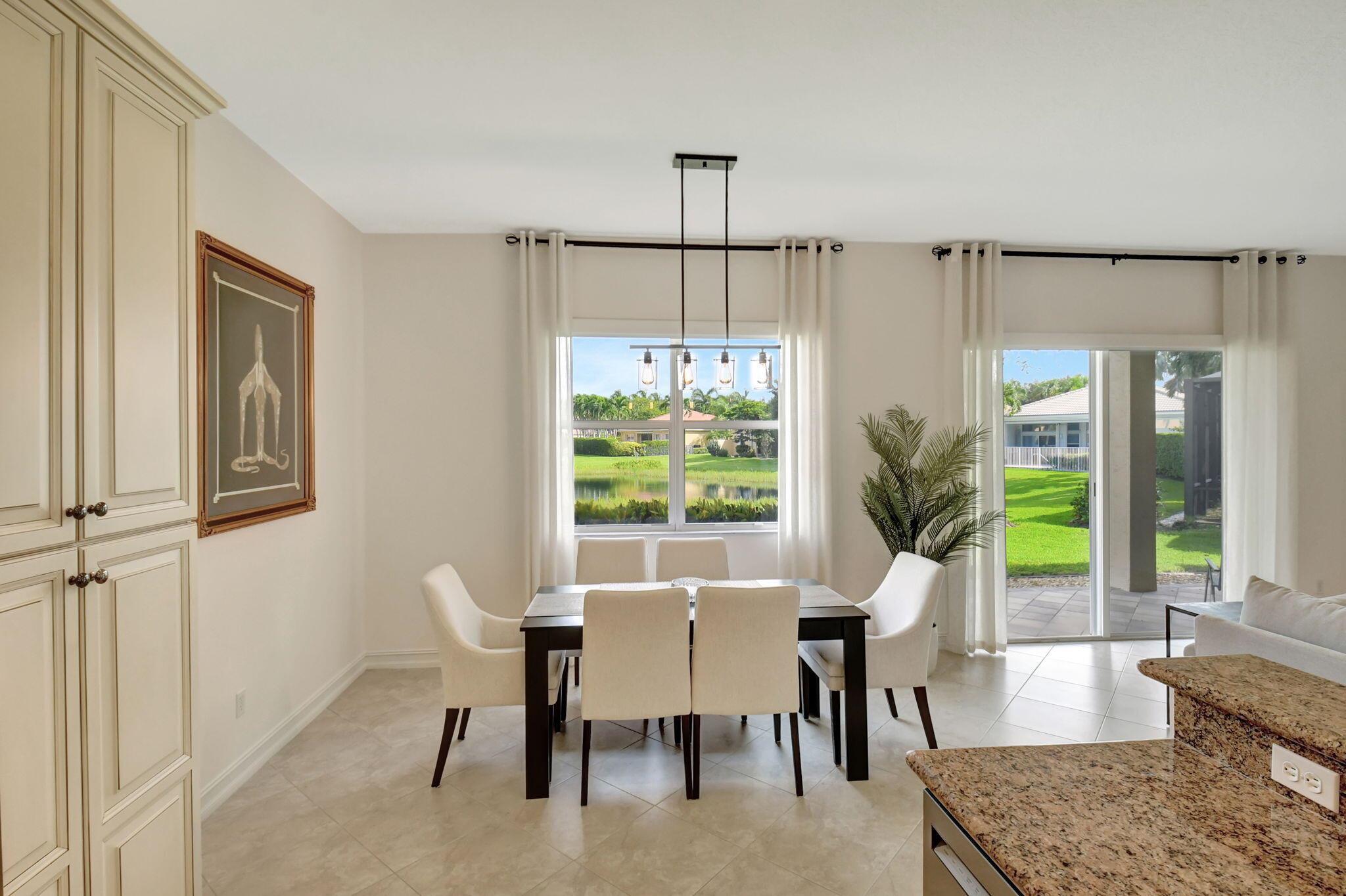 Bring your toothbrush & move right into this stunning meticulously maintained lakefront 3 bedroom, 2 bath home in the premier sought after 55 + community of Valencia Pointe with a gorgeous newly renovated clubhouse. Large great room & dining area with diagonally laid tile. New luxury vinyl floors & custom zebra shades in bedrooms & den. Motorized custom shade on great room sliding door with dramatic flowing drapery which opens to covered patio overlooking serene lake. Open concept kitchen, upgraded 42” cabinets, granite countertops, backsplash, under cabinet lighting with stainless steel appliances & new dishwasher. New lighting fixtures & ceiling fans throughout. A/C installed 2019. Complete interior recently painted. New WiFi garage door opener, epoxy painted floor in two car garage
