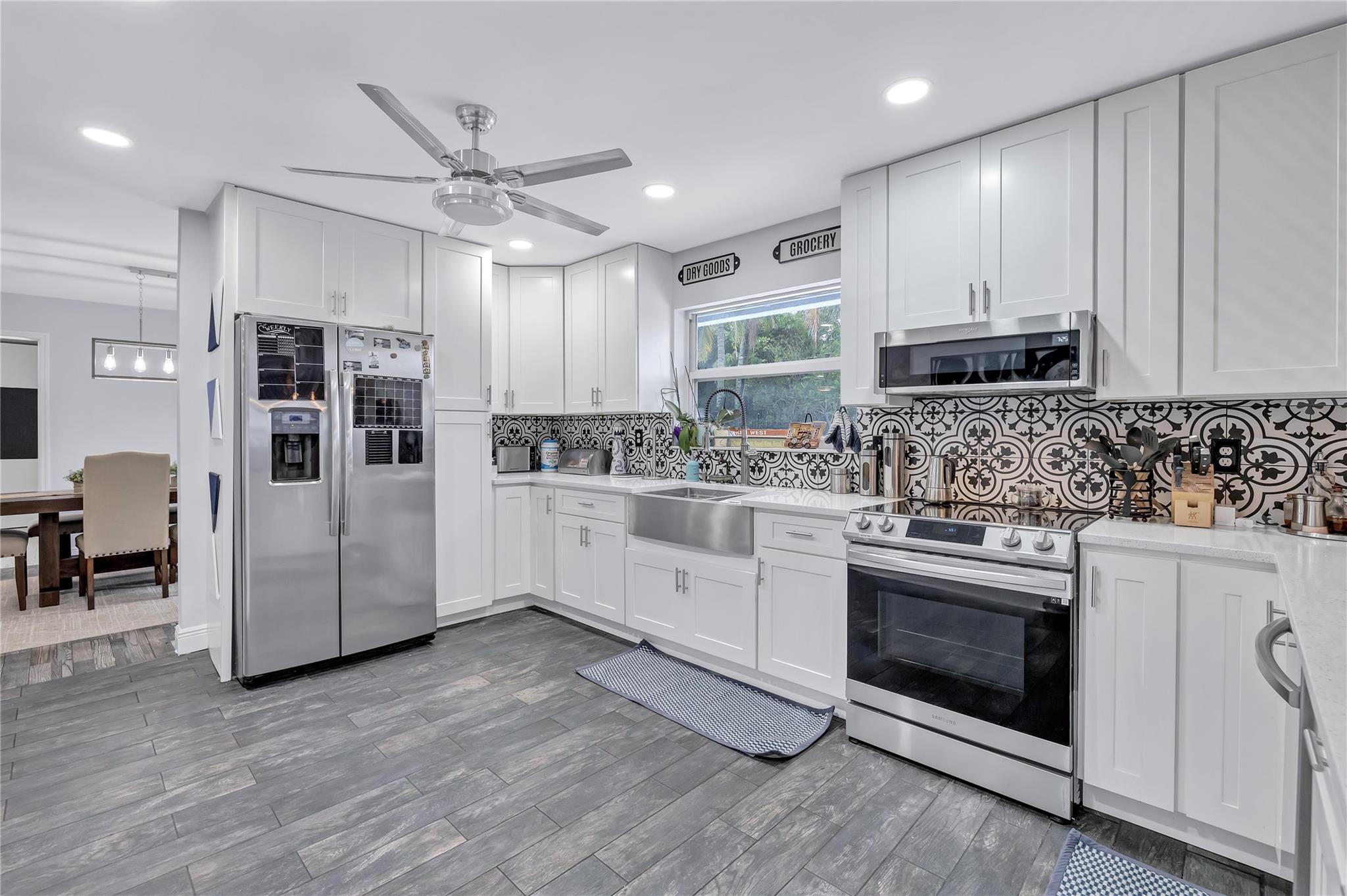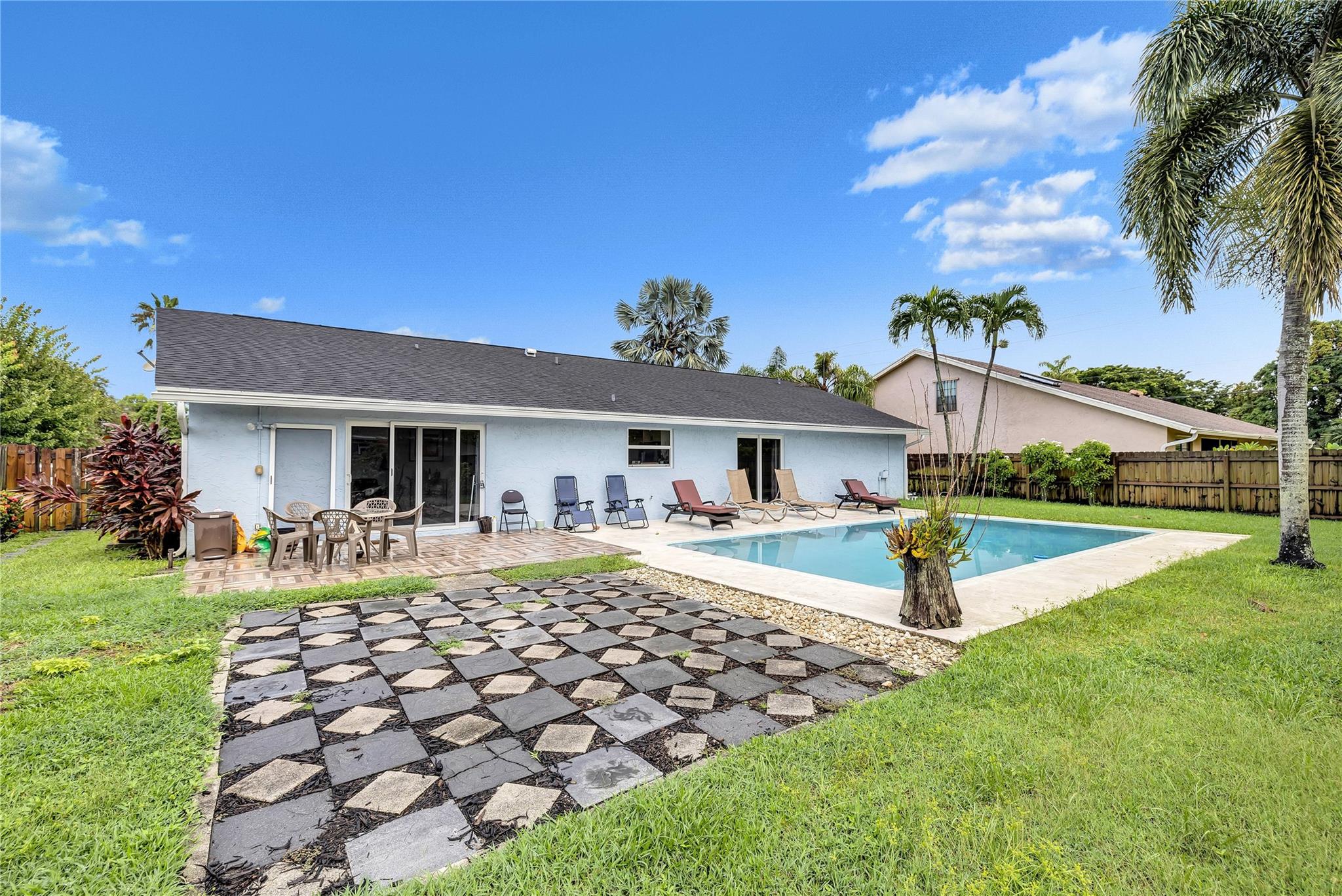 Home warranty & up to $9,000 lender credit included w/agreed to terms* This stunning home offers modern comforts & style with a newer roof and fully renovated kitchen and baths. The kitchen features sleek stainless steel appliances, gorgeous white quartz countertops, a stylish backsplash, and an extra large stainless steel/farmhouse style sink. You’ll love the spacious layout, complete with/2 living areas & a dining room, perfect for entertaining. The A/C’d and insulated two-car garage doubles as a game room & gym for added flexibility. Step outside to a HUGE fenced-in yard, ideal for pets, and enjoy the extra-large pool. Other great features are the recessed lighting, popcorn removed, the water softener, and tankless water heater. Located in a no-HOA community with highly rated schools.