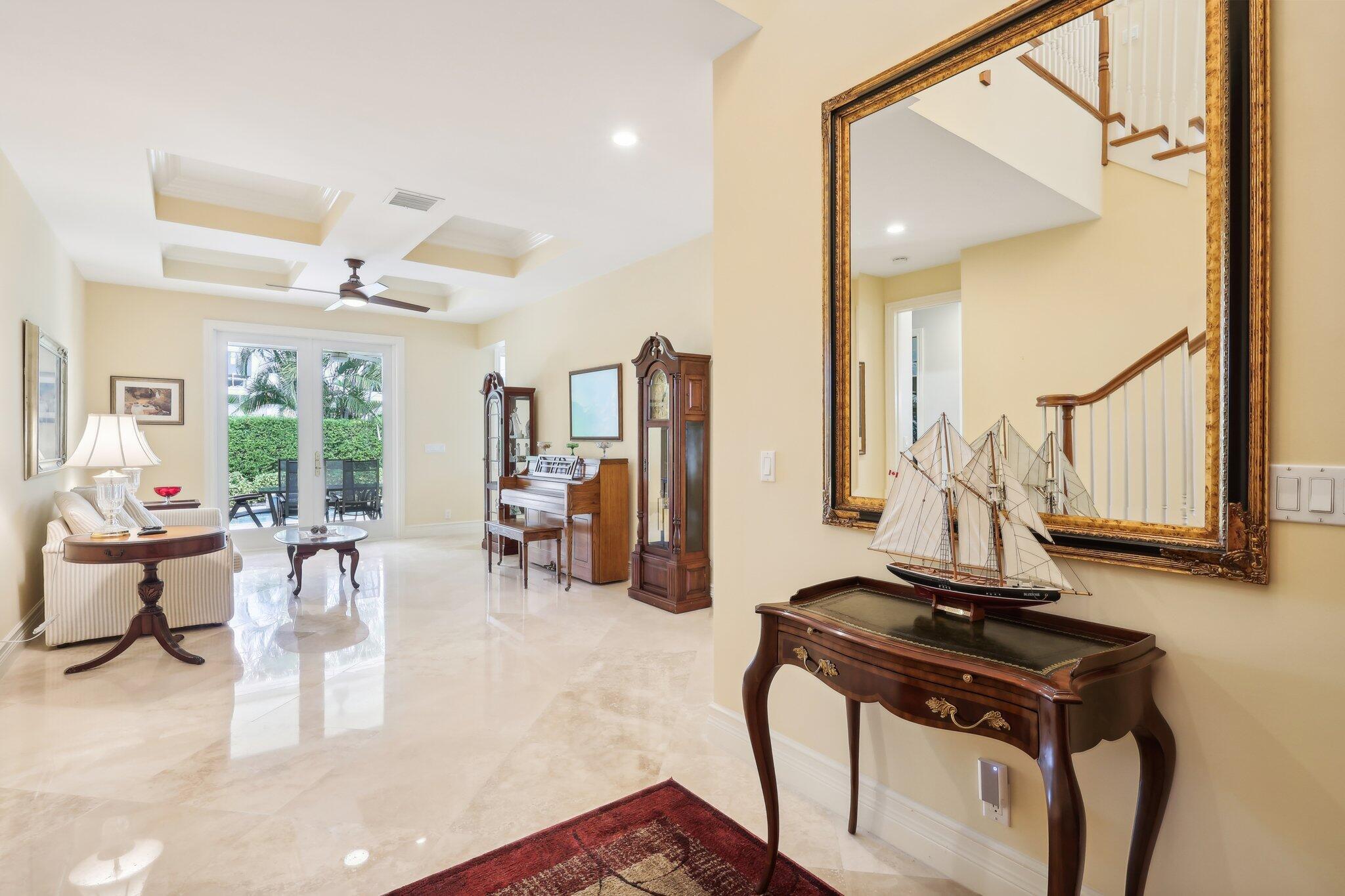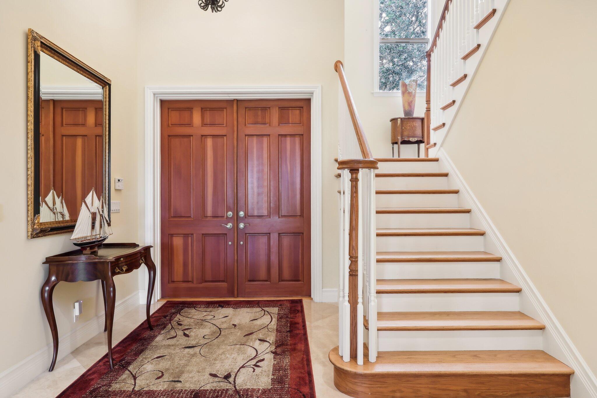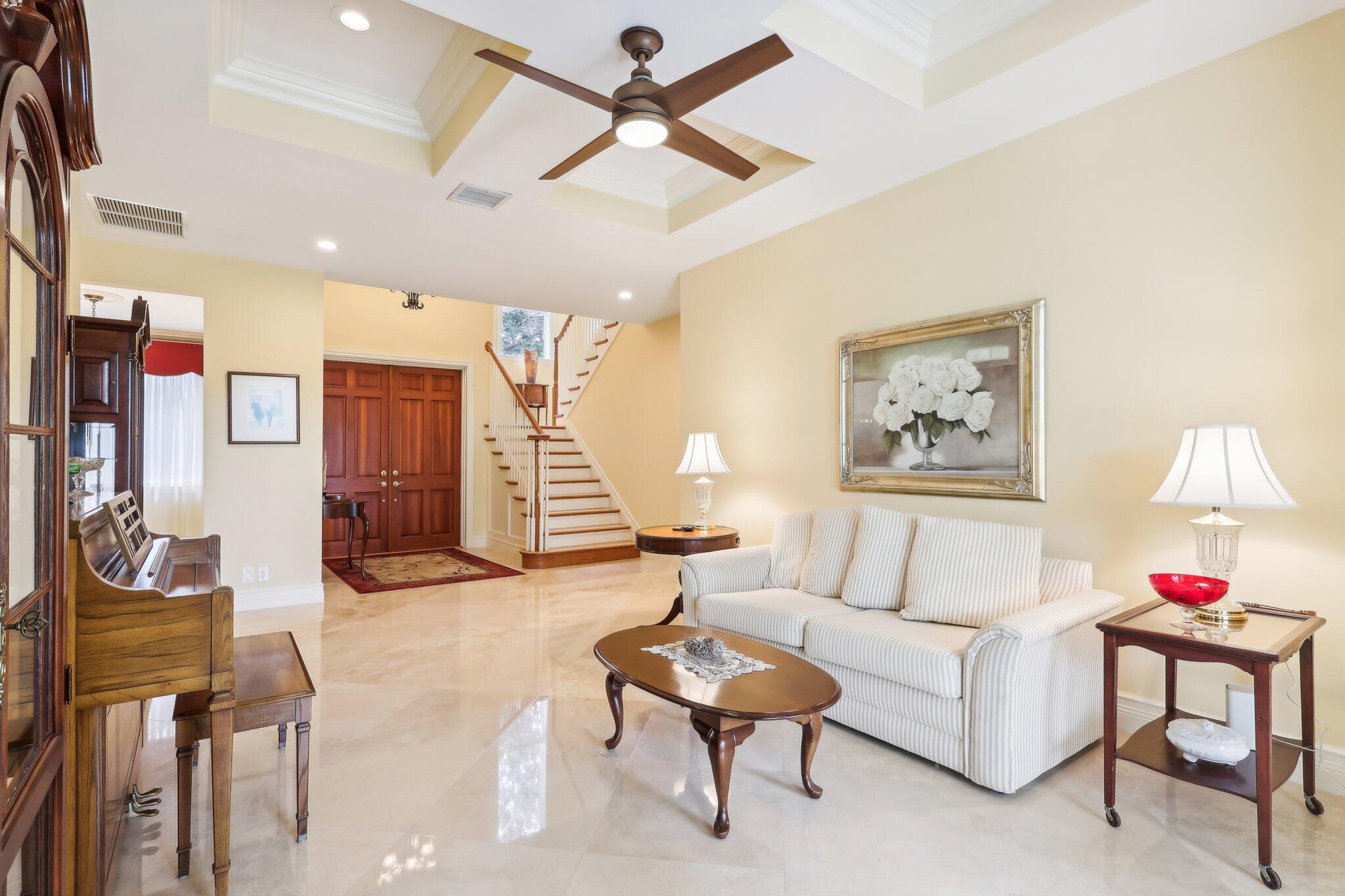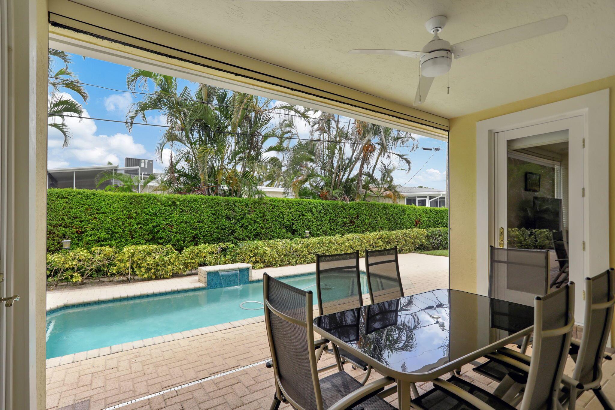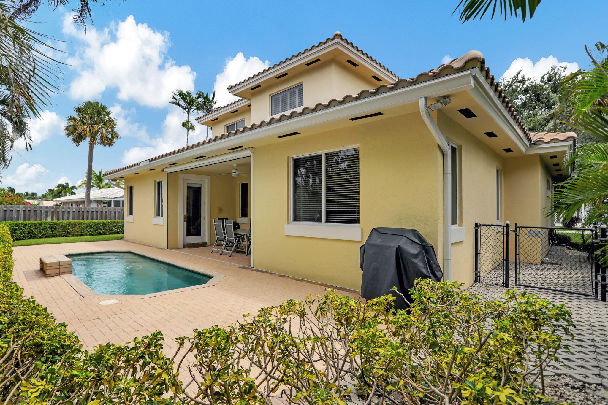 Location, location, location and traditional 2001 built pool home are winning combination for this beautiful home in The Cove that shows like new. Gorgeous polished marble on the lower level , hardwood stairs & wood floors upstairs,high ceilings, 8 foot doors , custom kitchen 42” cabinets w/ granite top, stainless steel appliances, primary bedroom suite downstairs, w walk in his n her closets, large bathroom with builtin vanity, covered patio overlooks the updated pool with waterfall & features phantom motorized screen enclosure. Upstairs features 2 large bedrooms w/ shared jack n jill updated bathroom & balcony. Large bonus room could be media, playroom or office Impact windows, impact patio doors downstairs,Roof 2023, 2 AC 2020/2017, fenced yard and pool w/ waterfall feature,