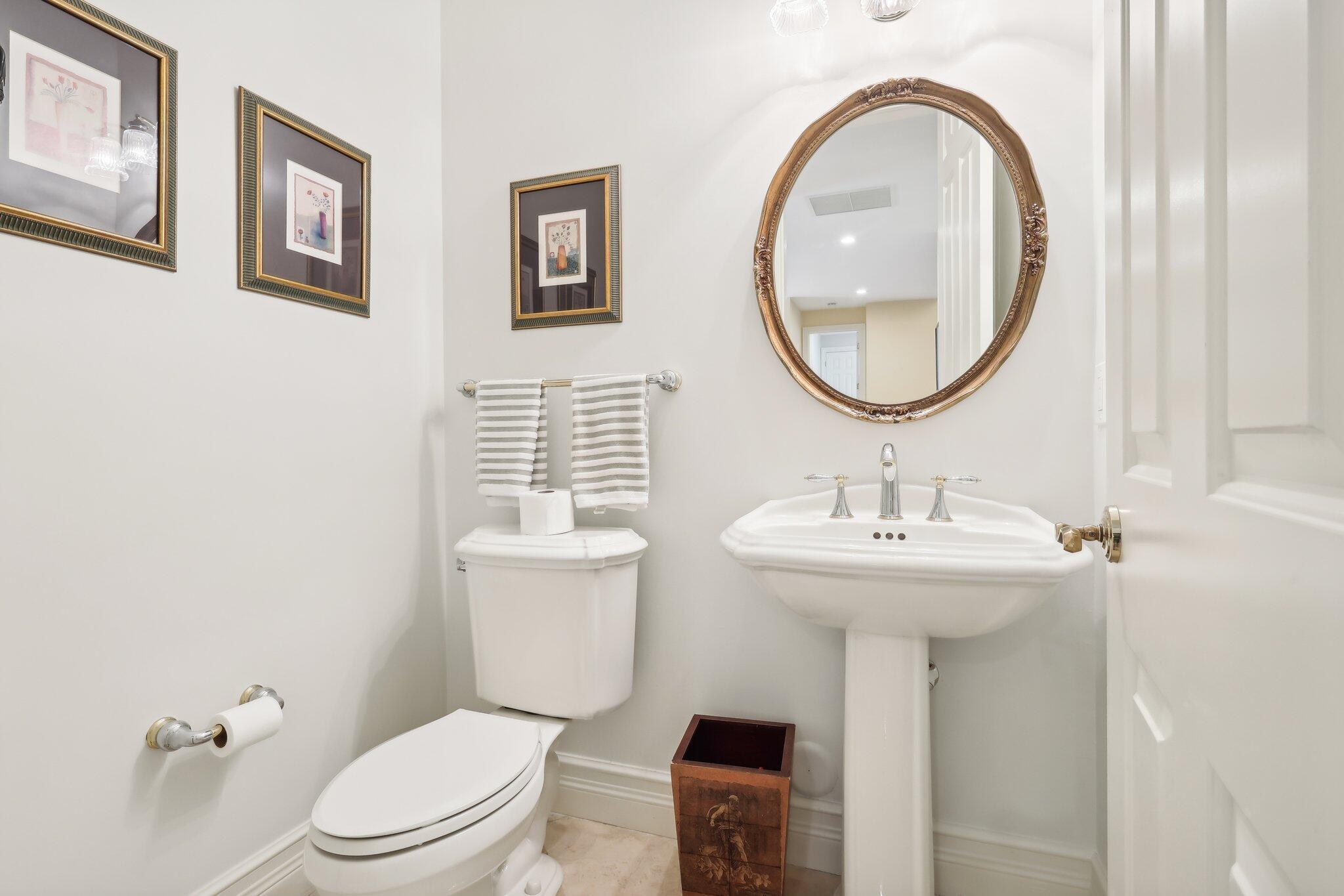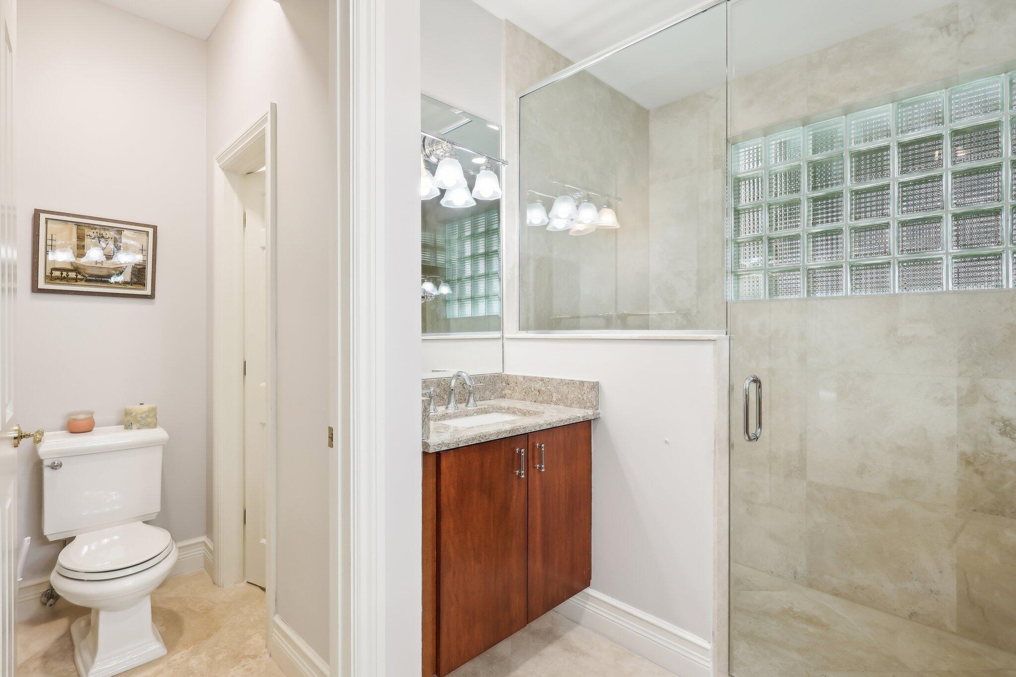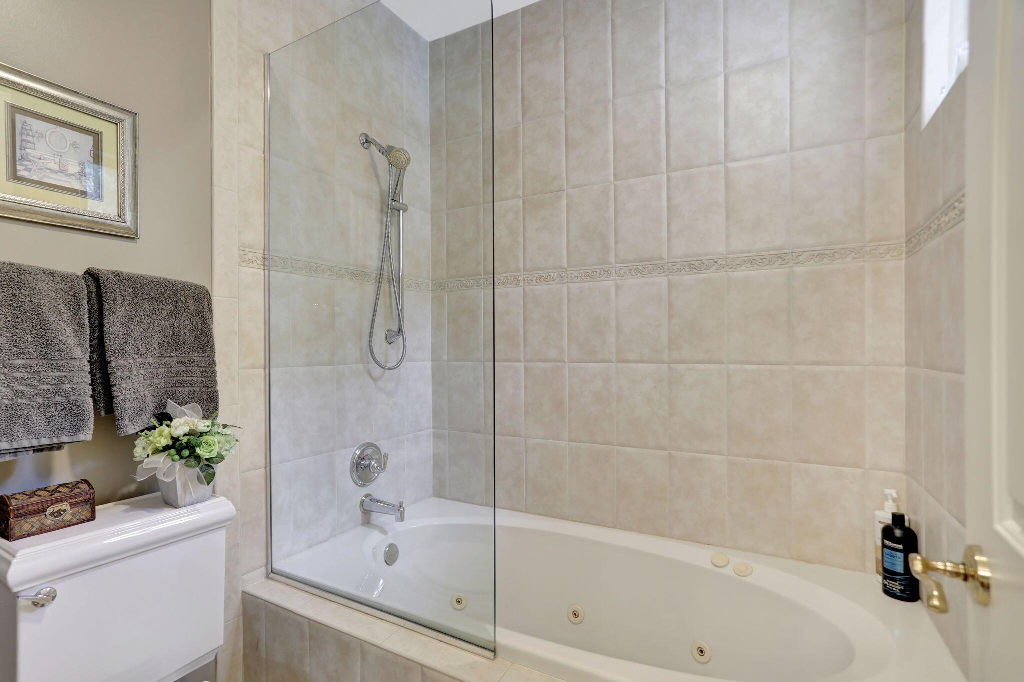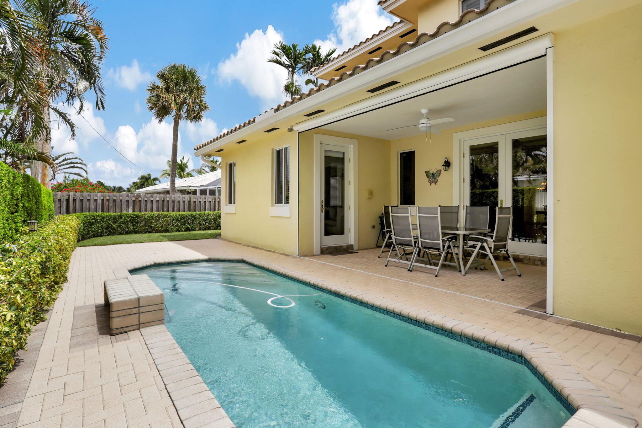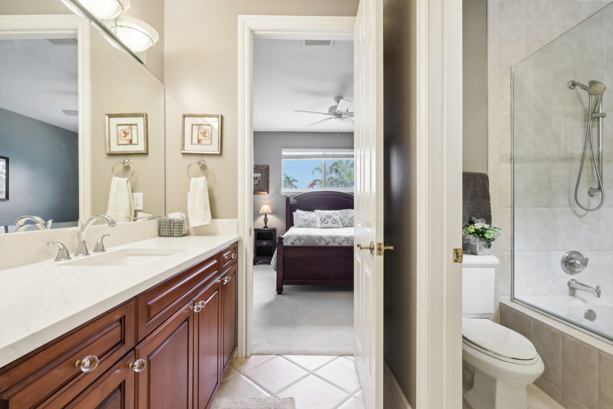 Location, location, location and traditional 2001 built pool home are winning combination for this beautiful home in The Cove that shows like new. Gorgeous polished marble on the lower level , hardwood stairs & wood floors upstairs,high ceilings, 8 foot doors , custom kitchen 42” cabinets w/ granite top, stainless steel appliances, primary bedroom suite downstairs, w walk in his n her closets, large bathroom with builtin vanity, covered patio overlooks the updated pool with waterfall & features phantom motorized screen enclosure. Upstairs features 2 large bedrooms w/ shared jack n jill updated bathroom & balcony. Large bonus room could be media, playroom or office Impact windows, impact patio doors downstairs,Roof 2023, 2 AC 2020/2017, fenced yard and pool w/ waterfall feature,