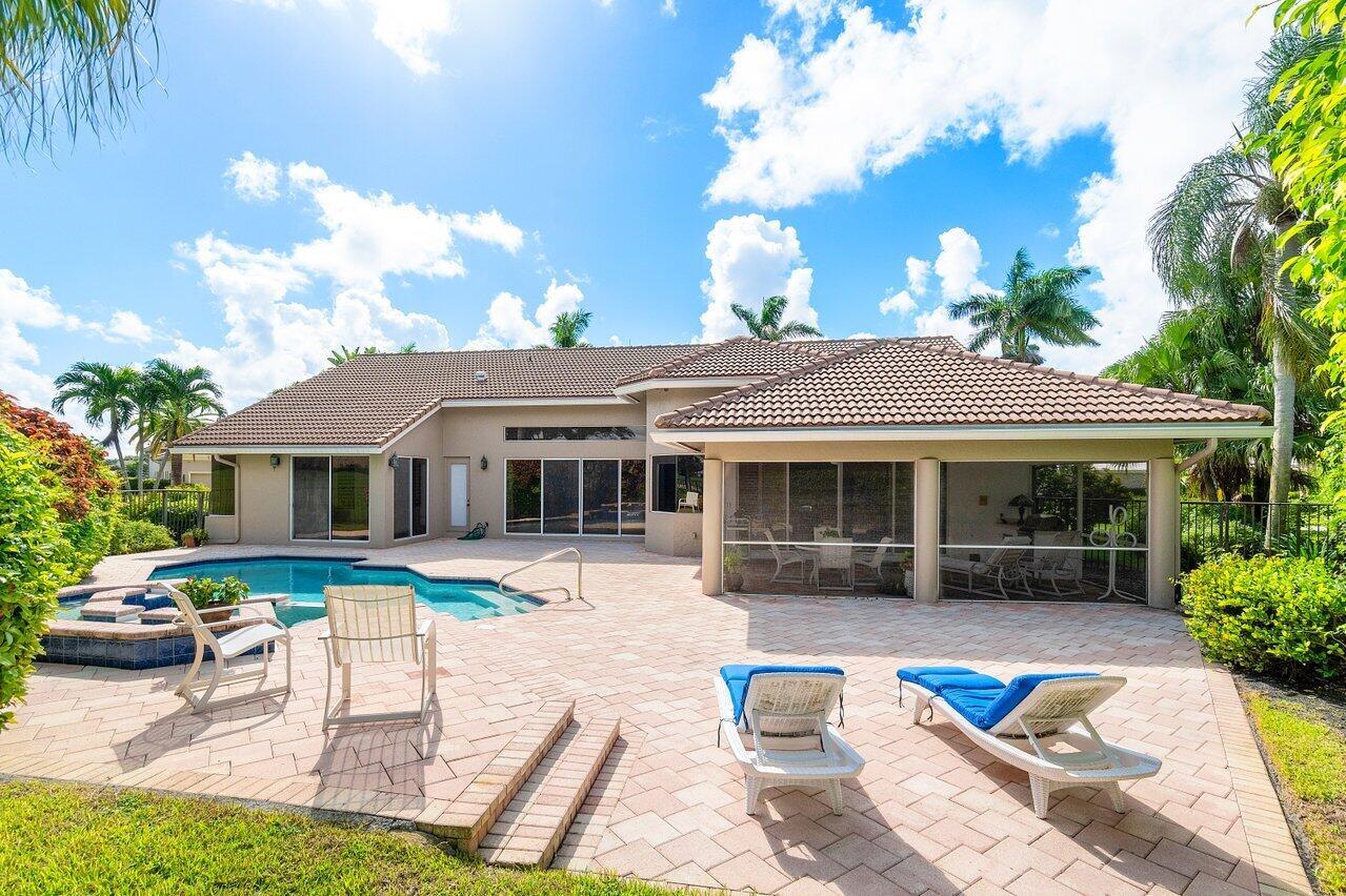 Experience the charm of this exquisite home, set on a stunning .45 acre property within the coveted Bocaire Country Club. This residence features a serene & private back patio, complete with a spacious pool & spa, perfect for relaxation or entertaining. With its inviting curb appeal and meticulous upkeep, this home includes a newer roof, a whole-house generator, and a propane tank for added convenience. Step inside to find a well-designed layout featuring a wet bar, an additional family room adjacent to the kitchen, & a grand screened patio. All bedrooms are thoughtfully split and each offers an en-suite bathroom, ensuring comfort. Bocaire Country Club, a prestigious & boutique mandatory membership Club with just 239 homes, offers high end lifestyle for the whole family. Boasting a new
