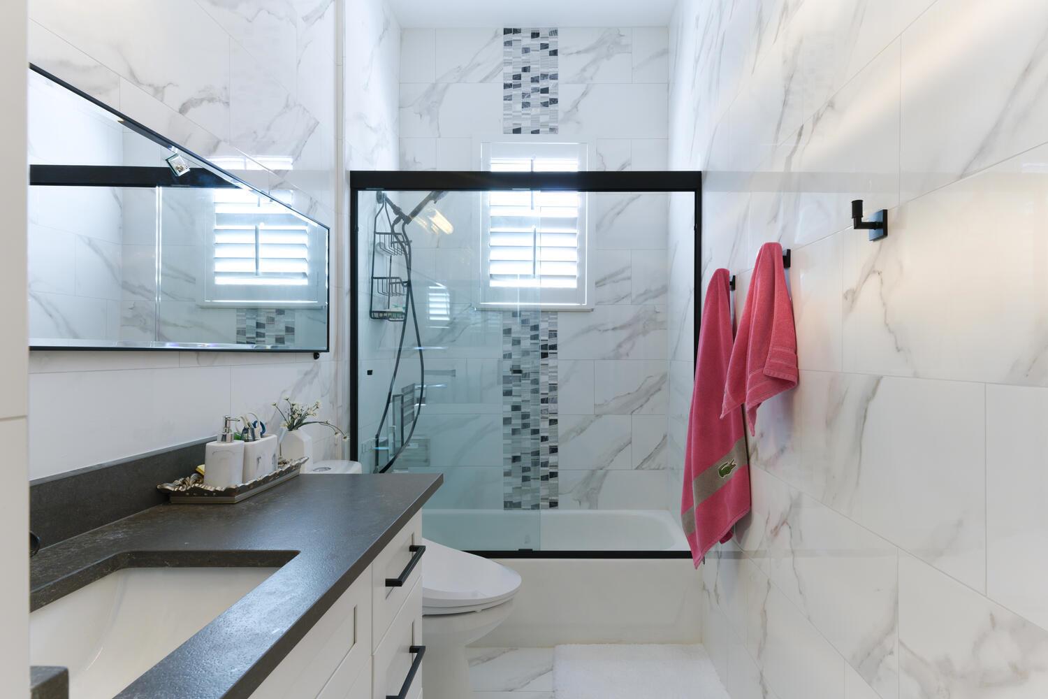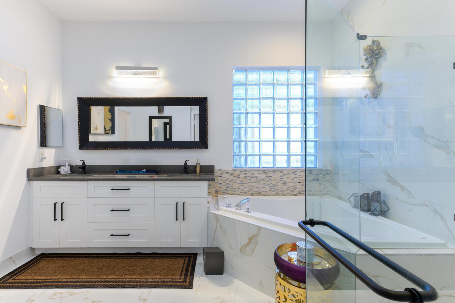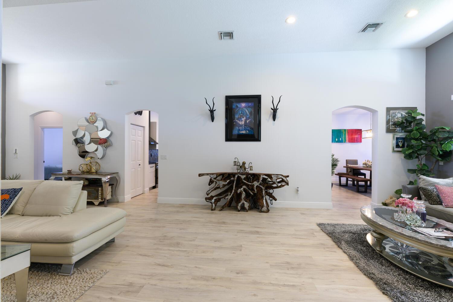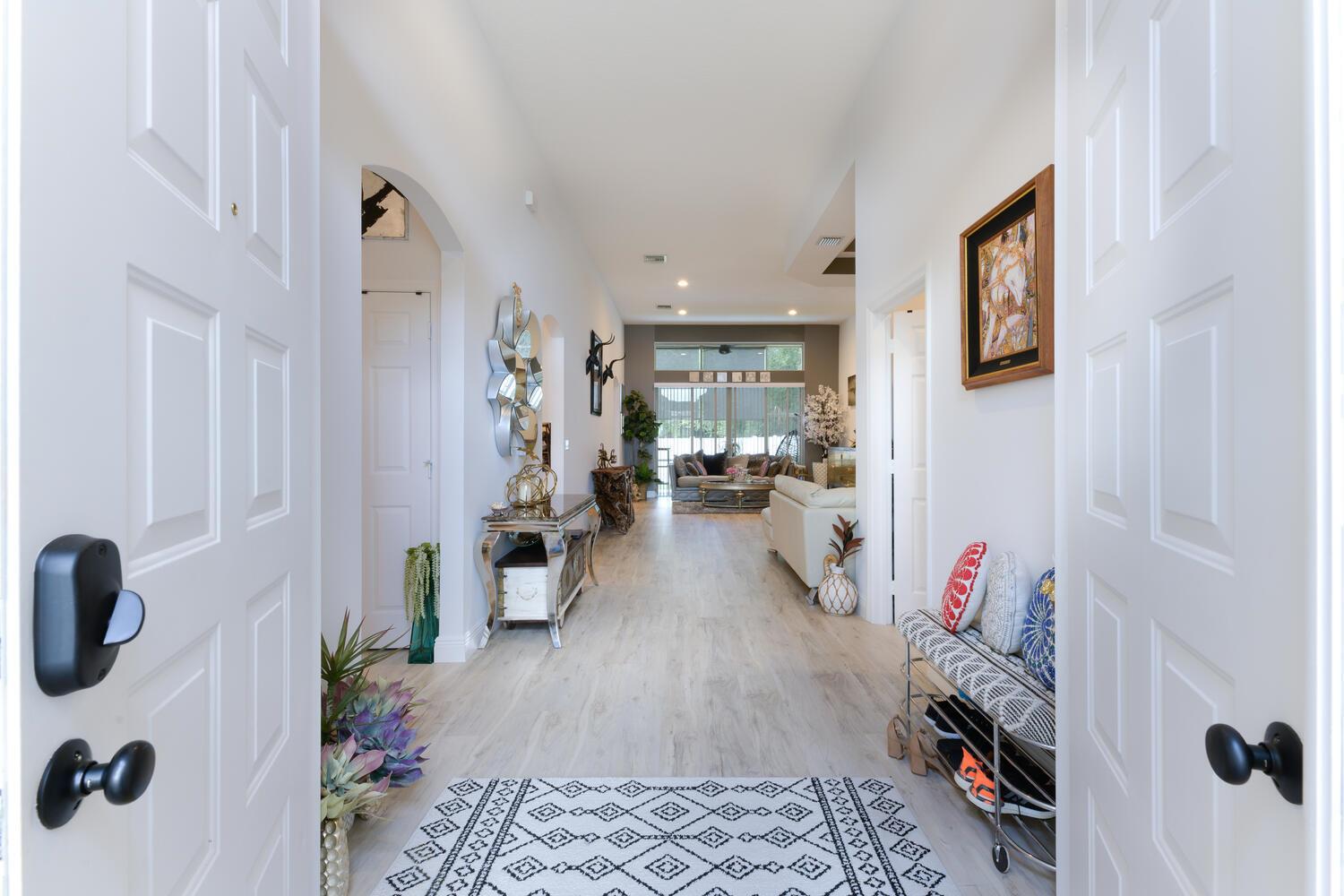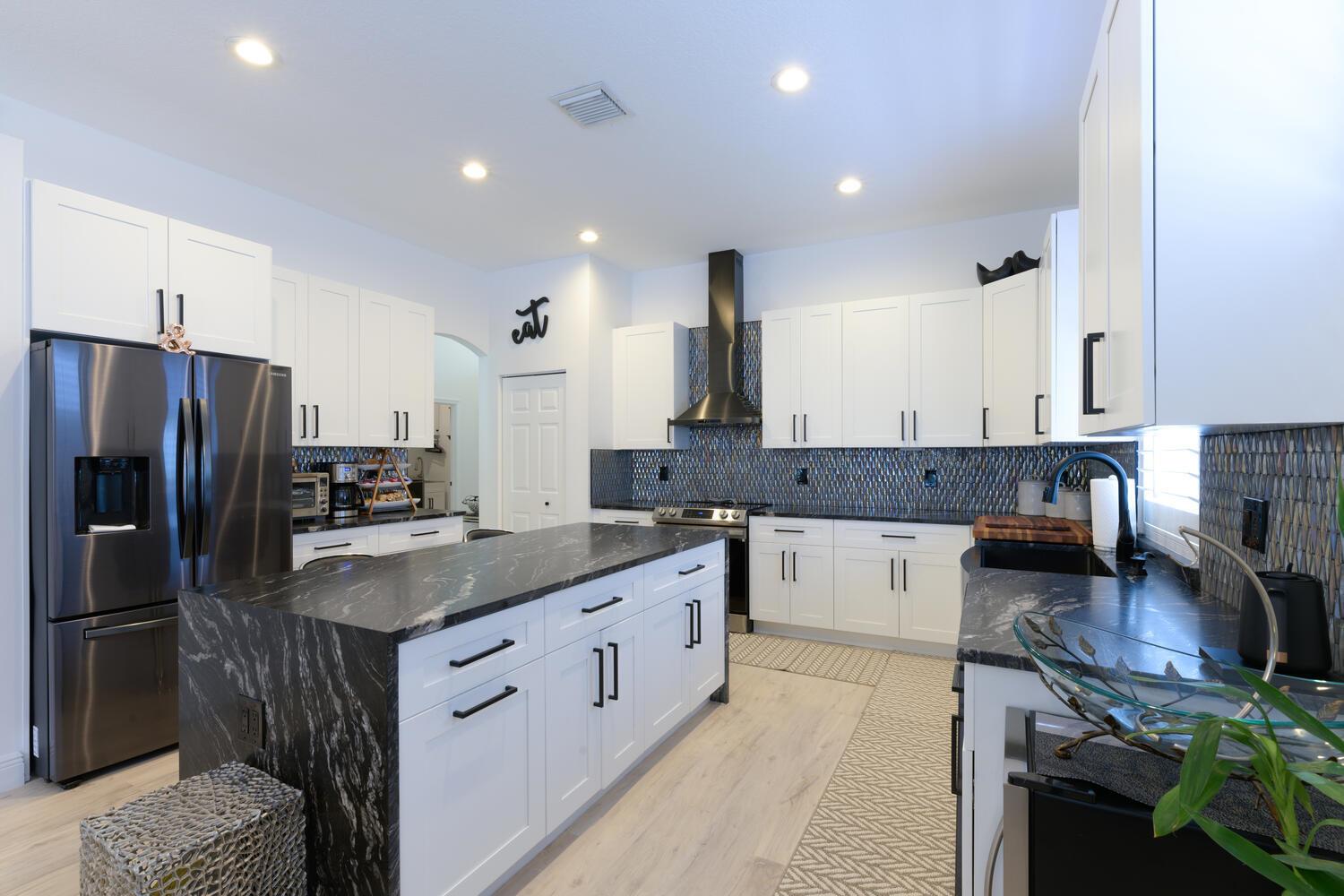 Welcome to the beautiful gated community of Andros Isle in the heart of West Palm Beach. This model offers one of the largest one story floor plans in the community with 2853 total square feet and 2237 square feet under air. During the past 18 months this home has been beautifully renovated throughout. As you enter the home you will immediately notice the extra large Luxury Vinyl Plank flooring and the high coffered ceilings in the living room with custom decorative paint. You will love this kitchen as it is made for those who love to cook as well as entertain. The kitchen was fully renovated last year with high end granite and a large granite waterfall island, custom tile backsplash, new dark stainless steel appliances throughout, and a stainless steel farmhouse sink.