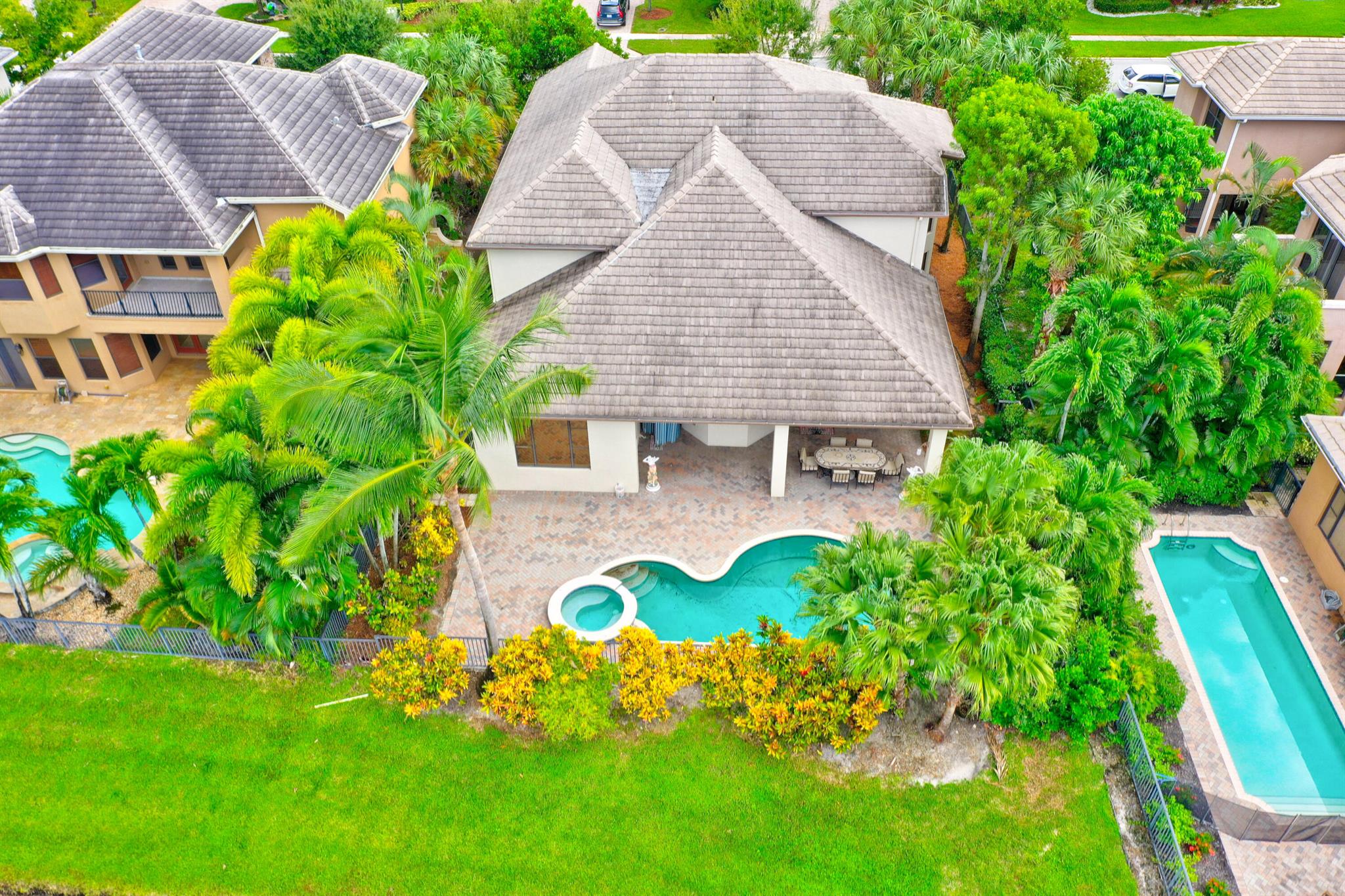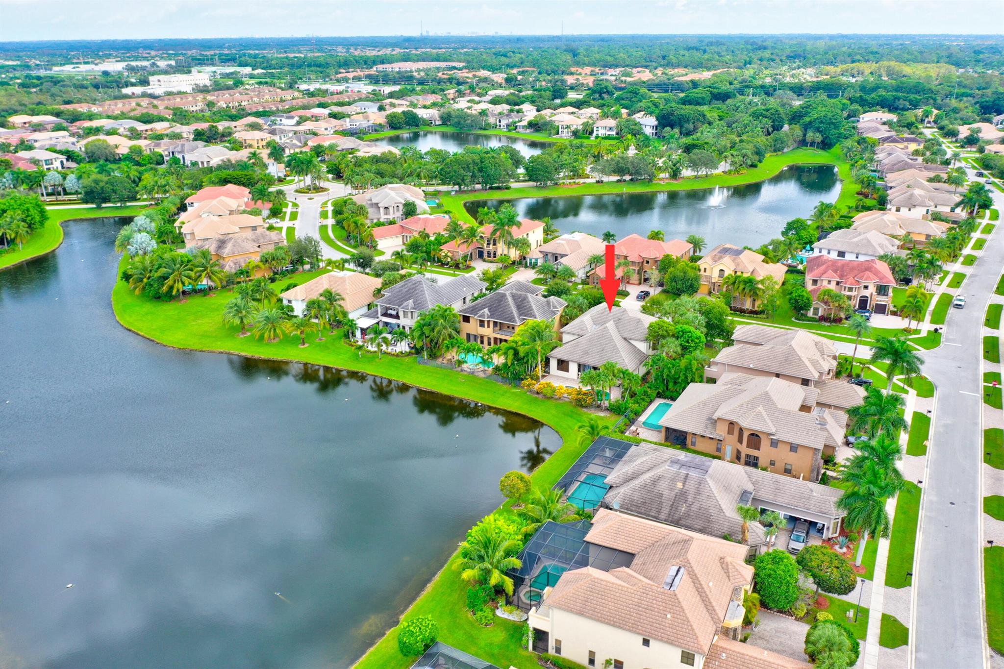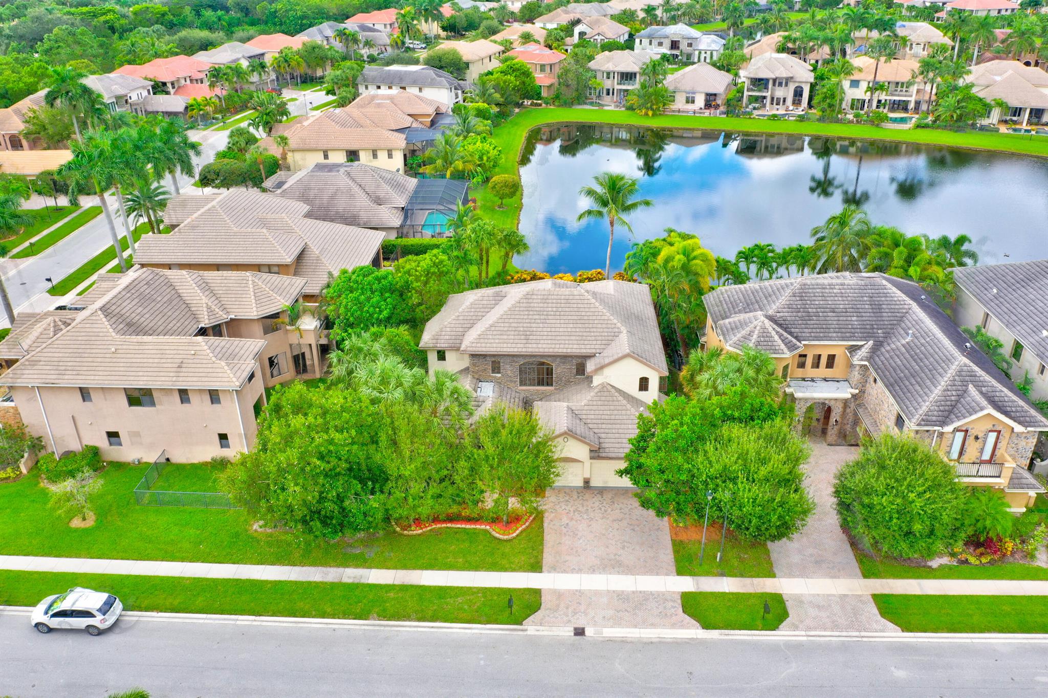 Exquisite meticulously maintained pool with amazing lake views. Updates include new cement tile roof with 50 year warranty and 6” gutters. This two story gem has three bedrooms and two full bathroom upstairs, and first floor has enormous master suite, two walk in closets, guest room, and 3 1/2 bathrooms. Decorated in the Versailles style with floor to ceiling draperies, crown molding, columns, and faux painting . Community offers tennis courts, gym, club house, and 24 hour gated security.