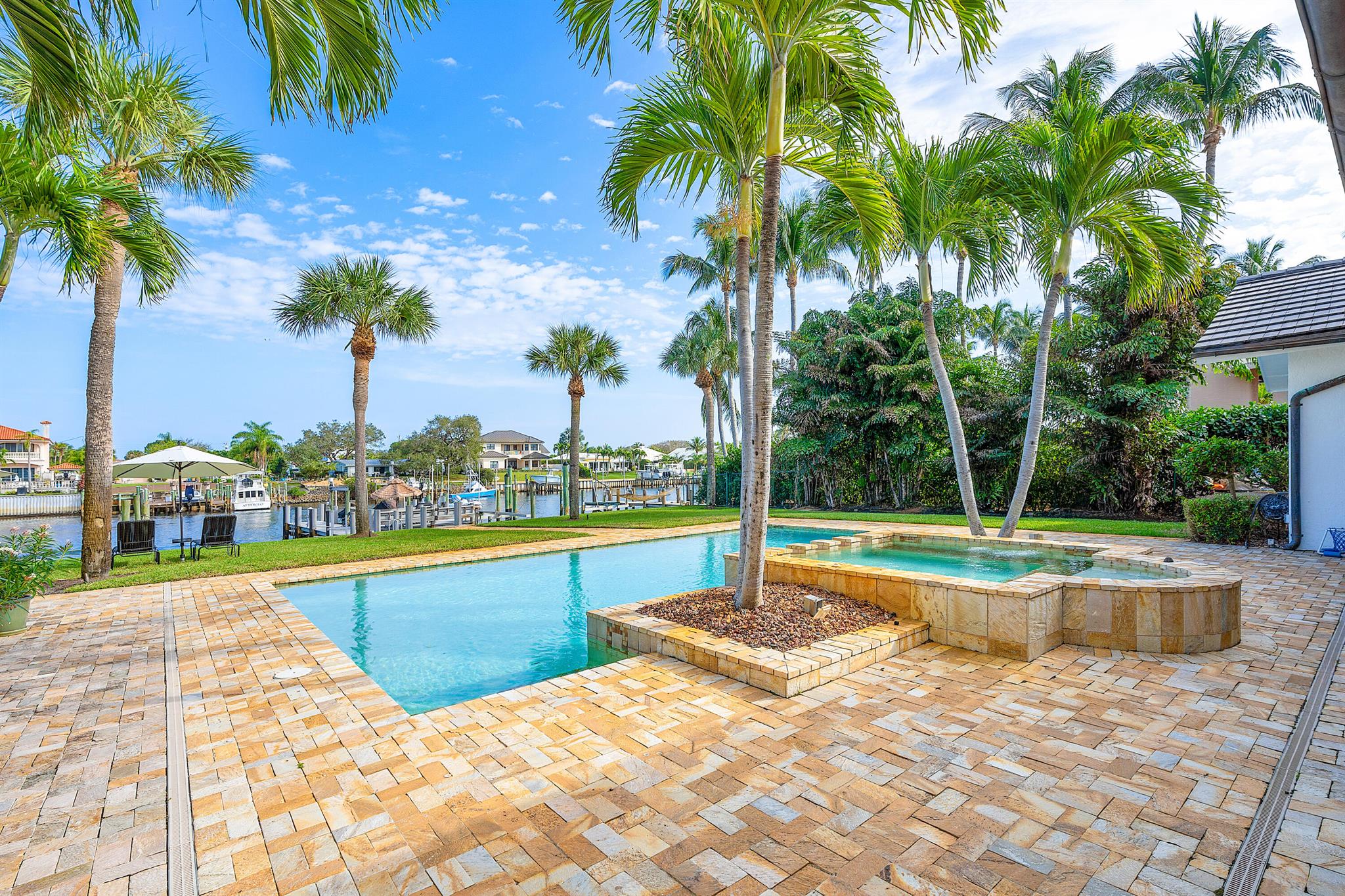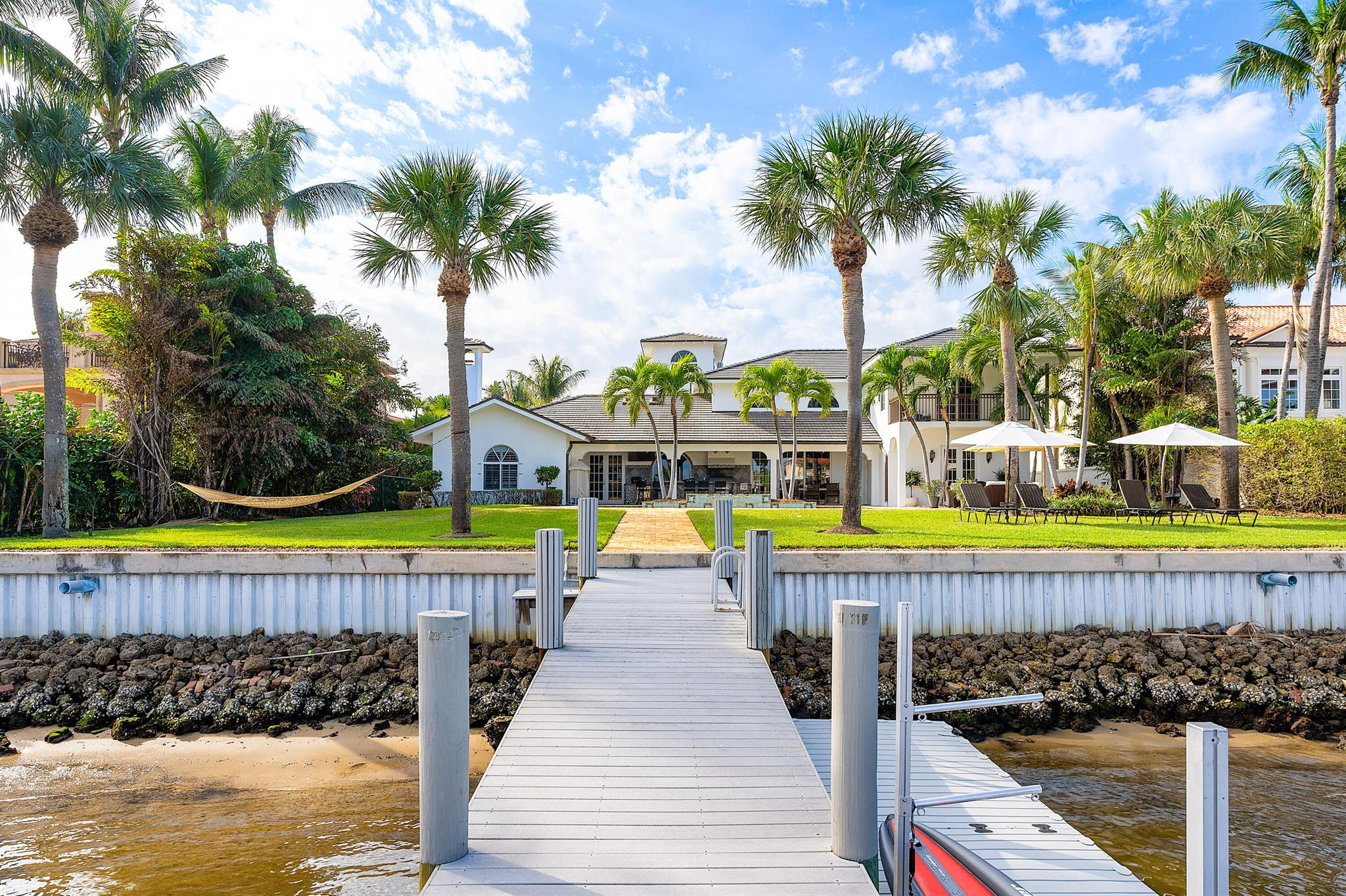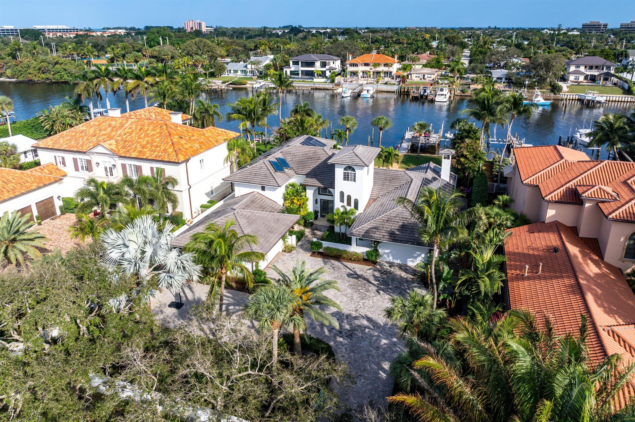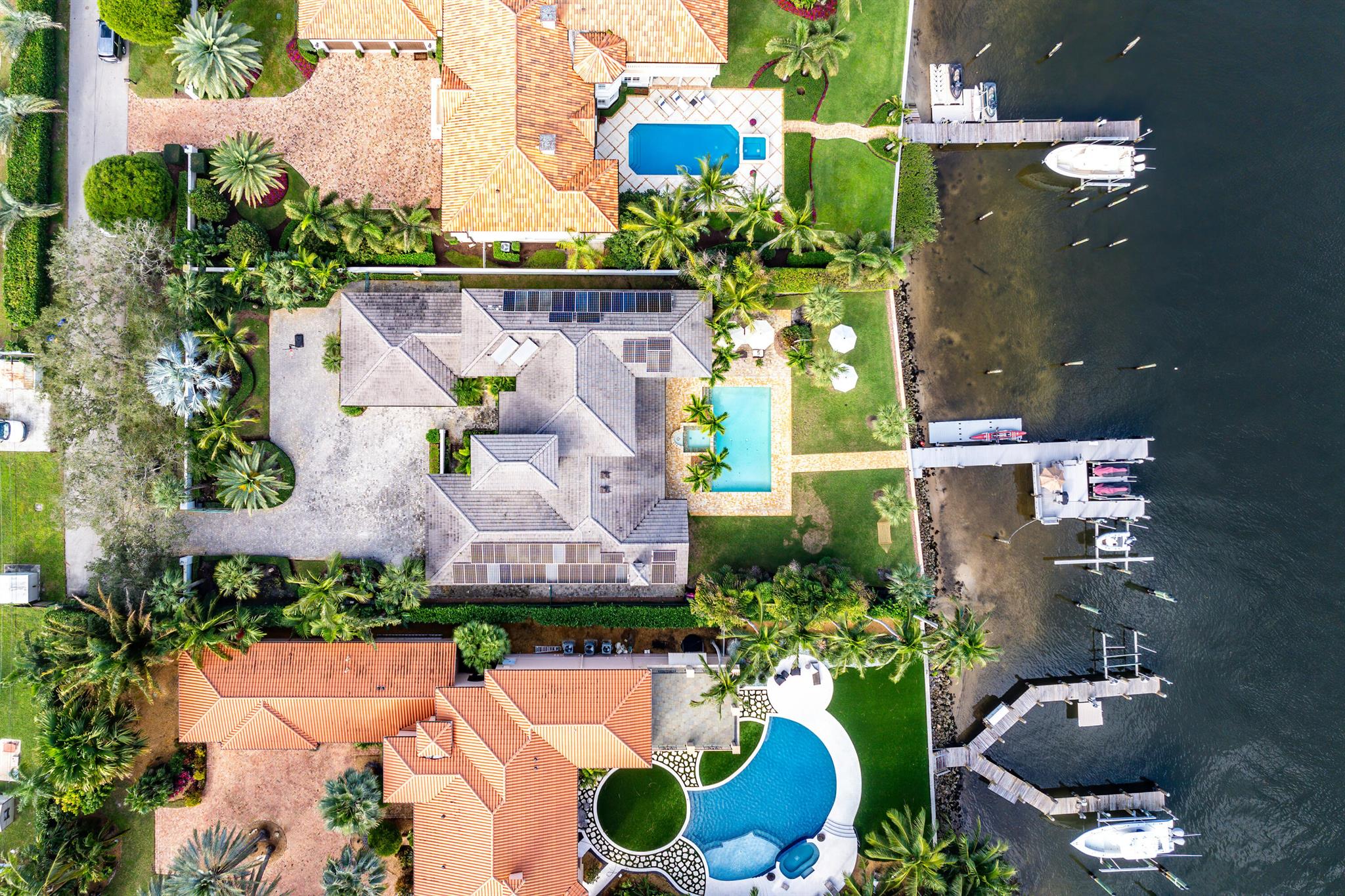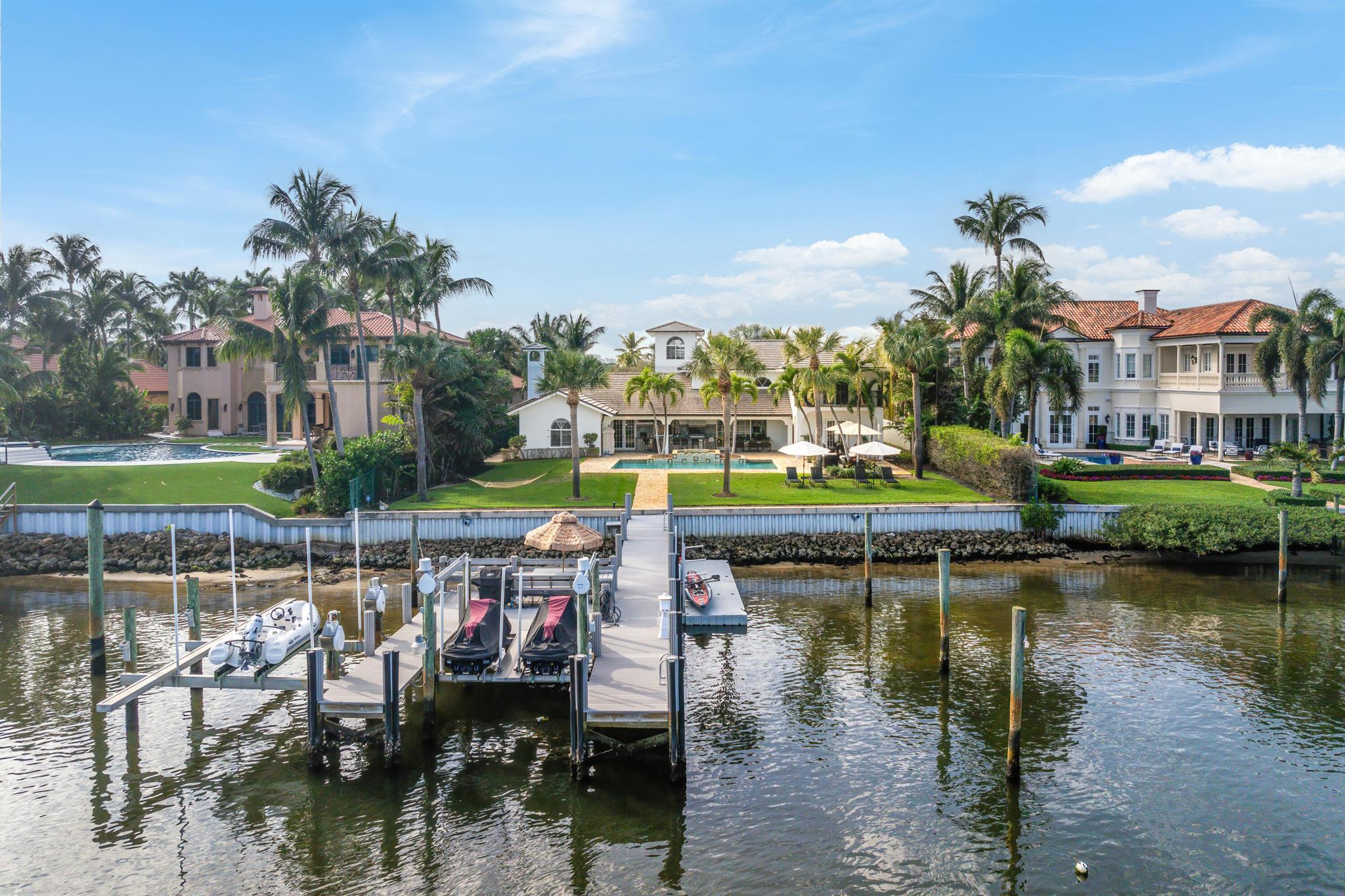 Welcome to your dream waterfront oasis that brings Palm Beach Island to Palm Beach Gardens! Enjoy the ultimate waterfront lifestyle with over 100 feet of water frontage. For boat enthusiasts, there’s a 75 ft. boat slip, two additional slips, and a floating dock. One of these slips includes a convenient 5,000 lb. double jet ski lift, while the other offers a substantial 16,000 lb. boat lift. Whether you’re a seasoned boater or just love being by the water, this property has the amenities you need. This rare gem boasts a generously sized 0.65-acre lot, fully fenced and gated for your privacy and security. With over 4,700 sq. ft. of living space and a total of 6,478 sq. ft., this estate has room for every aspect of your life. The beautiful main suite has a stunning view from a private