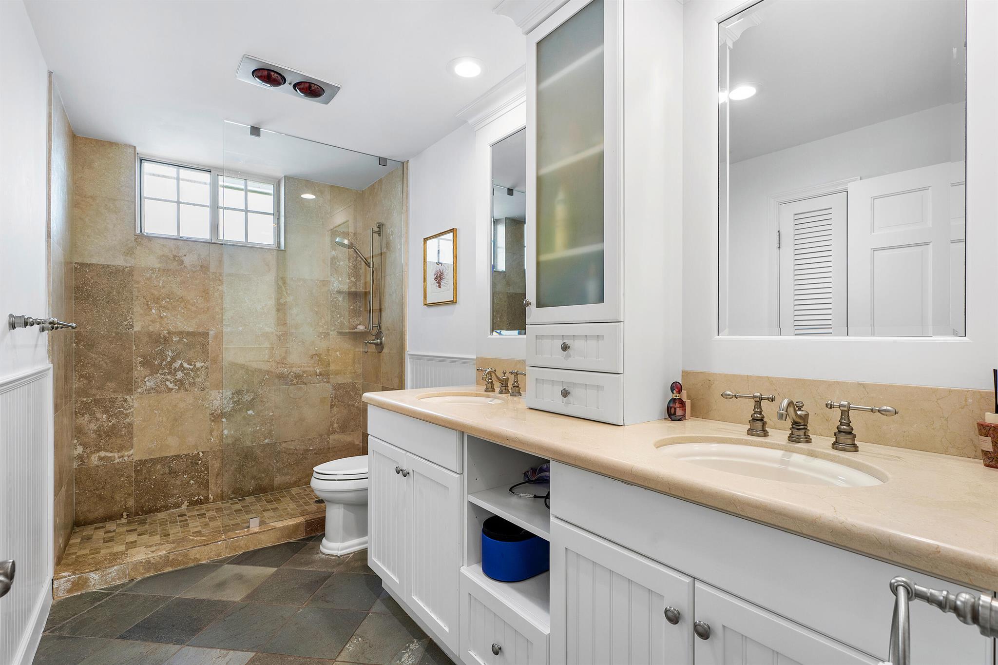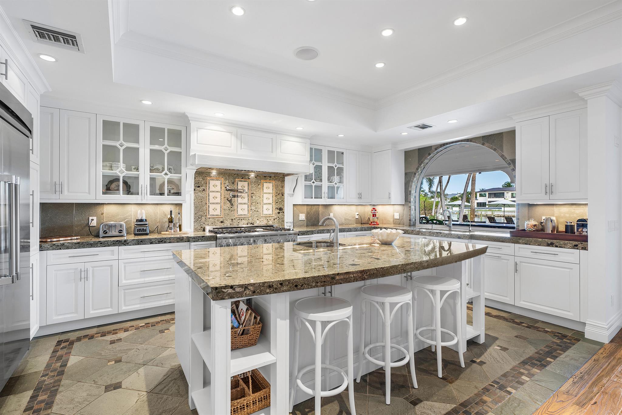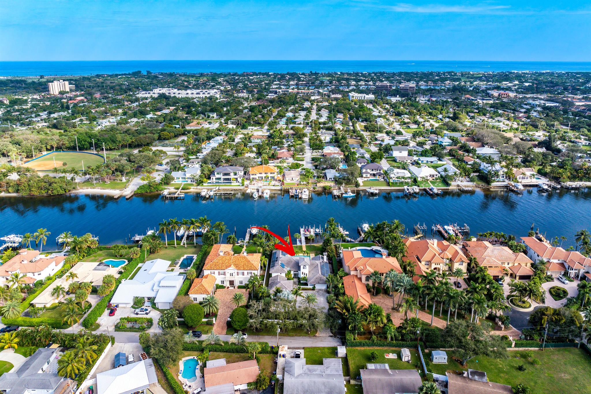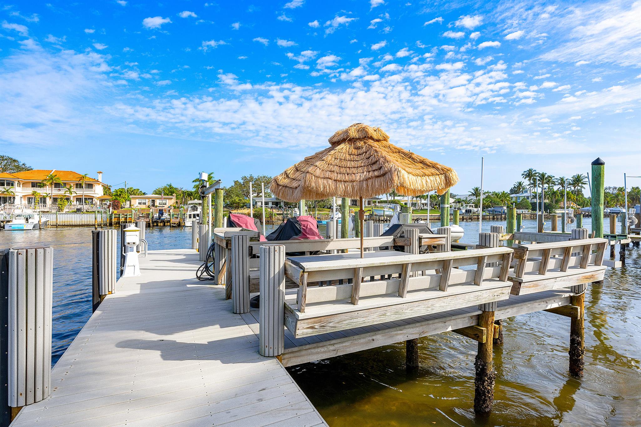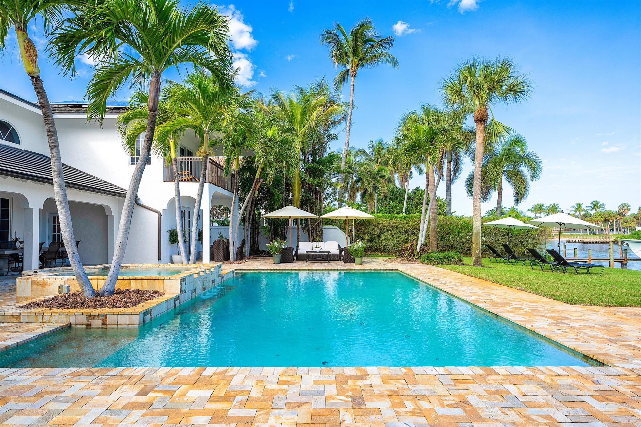 Welcome to your dream waterfront oasis that brings Palm Beach Island to Palm Beach Gardens! Enjoy the ultimate waterfront lifestyle with over 100 feet of water frontage. For boat enthusiasts, there’s a 75 ft. boat slip, two additional slips, and a floating dock. One of these slips includes a convenient 5,000 lb. double jet ski lift, while the other offers a substantial 16,000 lb. boat lift. Whether you’re a seasoned boater or just love being by the water, this property has the amenities you need. This rare gem boasts a generously sized 0.65-acre lot, fully fenced and gated for your privacy and security. With over 4,700 sq. ft. of living space and a total of 6,478 sq. ft., this estate has room for every aspect of your life. The beautiful main suite has a stunning view from a private