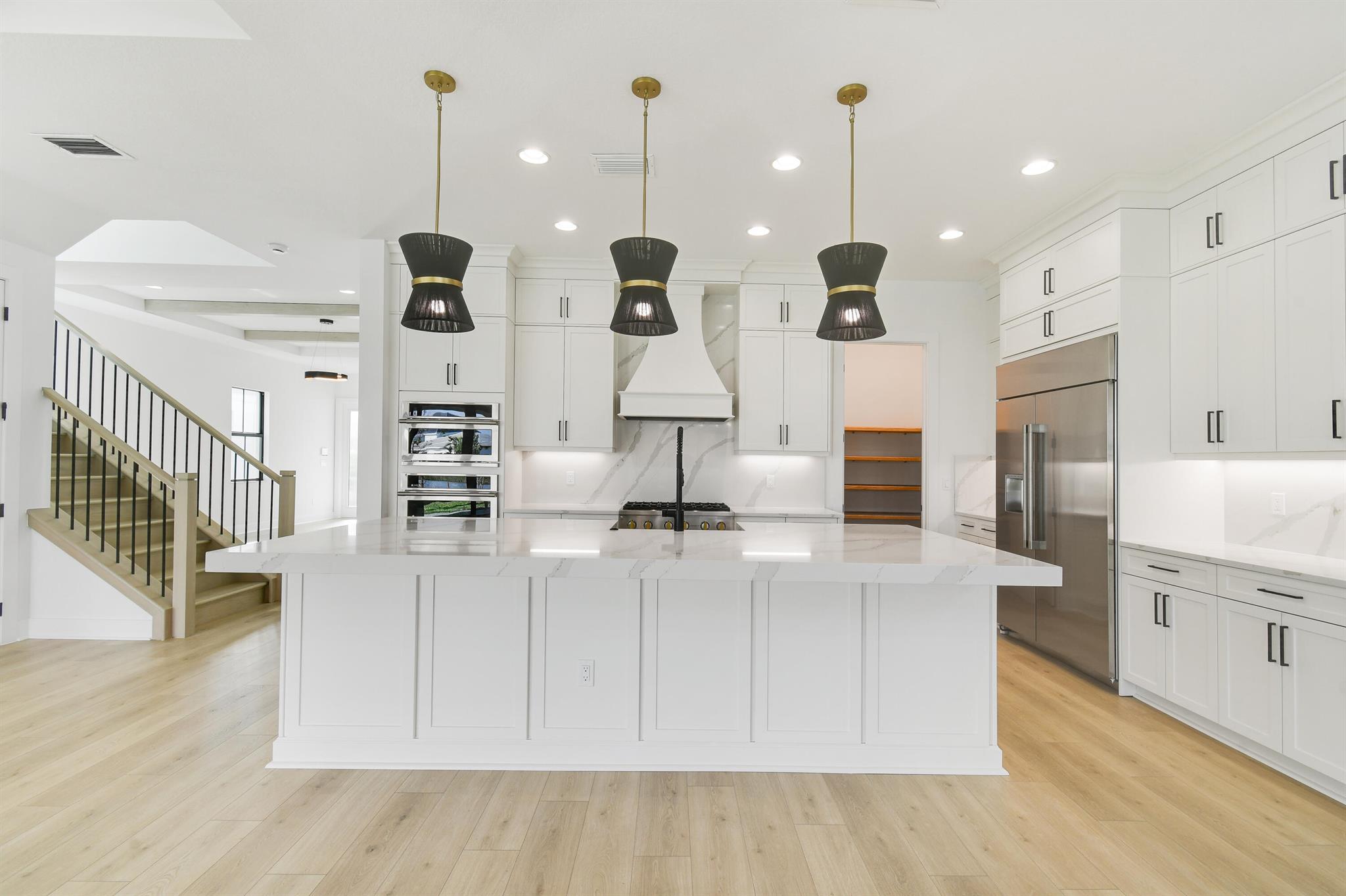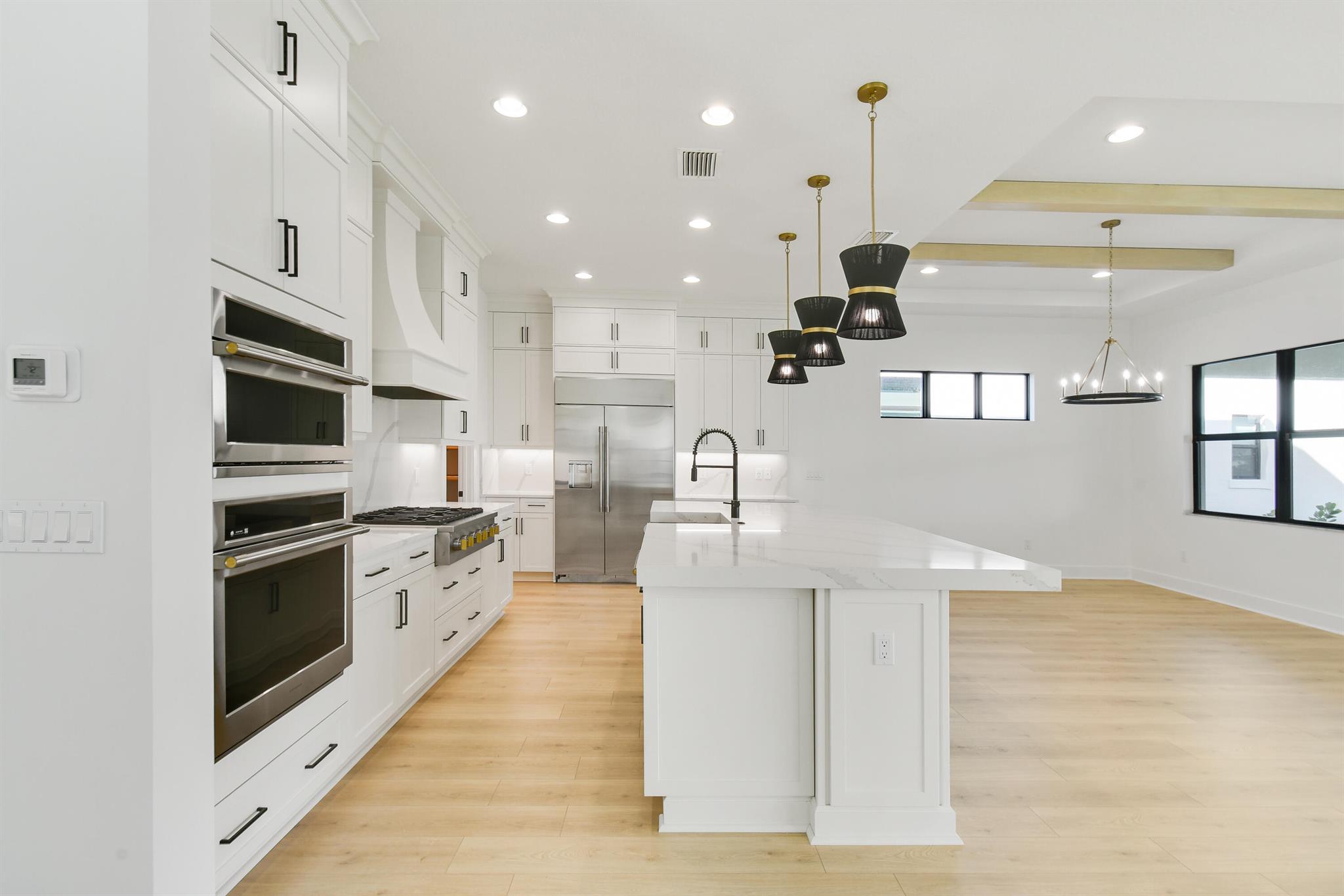 **New Construction – Move In Ready**This stunning Hudson floorplan is one of the last available at Artistry Palm Beach, featuring 5 Bedroom, 4 Bath, and a 3-Car Garage. The gourmet Kitchen boasts a 3” edge island, full-height quartz backsplash, and upgraded cabinets, complete with under-cabinet LED lighting and gas cooking. The expanded Family Room includes 4-panel glass sliders for seamless indoor-outdoor living and Lanai with east exposure and lakeview. This home also offers connections for a future outdoor summer kitchen, a tankless gas water heater, and spray foam insulation for energy efficiency. One of the last opportunities for new construction in the heart of Palm Beach Gardens, the community of Artistry Palm Beach offers a 24/7 manned-gated entry and resort style amenities,