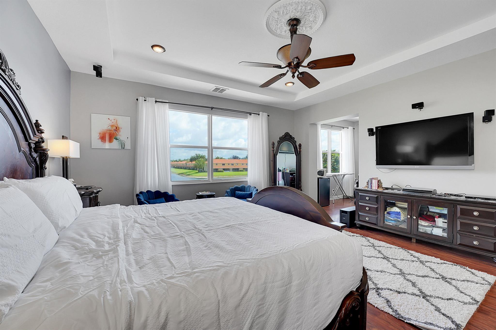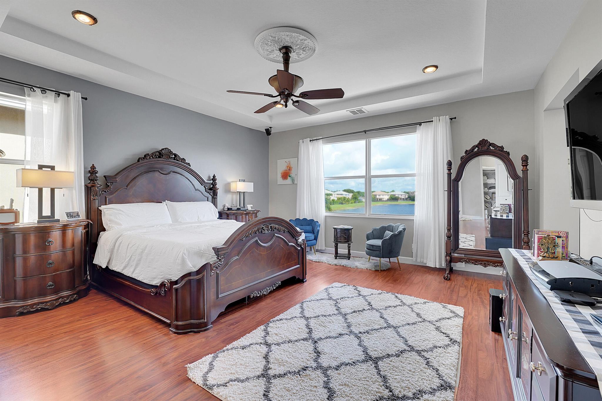 5-bedroom 3.5-bathroom home with a 3-garage in desirable community in West Palm Beach FL. This Windward II model with the private retreat (sitting area) is also accompanied with Family room/Bonus room. Private pool with a private view to the lake. Media room for entertainment.Outside, enjoy Florida’s sunshine by the pool soaking in serene water views that enhance the tranquility of this exceptional property.Residents also benefit from a 24hr gated community with amenities including a clubhouse with a resort-style pool, spa, gym, playground, tennis courts, and a splash park, offering a blend of security and recreation.Don’t miss the chance to own this sophisticated home in a prime location.This home is a must see.