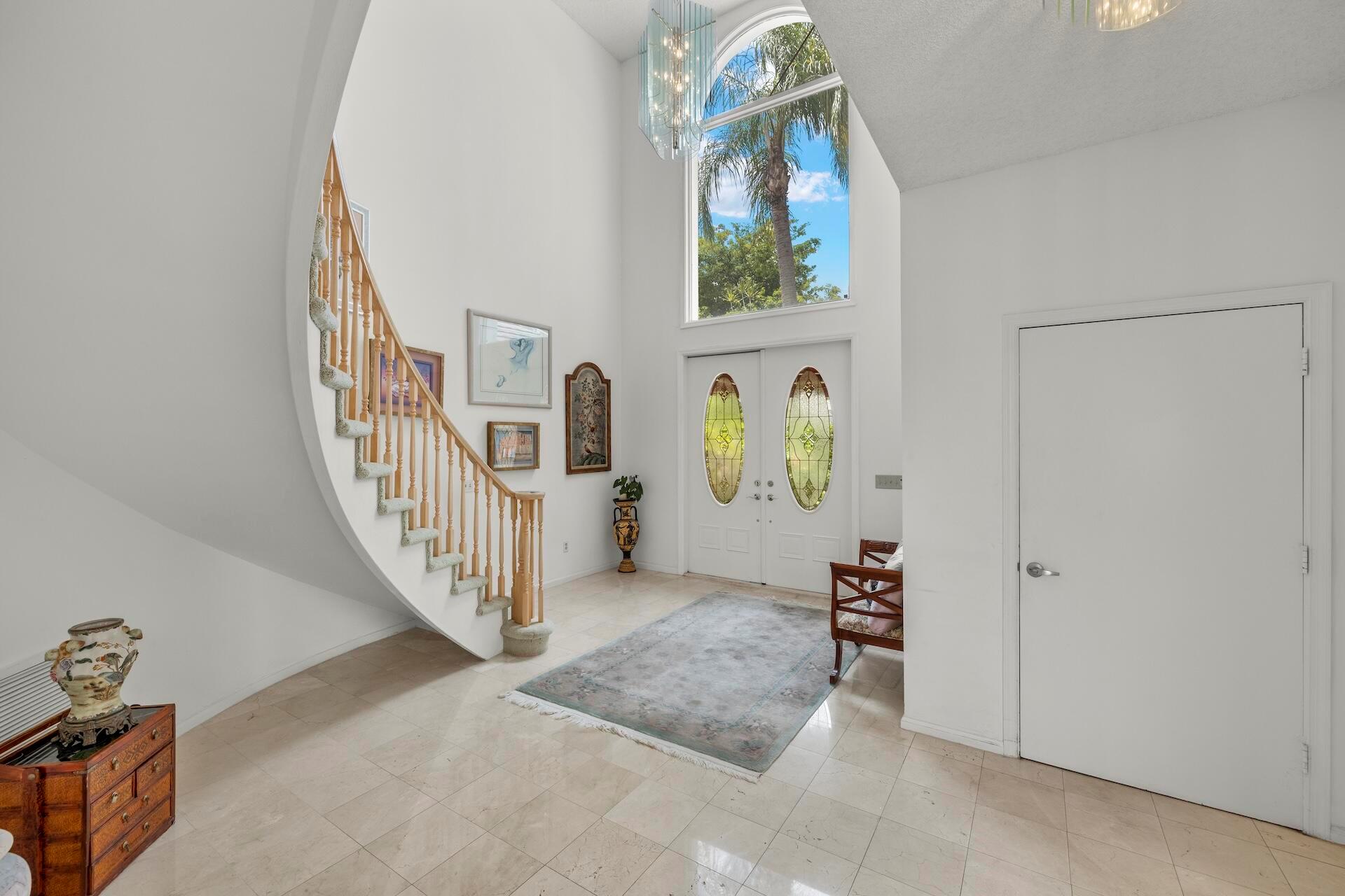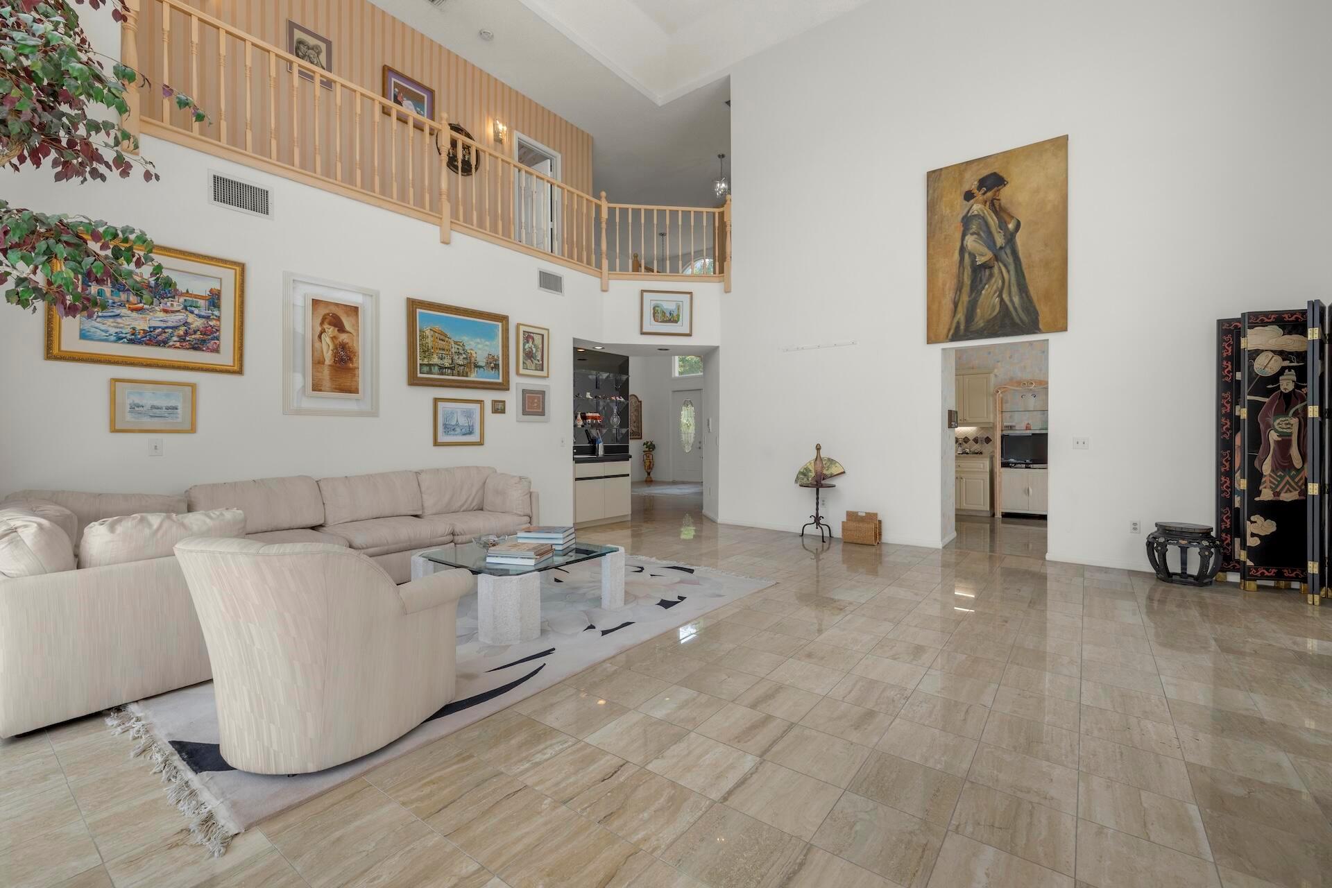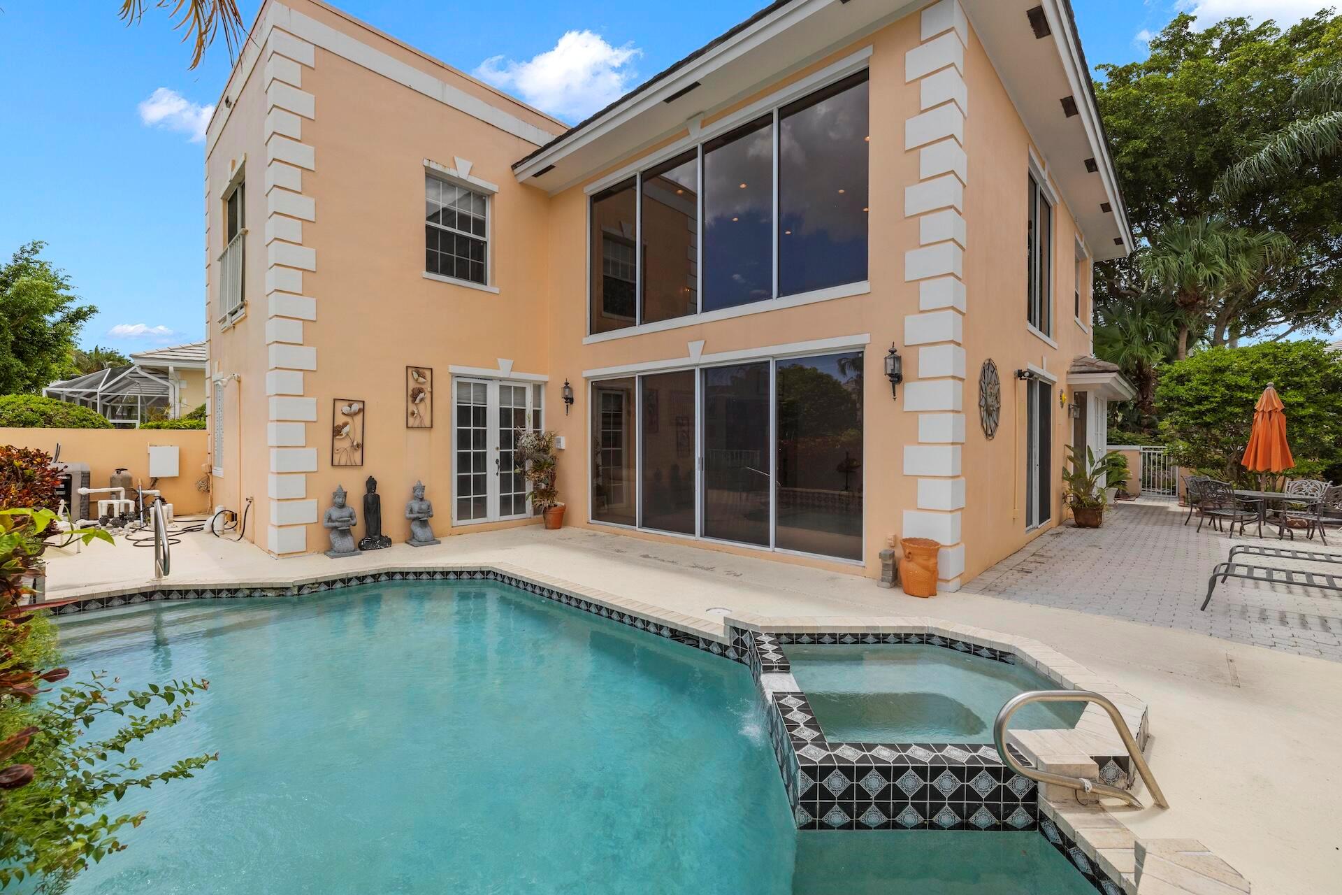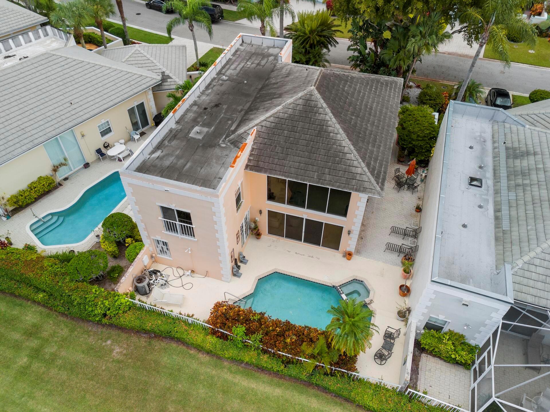 SELLING AS IS! MAJOR PRICE DROP! Ready to bring your vision to life?! This charming 3-bed, 2.1-bath home in the coveted Palms at Boca Pointe is ready for the next owner to make it their own. Built in the 1980s, this spacious property features a newer roof, soaring 20+ ft ceilings, and floor-to-ceiling windows that fill the home with natural light. Two primary suites, one on each level, offer privacy and convenience. The ground-floor suite opens to a backyard oasis with an in-ground pool and spa, plus hookups for a heater. One of the largest lots and floor plans within the community, located in Boca Pointe. One of the unique country clubs in South Florida where membership is optional. Get in now to turn this blank canvas into a true masterpiece that you can call your own!