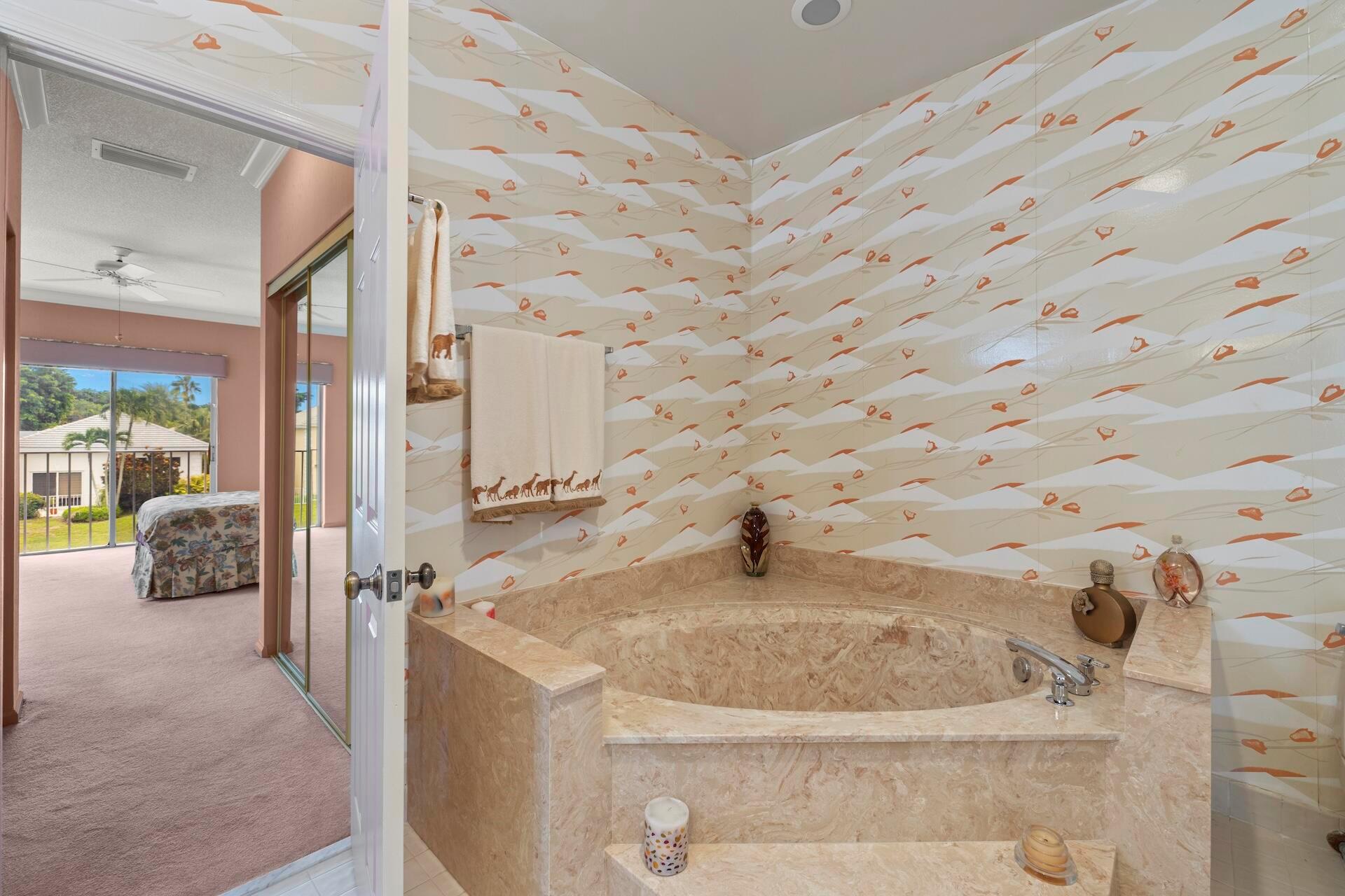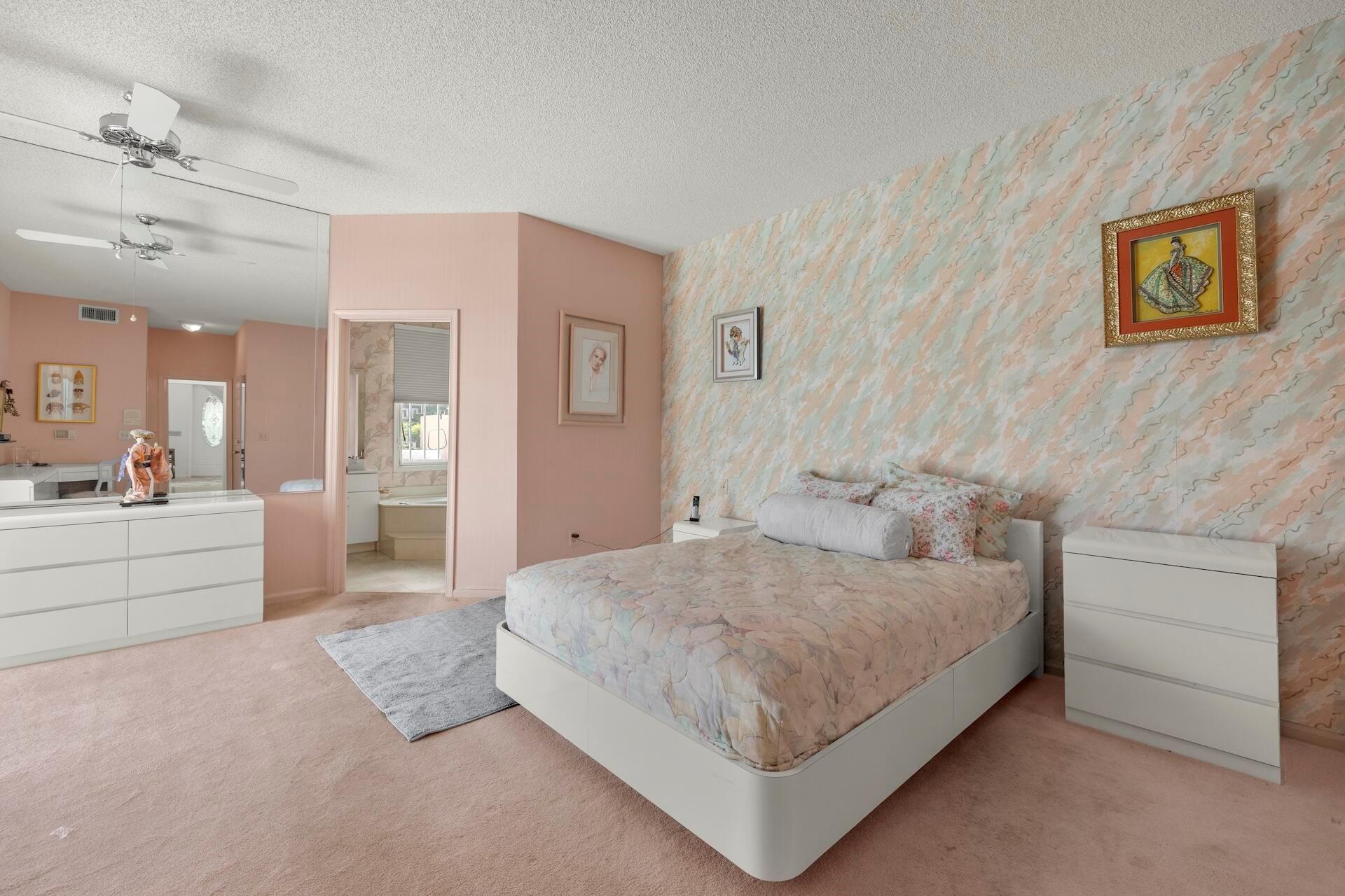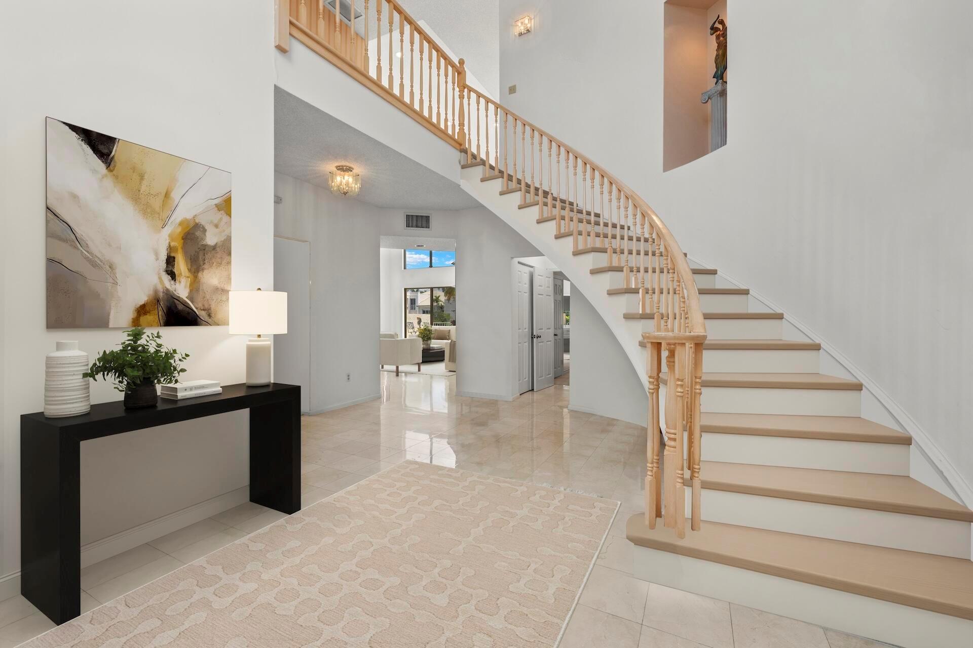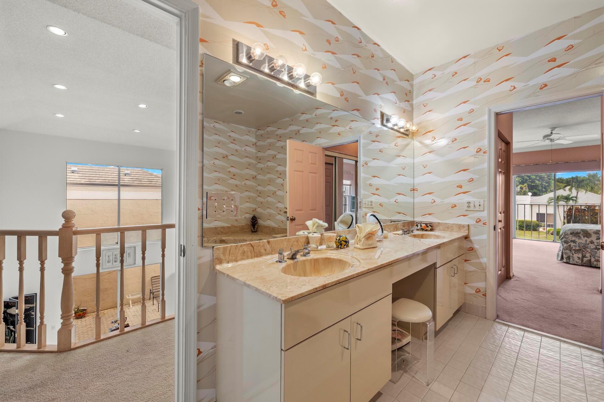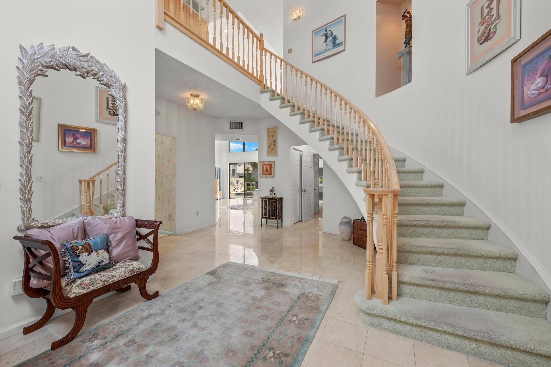 SELLING AS IS! MAJOR PRICE DROP! Ready to bring your vision to life?! This charming 3-bed, 2.1-bath home in the coveted Palms at Boca Pointe is ready for the next owner to make it their own. Built in the 1980s, this spacious property features a newer roof, soaring 20+ ft ceilings, and floor-to-ceiling windows that fill the home with natural light. Two primary suites, one on each level, offer privacy and convenience. The ground-floor suite opens to a backyard oasis with an in-ground pool and spa, plus hookups for a heater. One of the largest lots and floor plans within the community, located in Boca Pointe. One of the unique country clubs in South Florida where membership is optional. Get in now to turn this blank canvas into a true masterpiece that you can call your own!