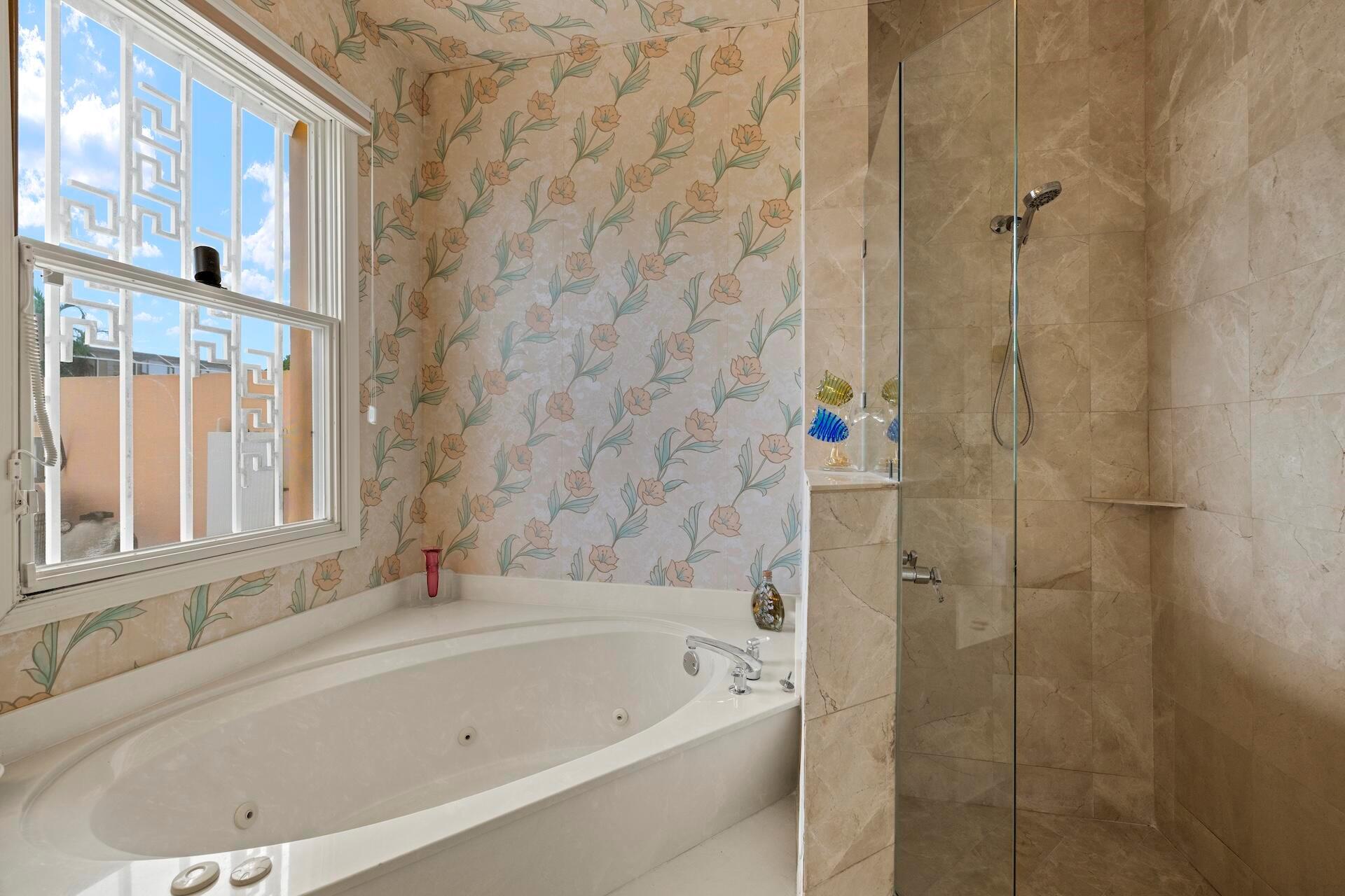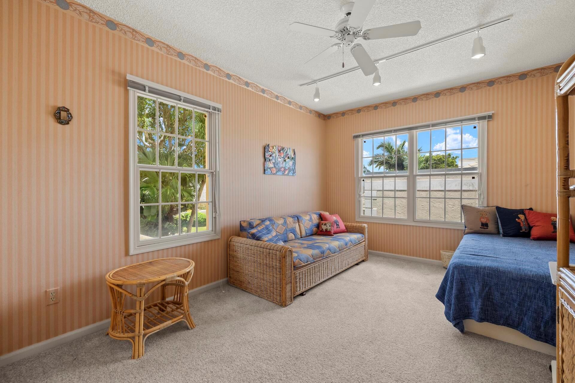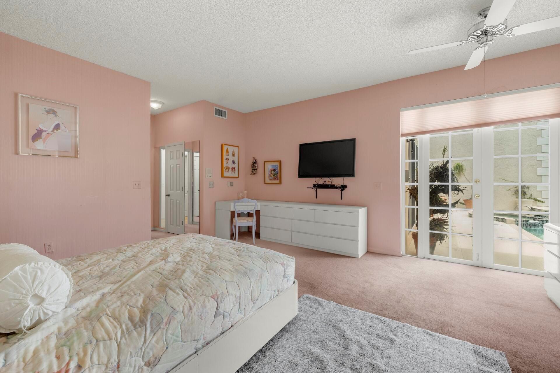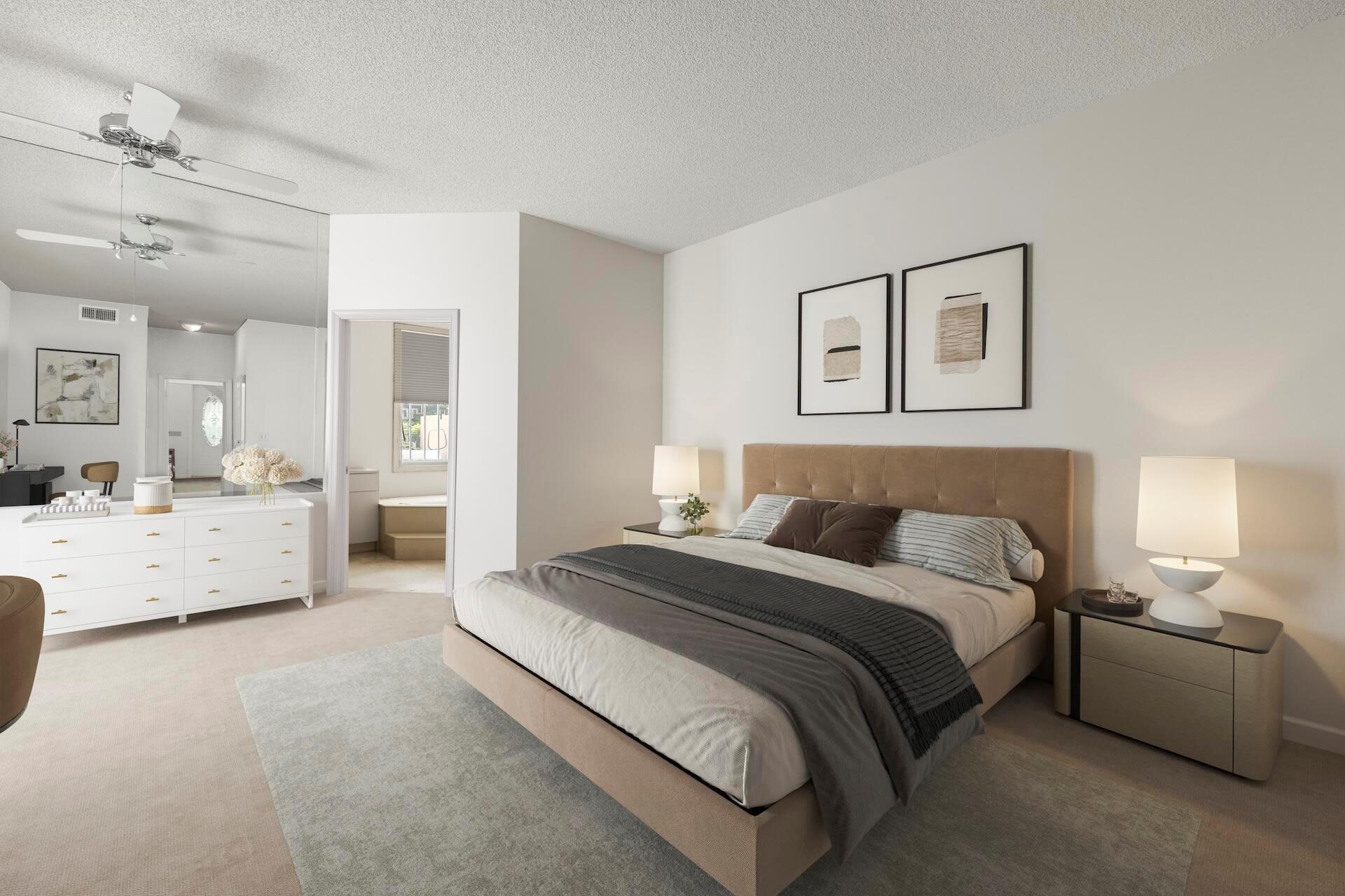 SELLING AS IS! MAJOR PRICE DROP! Ready to bring your vision to life?! This charming 3-bed, 2.1-bath home in the coveted Palms at Boca Pointe is ready for the next owner to make it their own. Built in the 1980s, this spacious property features a newer roof, soaring 20+ ft ceilings, and floor-to-ceiling windows that fill the home with natural light. Two primary suites, one on each level, offer privacy and convenience. The ground-floor suite opens to a backyard oasis with an in-ground pool and spa, plus hookups for a heater. One of the largest lots and floor plans within the community, located in Boca Pointe. One of the unique country clubs in South Florida where membership is optional. Get in now to turn this blank canvas into a true masterpiece that you can call your own!